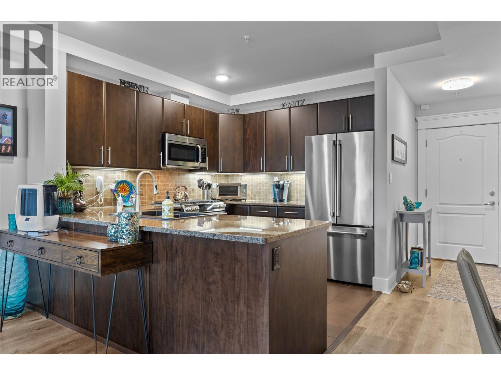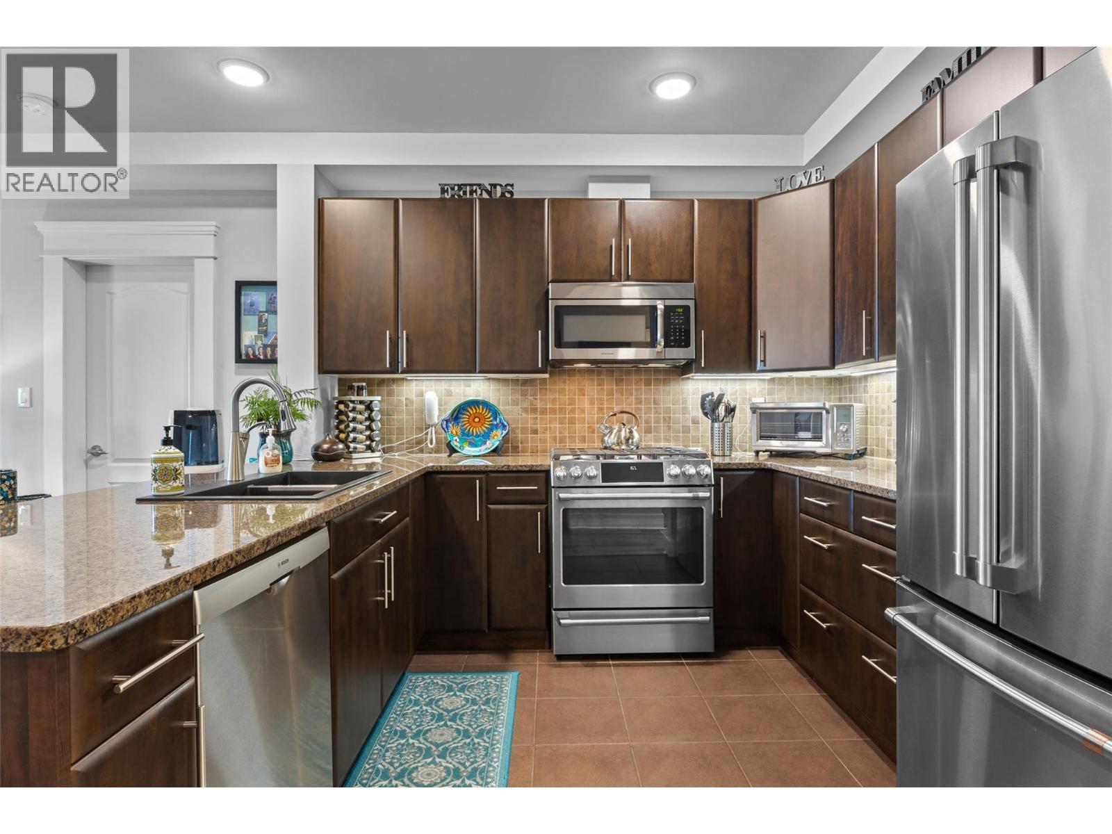 Welcome to Mission Hill, where central convenience meets elevated living. This beautifully updated 2 bedroom, 2 bath apartment offers sweeping views and an open concept layout designed for both everyday comfort and easy entertaining. Thoughtfully upgraded throughout, you will love the updated flooring, modern lighting, fresh paint, under cabinet lighting, granite countertops, new sink, and updated appliances, along with many additional touches that truly set this home apart. The spacious primary bedroom features a walk through closet leading to a luxurious 5 piece ensuite, plus direct access to its own private sundeck, the perfect spot for your morning coffee. The second bedroom also includes a walk through closet, convenient access to the 5 piece main bath, and access to the main sundeck, offering excellent flow and flexibility for guests, family, or a home office. Step outside to take in spectacular views from the living room sundeck, complete with a gas BBQ hookup for effortless outdoor dining. Additional highlights include in unit laundry, a storage locker, secure underground parking with one dedicated stall, and pets permitted with restrictions. An exceptional opportunity to own a move in ready home in a sought after complex. Don’t miss it. (id:6769)