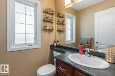 Welcome to this beautifully upgraded 4-bed, 3.5-bath two-storey in Gibbons, backing onto a farmer's field with no rear neighbours. Enjoy privacy, open views, and a family-friendly location within walking distance to multiple playgrounds and a nearby elementary school. Additional rear alley parking adds everyday convenience. The kitchen shines with a new double-door fridge (2025), a range/microwave (2026), and an updated faucet (2025). The fully finished basement adds a brand new 3-piece bath (2026), a finished laundry room complete with cabinetry (2026). Custom window blinds throughout and keyless entry on both exterior doors and garage man door give the home a polished. Out back, the heated, insulated & sheeted garage (2025), and a freshly stained deck with privacy lattice, lighting & awning (2025) are built for Alberta living. A custom fly screen front door with a child & pet gate is a thoughtful bonus.Great value and move-in ready. (id:6769)