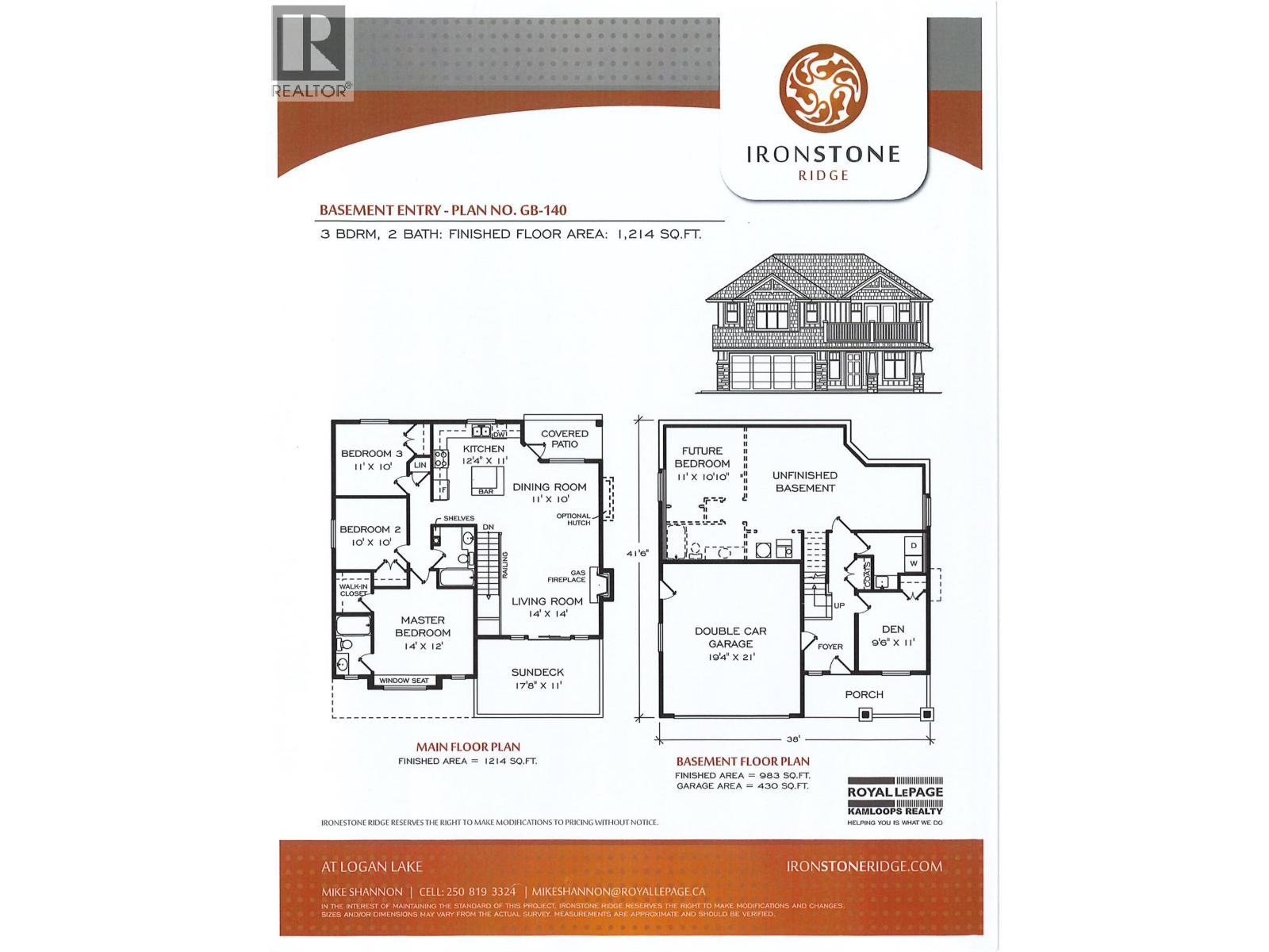 Logan Lakes best value. New home in popular Ironstone Ridge. This bergman designed basement entry represents unmatched pricing. Main floor features 3 bedrooms, 2 bath, large 18x11 deck off the living room, walk in closet. excel kitchen cabinets, quartz counters, eating bar, roughed in central vac, gas bbq outlet on rear deck. Downstairs finds a den/ fourth bedroom and finished laundry room. Basement plumbed for additional bathroom with room for family rec room and another bedroom. Home to be built spring 2026. Time to customize and pick colors. see ironstoneridge.com for more information. (id:6769)