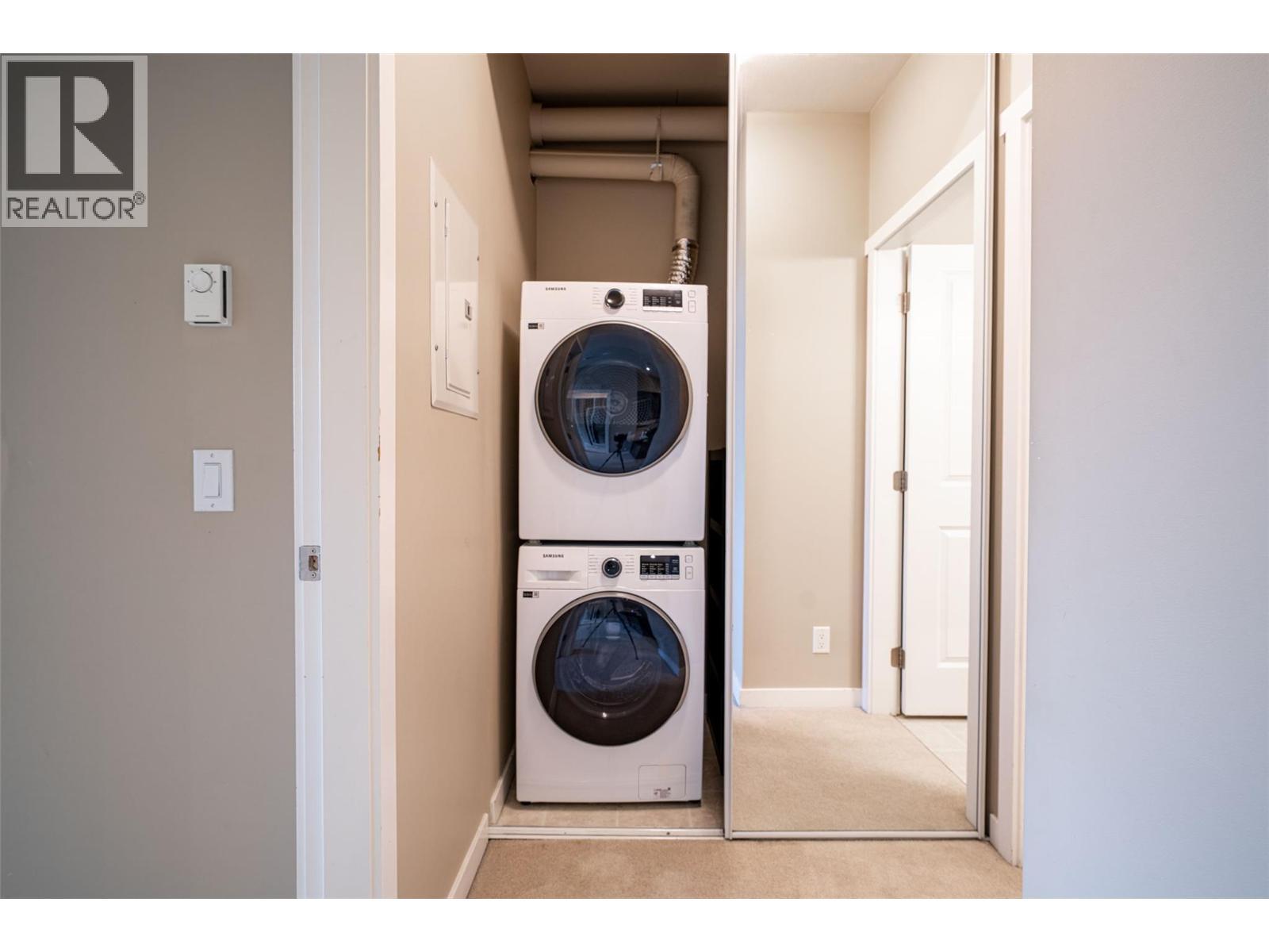 Newer, central building with low strata fees at Centre Point, well-designed 2-bedroom, 2-bathroom condo in one of Glenmore’s most central and convenient locations. Built in 2008, this second-floor unit facing the back offers a functional layout that makes sense — ideal for roommates, young professionals, small families, or investors. The split-bedroom floor plan places the living room and kitchen between both bedrooms, creating true separation and privacy. Each bedroom has its own full bathroom — a rare and highly desirable feature in this price range. The master bedroom offers double closets and an ensuite bathroom with a shower and separate bath tub for those who prefer quick showers and relaxing bathing on the weekends. The open-concept living space flows onto a private balcony, perfect for morning coffee or night wind-down . The kitchen is designed for both everyday living and entertainment, featuring stainless steel appliances, durable quartz countertops, and a clean modern timeless aesthetic. Located in central Glenmore, you’re just minutes to Parkinson recreation, Kelowna golf and country club, shopping, schools, parks, transit, and easy access to clement ave, offering quick connections to downtown — making this an excellent lifestyle or investment property. Strong value for a newer-built, two-bathroom condo in Glenmore, low strata fee, comes with 1 indoor parking, 1 storage, Pet allowed 1 dog or 2 cats, 16"" from floor to shoulder. BEST VALUE CONDO (id:6769)