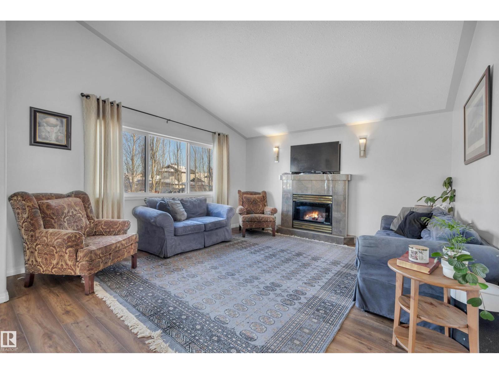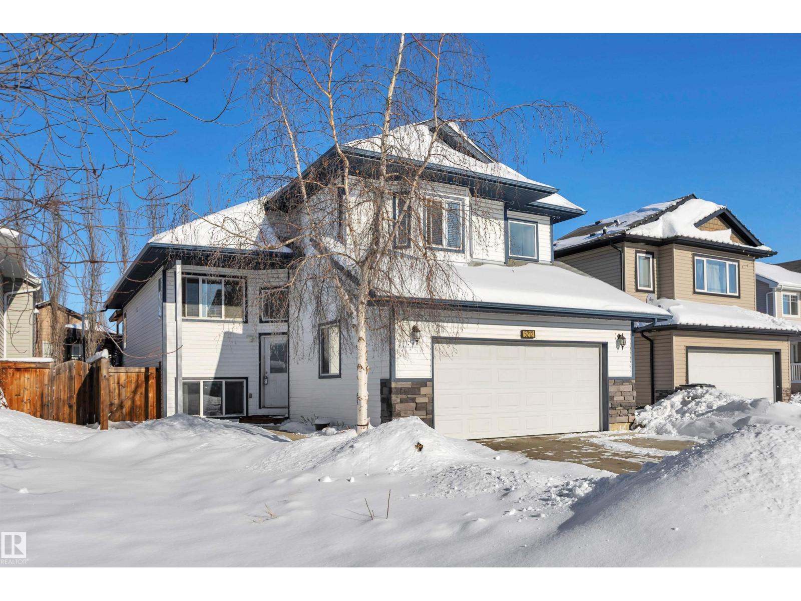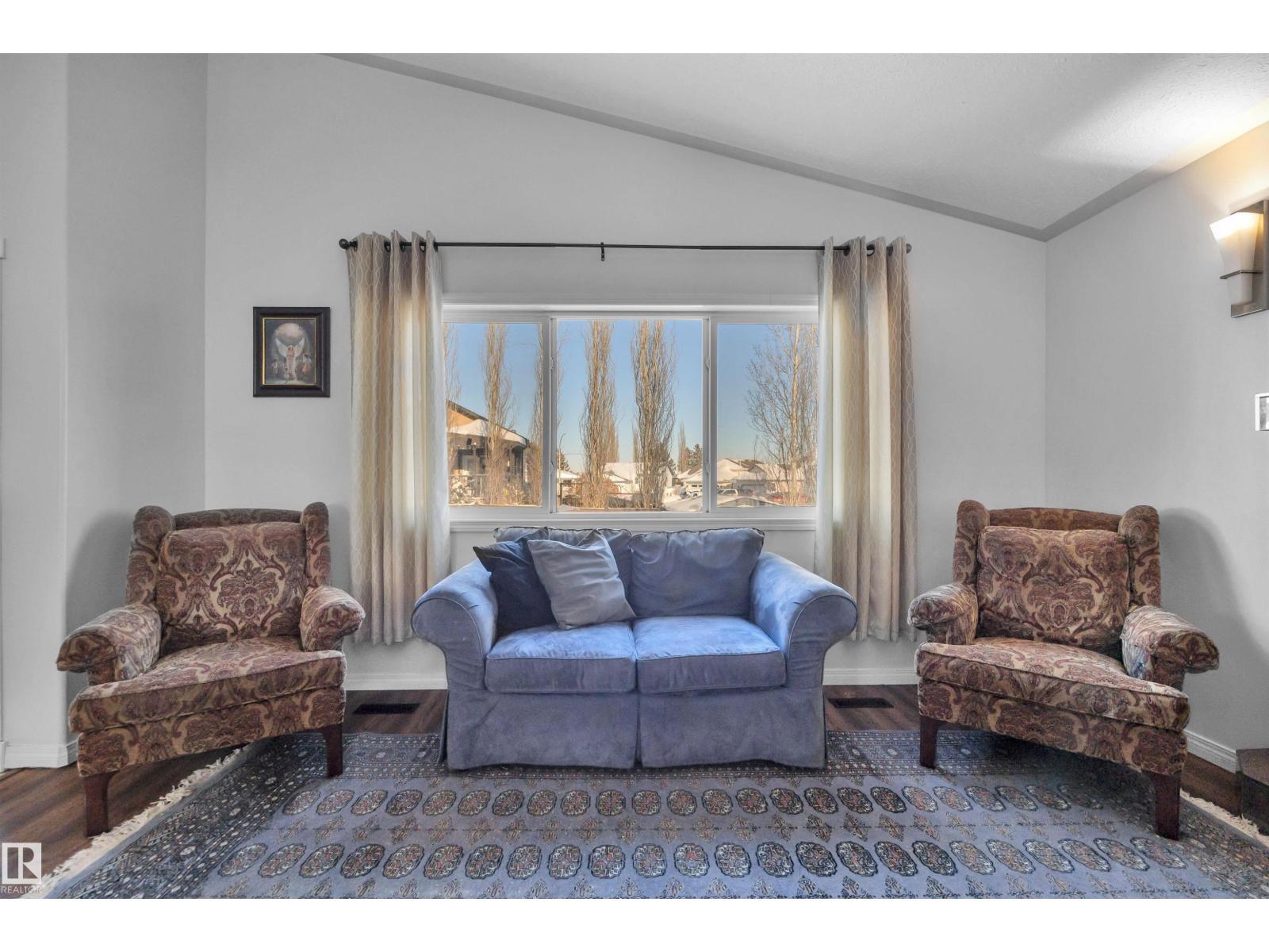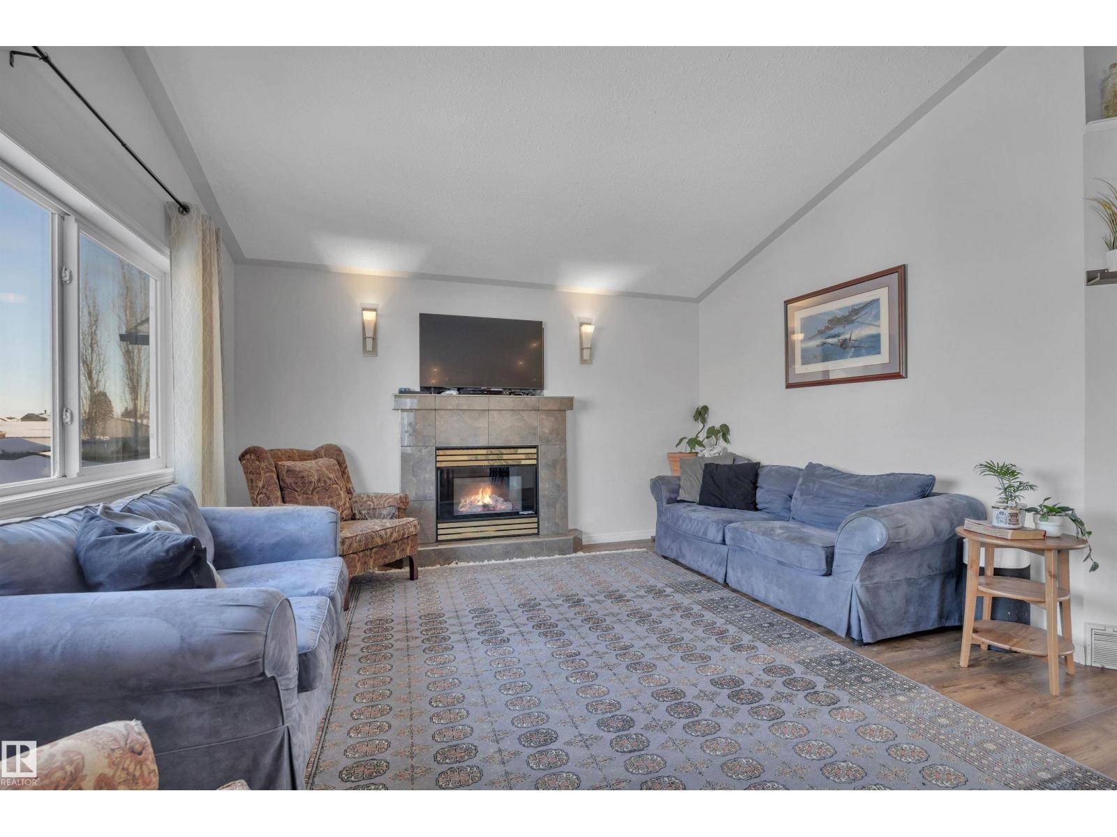 Featuring an open-concept layout, this bright & spacious bi-level is situated in Gibbons just N of Edm. Highlights include attached dbl garage, vaulted ceilings, fully finished basement w/lg windows & ample storage throughout. Perfect for a large or growing family, this home offers 2 bedrooms on upper level & 3 bedrooms downstairs. The generous primary suite—located above the garage—includes a 4pc ensuite w/soaker tub & walk-in closet. The kitchen is equipped with a corner pantry & plenty of counter space. From the dining area, double doors open onto a covered deck that overlooks a lg fenced backyard, complete with shed & addn'l storage under the deck. The living room features a gas fireplace & a 4pc bathroom serves the main level. The bright lower level includes 3 spacious bedrooms, lg family room, 4pc bathroom & addn'l storage. A den overlooks the front yard. A sizeable laundry room is conveniently located just off the foyer. This home boasts comfort, space & functionality for any family! (id:6769)