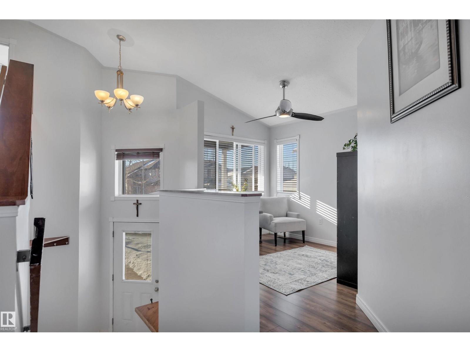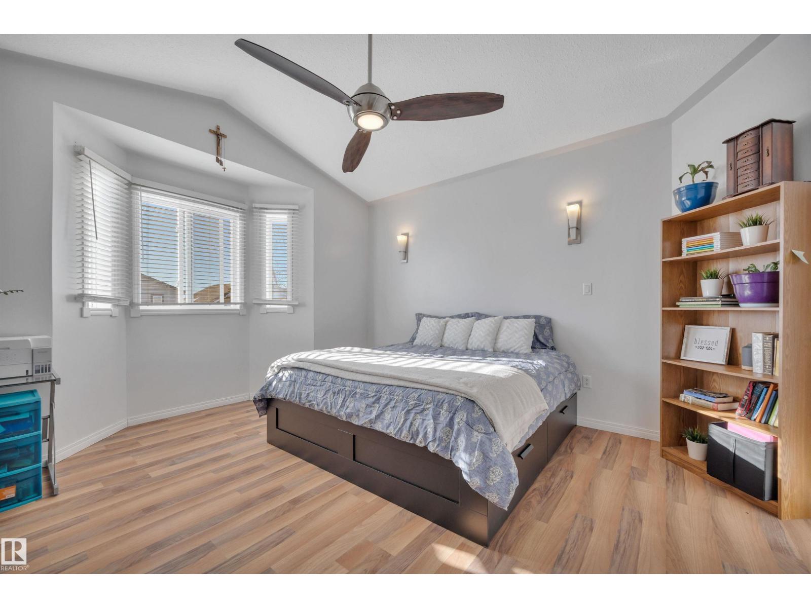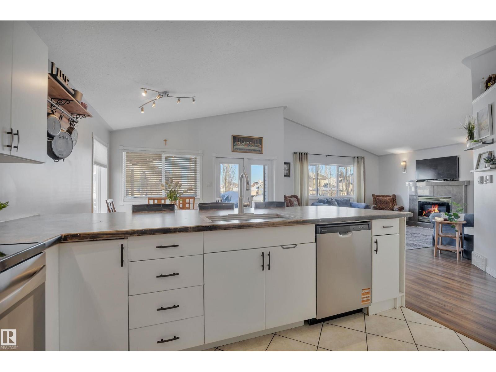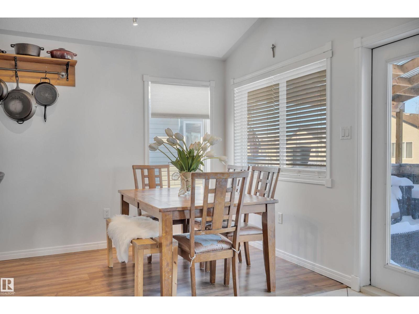 Featuring an open-concept layout, this bright & spacious bi-level is situated in Gibbons just N of Edm. Highlights include attached dbl garage, vaulted ceilings, fully finished basement w/lg windows & ample storage throughout. Perfect for a large or growing family, this home offers 2 bedrooms on upper level & 3 bedrooms downstairs. The generous primary suite—located above the garage—includes a 4pc ensuite w/soaker tub & walk-in closet. The kitchen is equipped with a corner pantry & plenty of counter space. From the dining area, double doors open onto a covered deck that overlooks a lg fenced backyard, complete with shed & addn'l storage under the deck. The living room features a gas fireplace & a 4pc bathroom serves the main level. The bright lower level includes 3 spacious bedrooms, lg family room, 4pc bathroom & addn'l storage. A den overlooks the front yard. A sizeable laundry room is conveniently located just off the foyer. This home boasts comfort, space & functionality for any family! (id:6769)