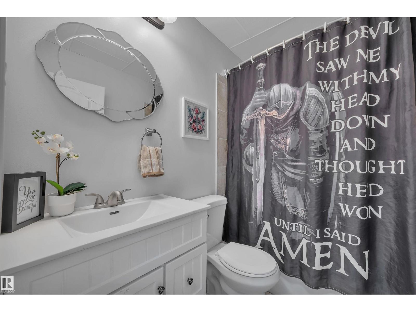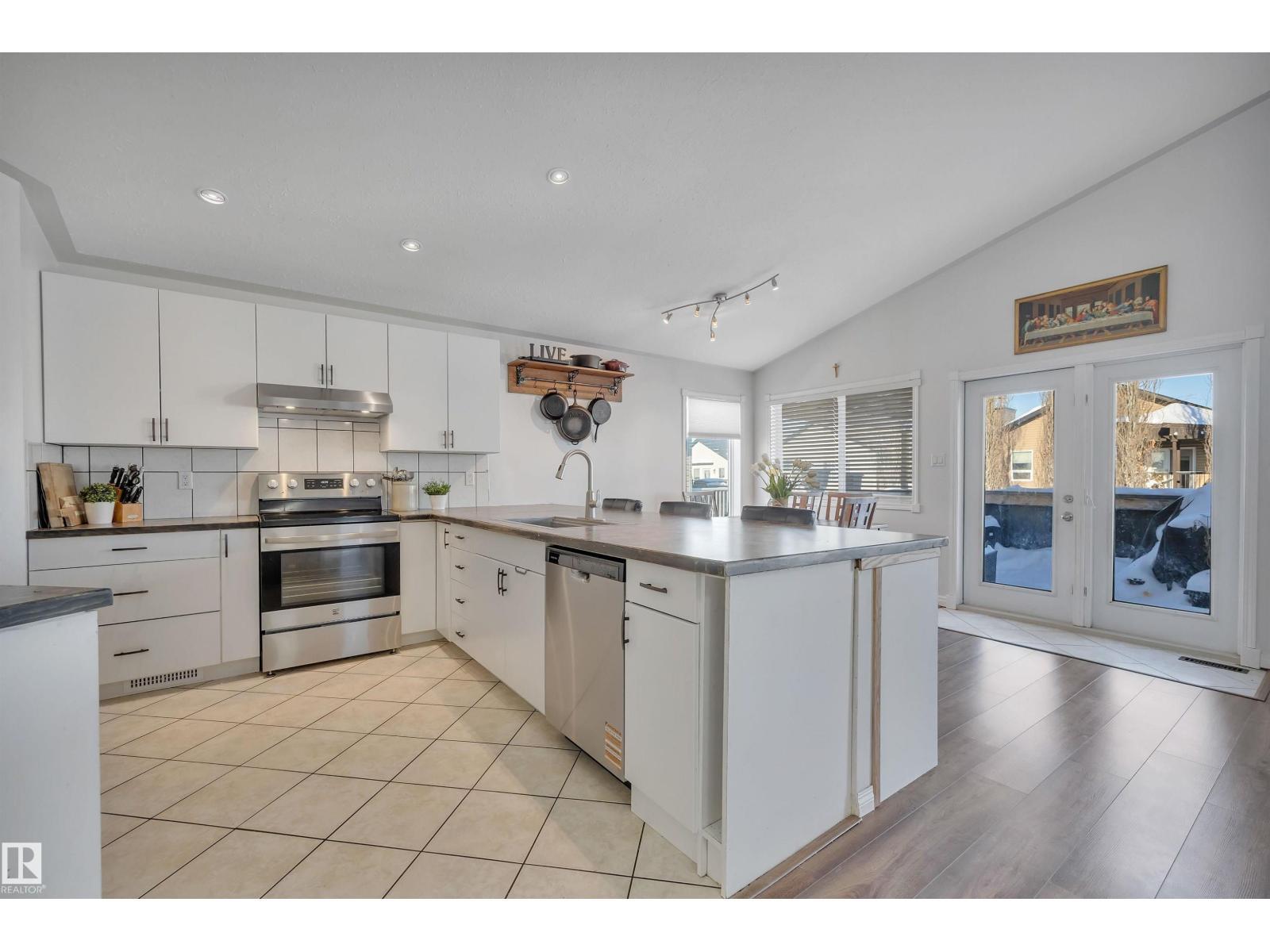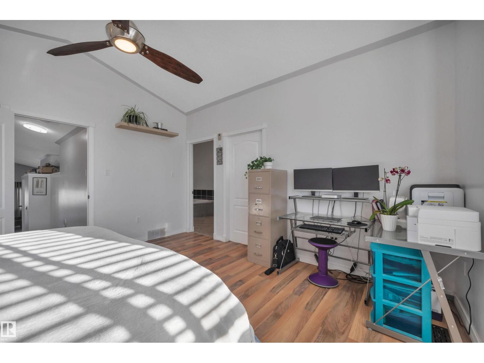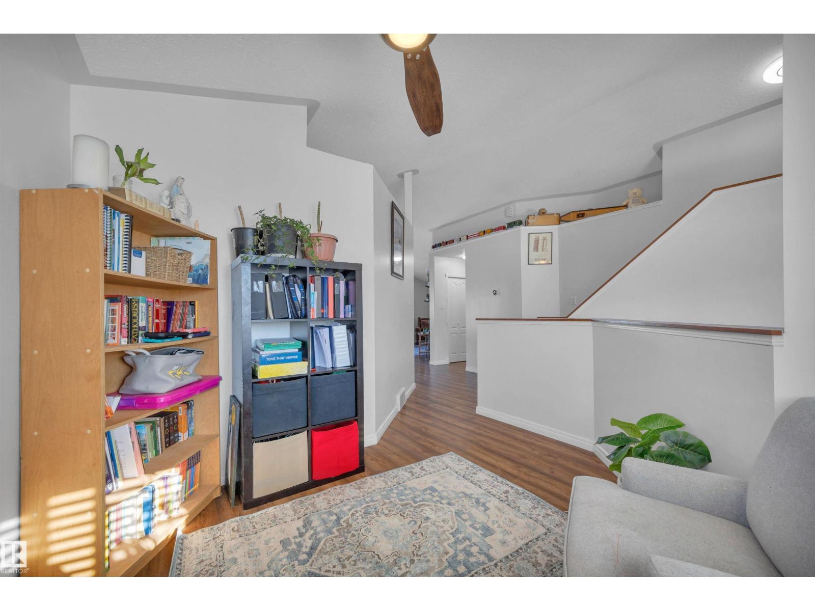 Featuring an open-concept layout, this bright & spacious bi-level is situated in Gibbons just N of Edm. Highlights include attached dbl garage, vaulted ceilings, fully finished basement w/lg windows & ample storage throughout. Perfect for a large or growing family, this home offers 2 bedrooms on upper level & 3 bedrooms downstairs. The generous primary suite—located above the garage—includes a 4pc ensuite w/soaker tub & walk-in closet. The kitchen is equipped with a corner pantry & plenty of counter space. From the dining area, double doors open onto a covered deck that overlooks a lg fenced backyard, complete with shed & addn'l storage under the deck. The living room features a gas fireplace & a 4pc bathroom serves the main level. The bright lower level includes 3 spacious bedrooms, lg family room, 4pc bathroom & addn'l storage. A den overlooks the front yard. A sizeable laundry room is conveniently located just off the foyer. This home boasts comfort, space & functionality for any family! (id:6769)