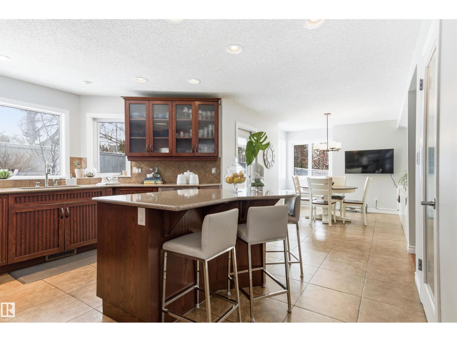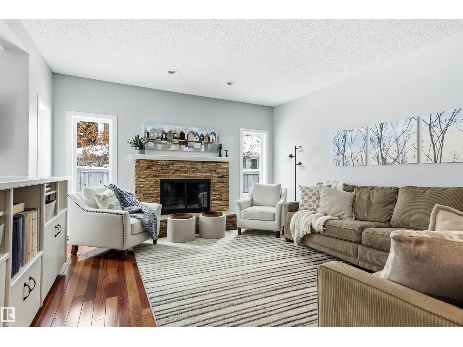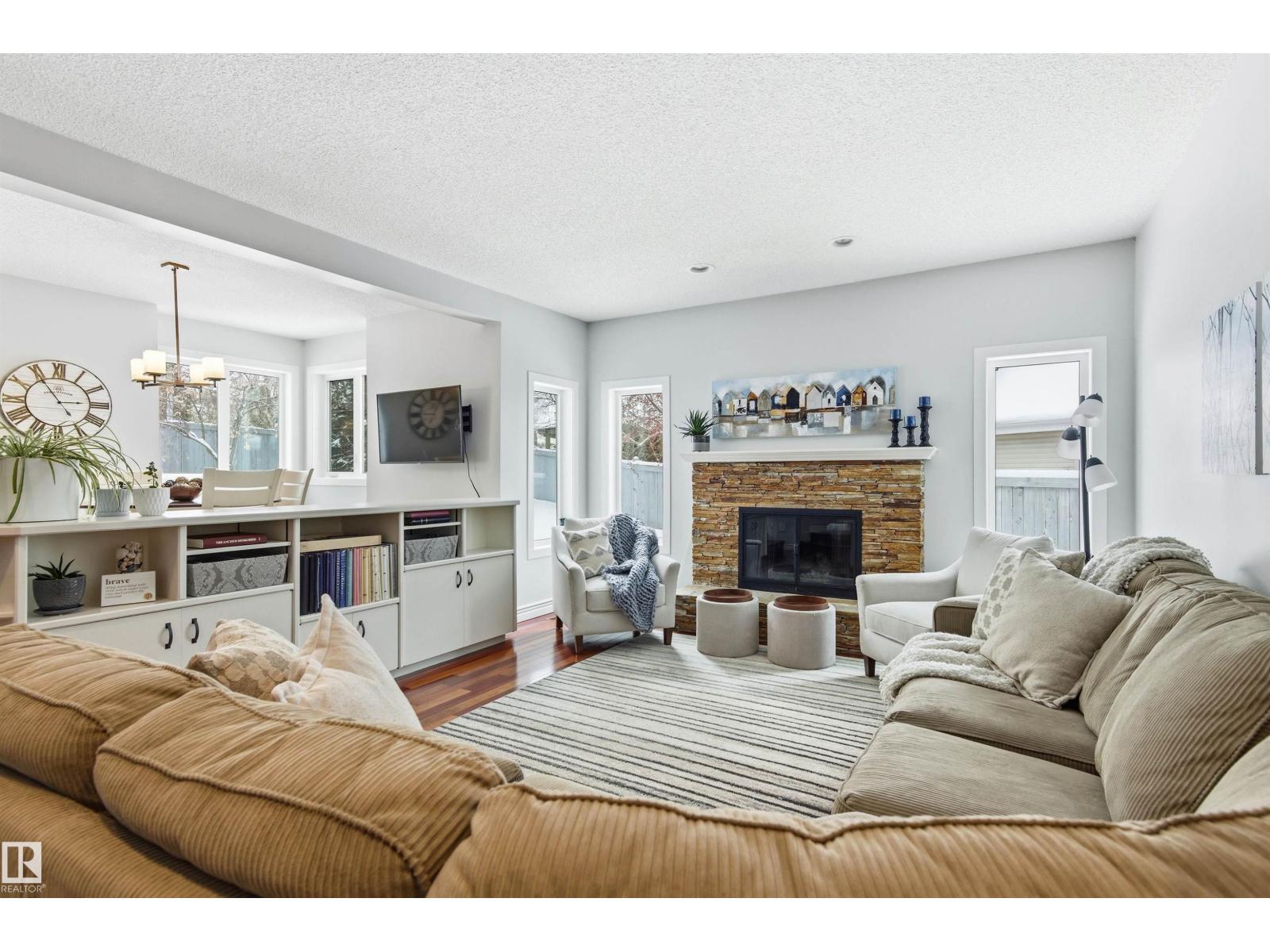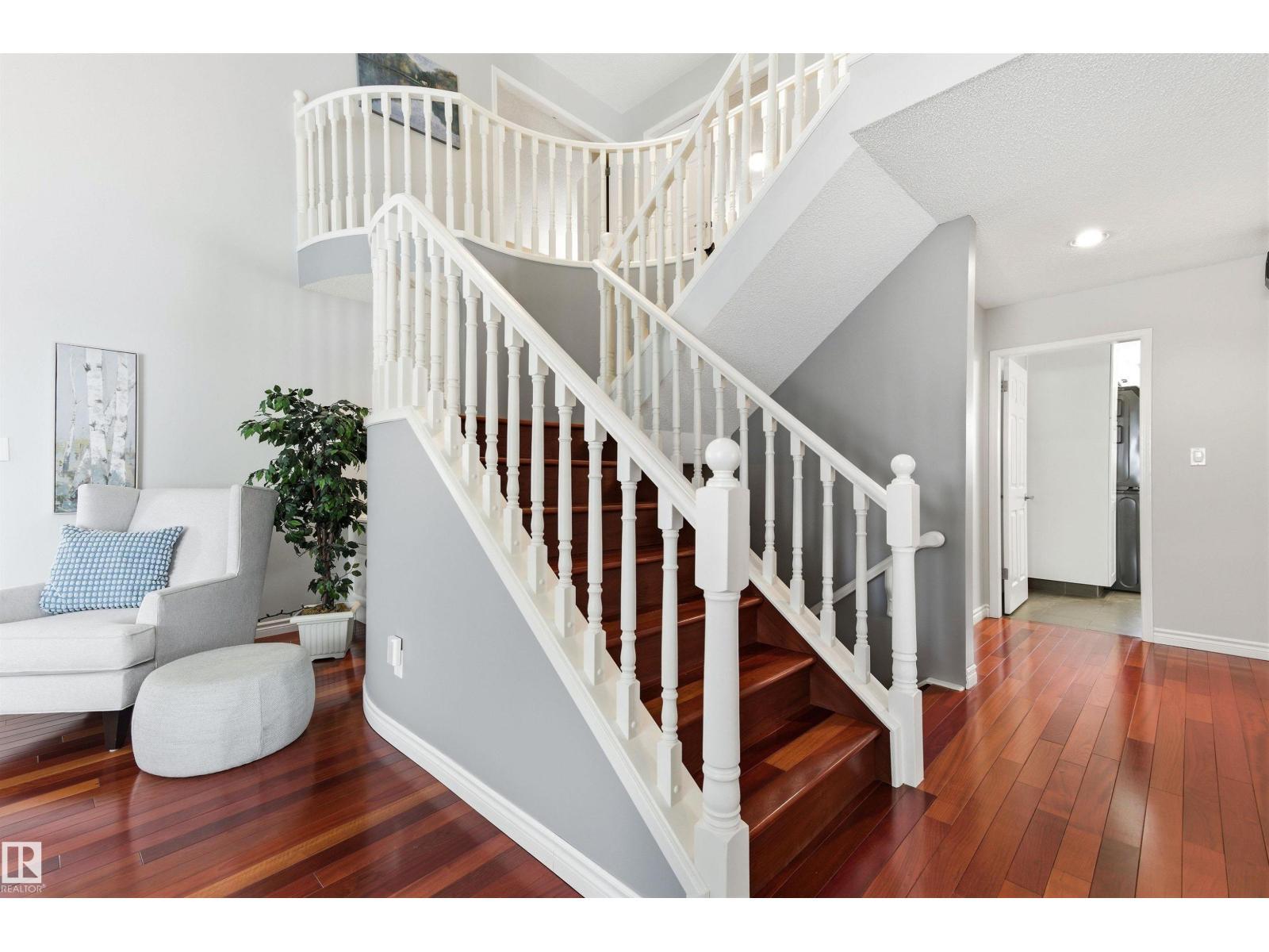 Tucked into a quiet cul-de-sac, this impressive 2-storey offers over 3,000 sq ft above grade, fully finished basement and PRIVATE SPACIOUS SUNNY WEST YARD. FANTASTIC FAMILY FLOORPLAN - The main floor features a grand curved staircase, spacious living and family rooms, main floor office, laundry, and a bright kitchen with breakfast nook overlooking the yard. Upstairs offers a large primary retreat with spa-inspired ensuite and walk-in closet, plus generous secondary bedrooms and full bath. The finished basement adds more bedrooms, recreation space, storage and a home gym. Many upgrades throughout: 2 Furnaces (2023) AC (2023) Windows (2020-2021) Rubber Roof (2017) Enjoy the OVERSIZED (25’3x23’8) double attached heated garage (with drain) and the unbeatable Riverbend location close to top schools, ravine trails, shopping, transit and quick access to Whitemud & Anthony Henday. A rare opportunity in one of Edmonton’s most desirable family communities! (id:6769)