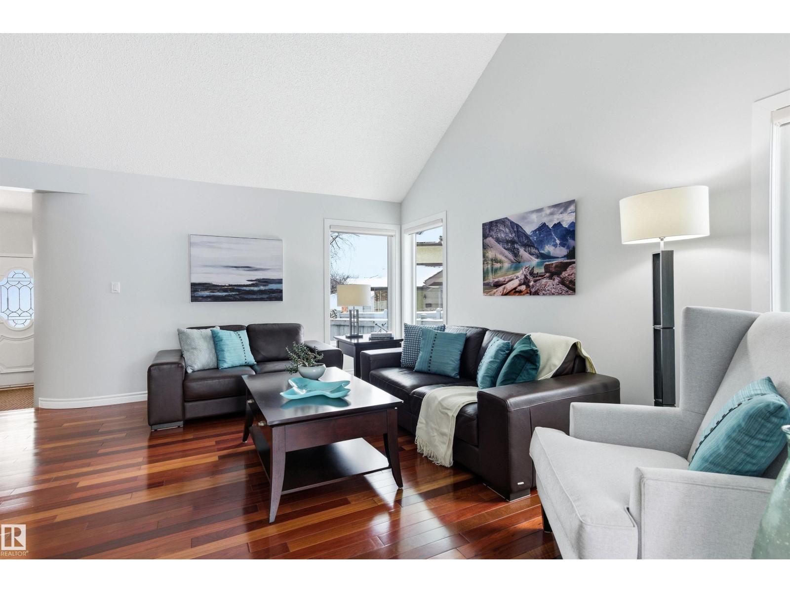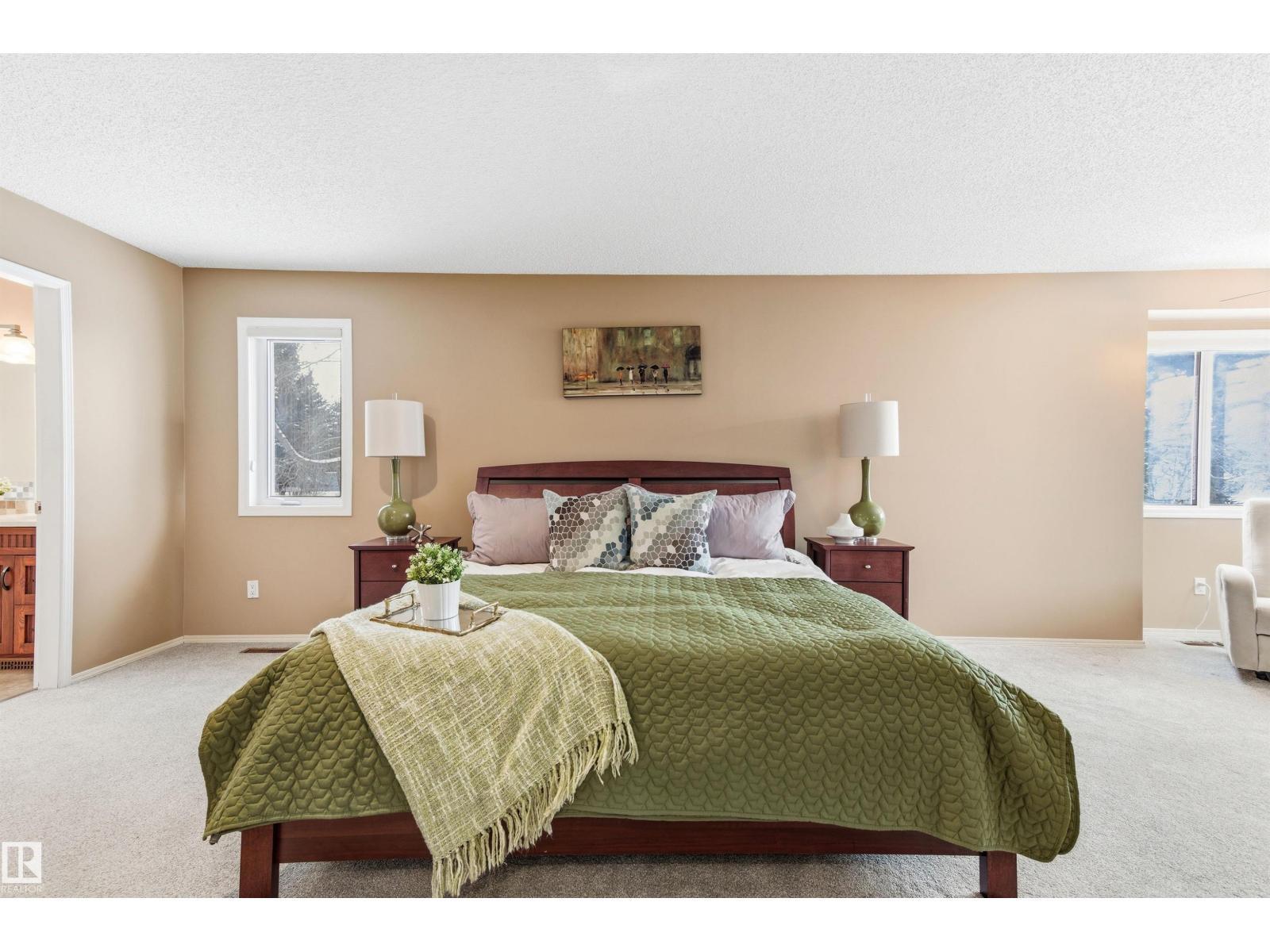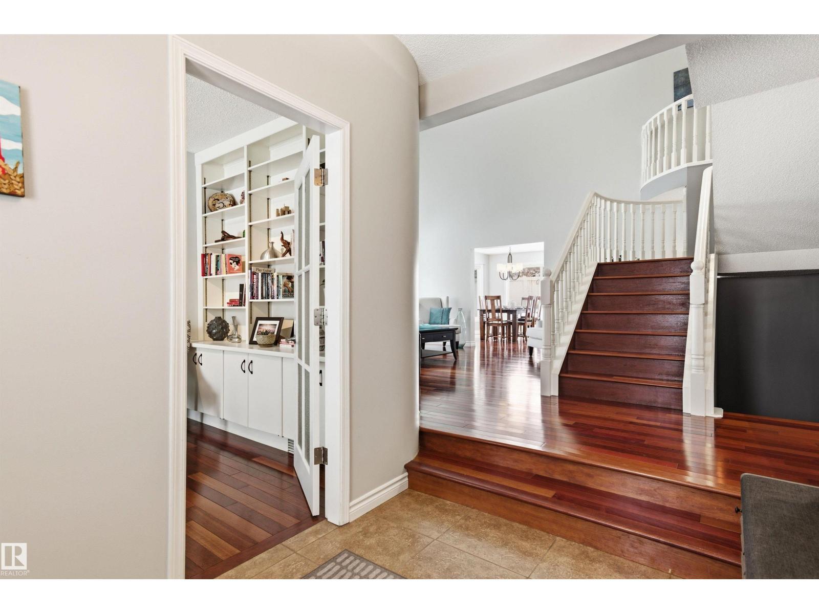 Tucked into a quiet cul-de-sac, this impressive 2-storey offers over 3,000 sq ft above grade, fully finished basement and PRIVATE SPACIOUS SUNNY WEST YARD. FANTASTIC FAMILY FLOORPLAN - The main floor features a grand curved staircase, spacious living and family rooms, main floor office, laundry, and a bright kitchen with breakfast nook overlooking the yard. Upstairs offers a large primary retreat with spa-inspired ensuite and walk-in closet, plus generous secondary bedrooms and full bath. The finished basement adds more bedrooms, recreation space, storage and a home gym. Many upgrades throughout: 2 Furnaces (2023) AC (2023) Windows (2020-2021) Rubber Roof (2017) Enjoy the OVERSIZED (25’3x23’8) double attached heated garage (with drain) and the unbeatable Riverbend location close to top schools, ravine trails, shopping, transit and quick access to Whitemud & Anthony Henday. A rare opportunity in one of Edmonton’s most desirable family communities! (id:6769)