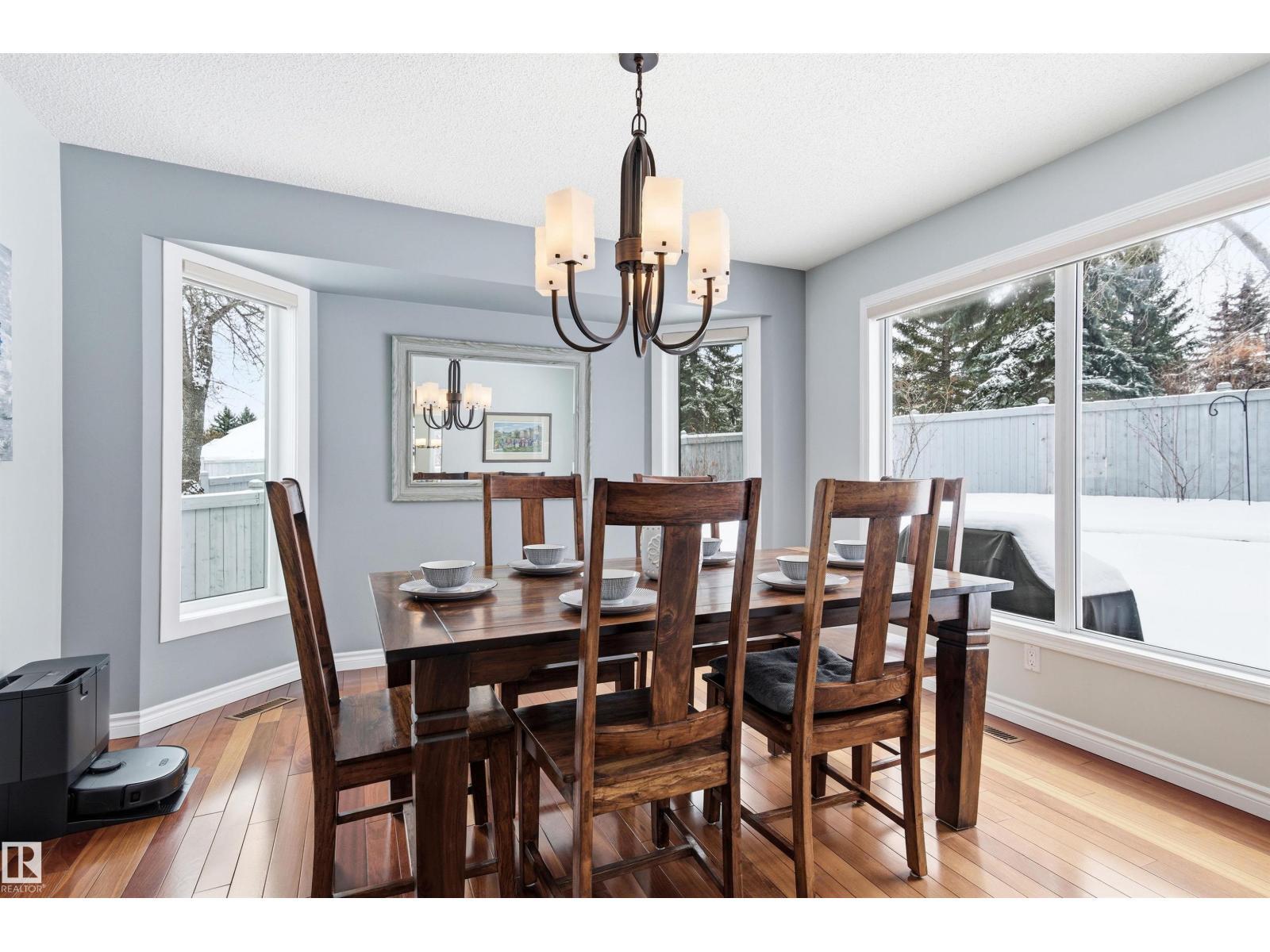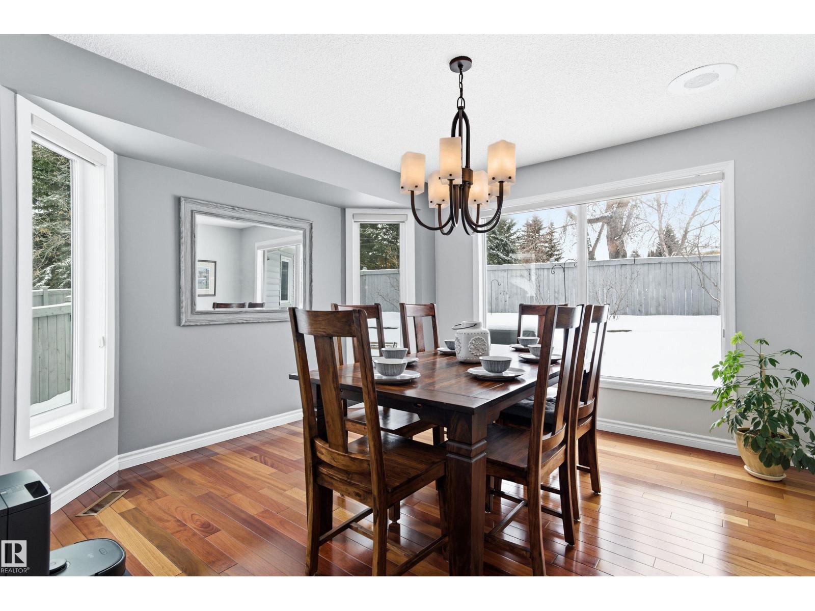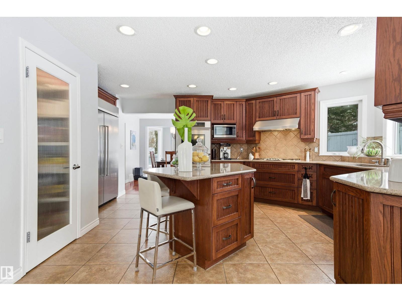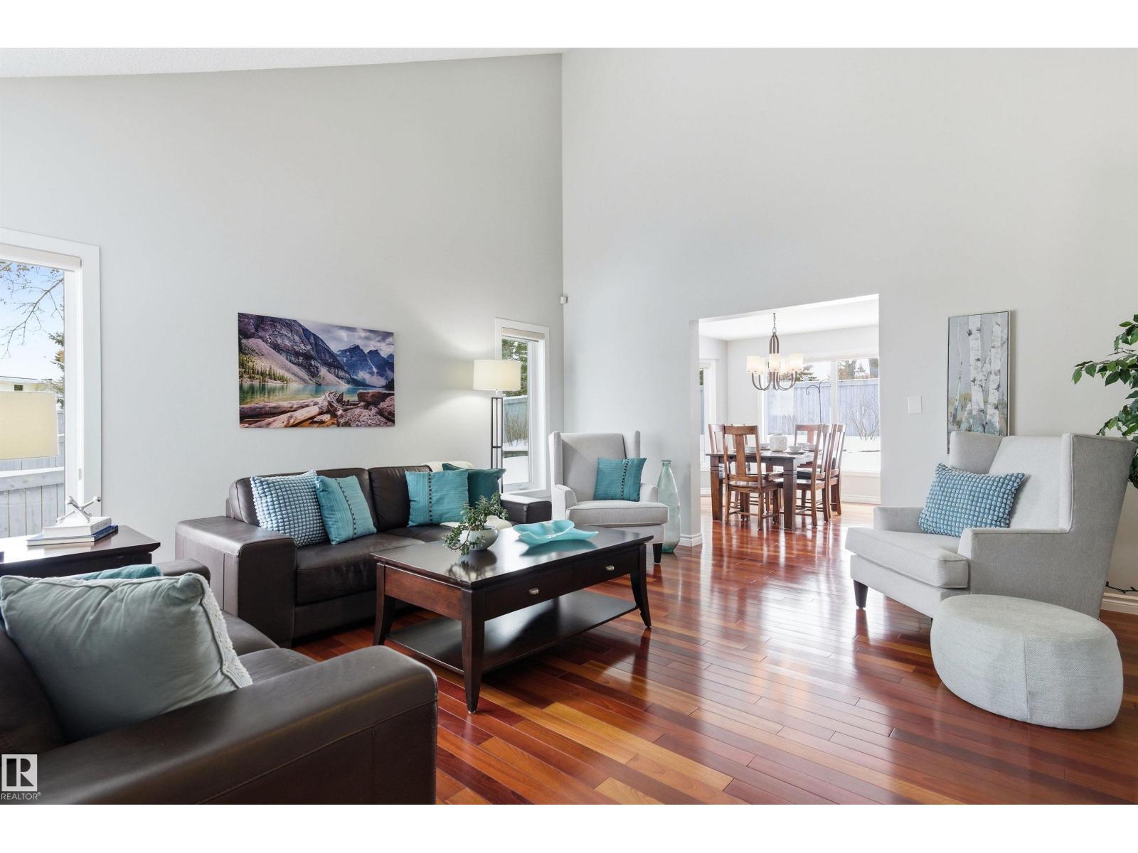 Tucked into a quiet cul-de-sac, this impressive 2-storey offers over 3,000 sq ft above grade, fully finished basement and PRIVATE SPACIOUS SUNNY WEST YARD. FANTASTIC FAMILY FLOORPLAN - The main floor features a grand curved staircase, spacious living and family rooms, main floor office, laundry, and a bright kitchen with breakfast nook overlooking the yard. Upstairs offers a large primary retreat with spa-inspired ensuite and walk-in closet, plus generous secondary bedrooms and full bath. The finished basement adds more bedrooms, recreation space, storage and a home gym. Many upgrades throughout: 2 Furnaces (2023) AC (2023) Windows (2020-2021) Rubber Roof (2017) Enjoy the OVERSIZED (25’3x23’8) double attached heated garage (with drain) and the unbeatable Riverbend location close to top schools, ravine trails, shopping, transit and quick access to Whitemud & Anthony Henday. A rare opportunity in one of Edmonton’s most desirable family communities! (id:6769)