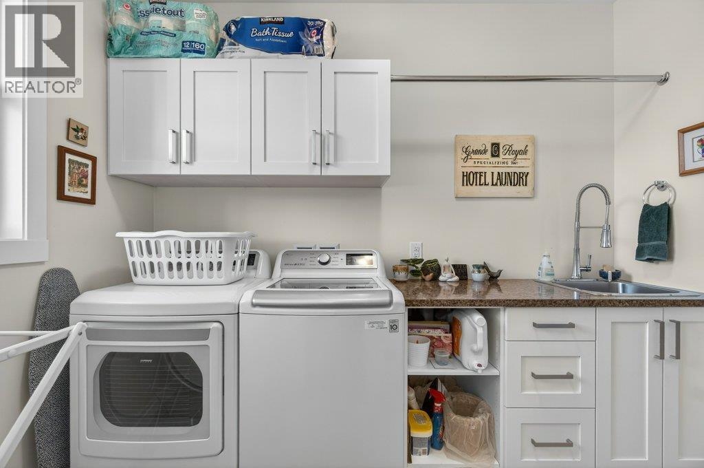 WELCOME TO THIS BEAUTIFULLY FINISHED LEVEL-ENTRY SEMI-CUSTOM HOME with walkout basement, perfectly designed for comfortable family living. The main floor showcases a bright open-concept kitchen, dining, & living area centered around a cozy gas fireplace. The chef-inspired kitchen features a large island, generous cabinetry, and spacious walk-in pantry - ideal for both everyday living & entertaining. Convenient main-floor laundry adds to the thoughtful layout. Step directly from the dining area onto a spacious deck. Designed for year-round enjoyment, the deck offers two separate covered areas - perfectly set up for your hot tub retreat and barbecuing/relaxing with family and friends. 4 bedrms/3 baths, provides ample space for growing families. The walkout basement expands your living area with a large rec room, lots of storage, and direct access to a covered patio. Situated on a quarter-acre lot backing onto Hillcrest School & field, the property offers privacy, and easy access to outdoor recreation. The extra-large garage has room for vehicles, toys, and additional storage. Adding incredible value is the detached carriage house, featuring a 500 sq ft shop complete with 2pc bath. Above, is a 624 sq ft 1 bedrm legal suite with laundry - perfect for extended family, guests, or rental income. This is a rare opportunity to own a beautifully finished & thoughtfully designed home with income potential, workshop space, & prime location. A must-see property that truly has it all! (id:6769)