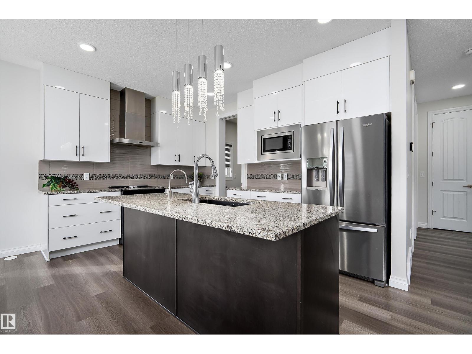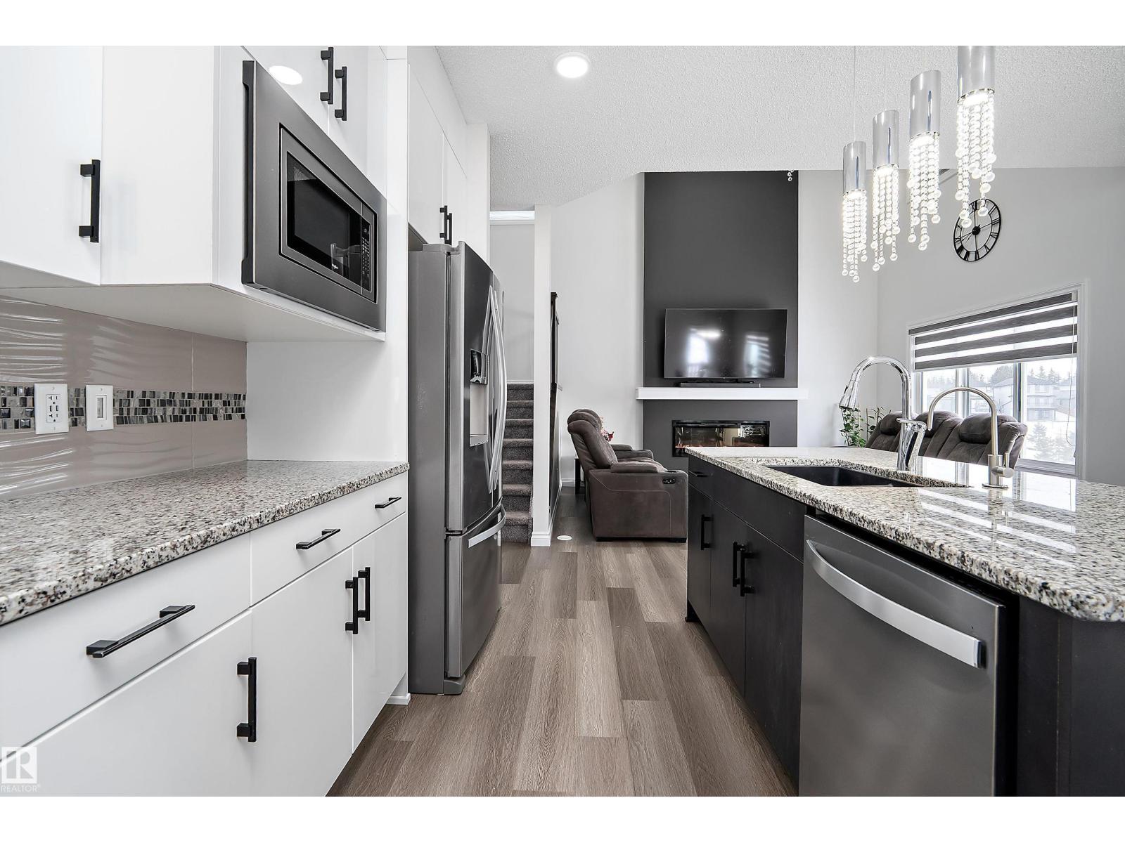 Amazing LOCATION in a CUL DE SAC on a PIE LOT & backing the NATURAL TREES, LAKE, TRAILS & just steps from the SCHOOL! This LANDMARK 2 STOREY features an 'OPEN TO BELOW' great room with TRAY CEILINGS, FIREPLACE, iron & wood railings, LVP FLOORING, GRANITE COUNTERS, 9' CEILINGS on 3 levels & large windows to take in the SOUTH VIEWS! The contemporary ISLAND KITCHEN features a iSPRING WATER SYSTEM, stainless appliances & overlooks the spacious dining area & PATIO DOORS will provide access to the yard & future deck. Just off the kitchen is a large WALK THRU PANTRY complete with roughed in gas & direct vent for range hood ready for appliances & cabinets! A two pc. bath & access to the 20'x21 garage with 8' OH door. Up the stairs to a BONUS ROOM overlooking the yard & VIEW, 2 bedrooms with a 4 pc. bath, laundry plus a SPACIOUS PRIMARY with walk in closet & lovely ensuite including OVER SIZED SHOWER & TUB! Side entrance to the open basement! Custom blinds, RI security, HI VELOCITY HEAT, TANKLESS HWT. IT'S LOVELY! (id:6769)