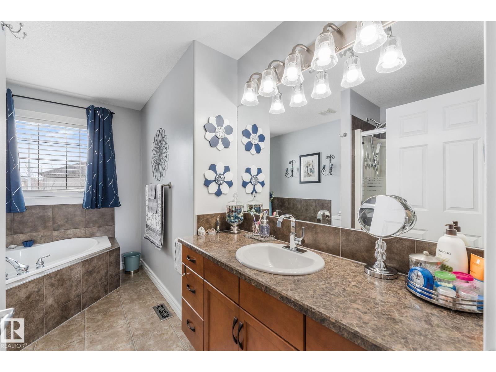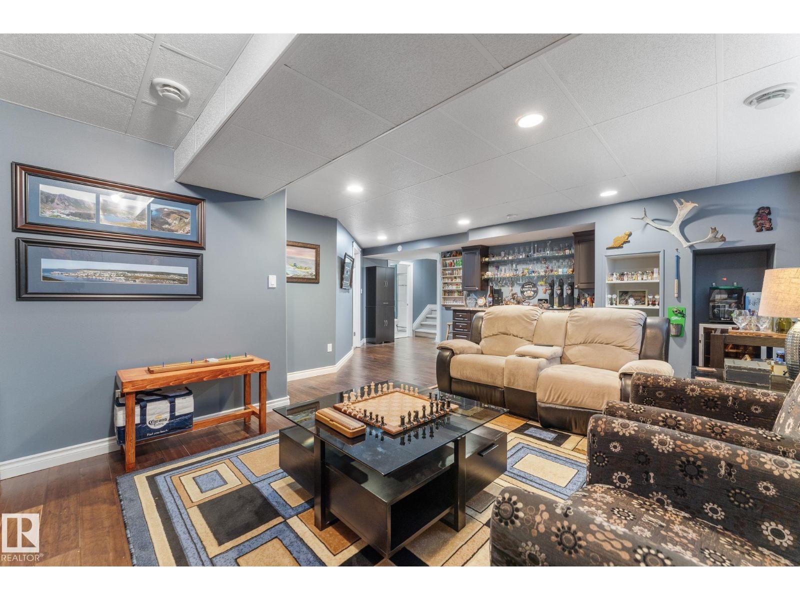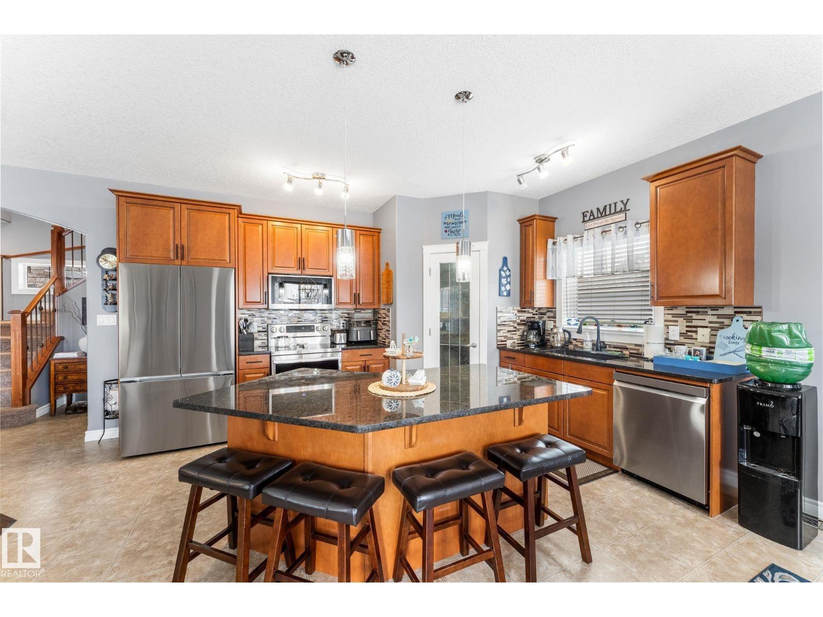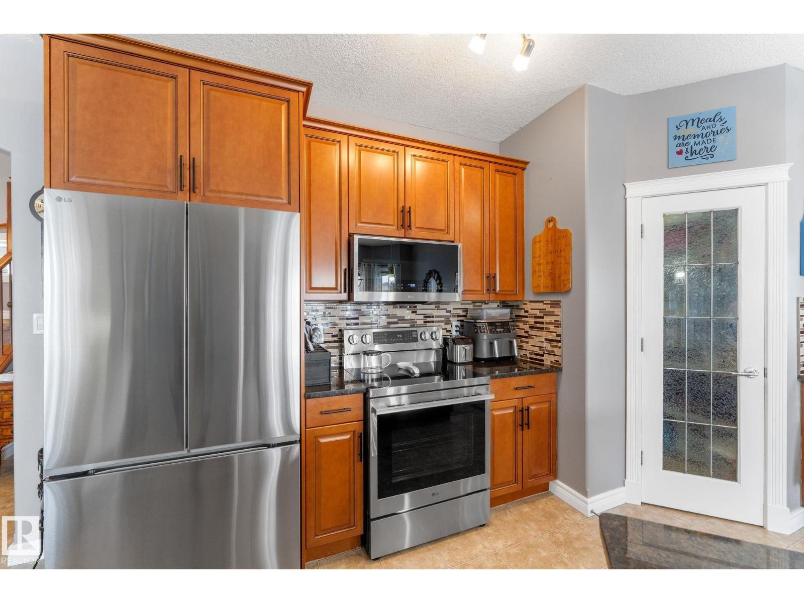 Beautiful fully finished two-story home located on a quiet crescent next to a walking path and close to Pryce Alderson Park. The main floor features 9’ ceilings, a spacious living room with updated fireplace, large dining area, main floor laundry, and a stunning renovated kitchen with walk thru panty, updated island, countertops, and NEW appliances. Upstairs offers 3 bedrooms including a primary suite with walk-in closet and full 4-piece ensuite, plus an additional 4-piece bath. The finished basement includes a large entertainment/rec space, bedroom, 3pc bathroom and office area. Enjoy air conditioning, large concrete edging, large deck and heated garage. Completely finished inside and out—move-in ready! (id:6769)