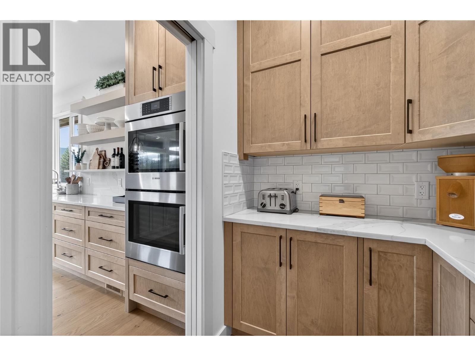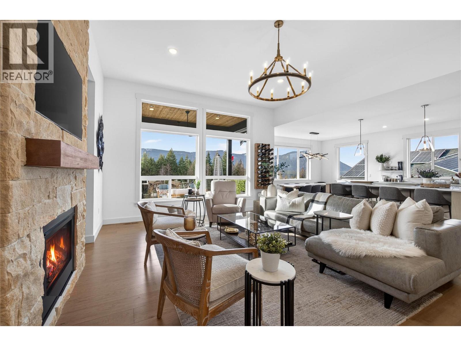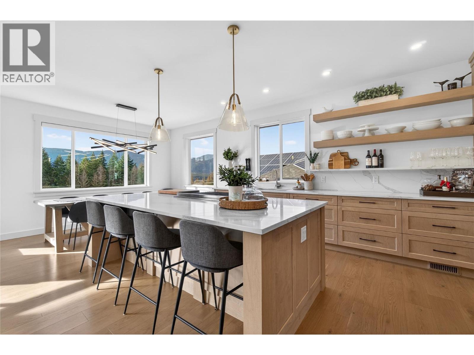Elevated in one of Salmon Arm’s most desirable neighbourhoods, this custom five bedroom, four bathroom residence blends refined design with sweeping lake and mountain views. Fully landscaped and irrigated grounds, concrete pads with drainage, raised garden beds, a greenhouse, and a heated finished garage reflect thoughtful planning throughout. Inside, 11-foot ceilings and expansive windows frame panoramic views of Shuswap Lake. The Great Room flows into a gourmet kitchen anchored by a nine foot quartz island, professional appliances, and upgraded lighting. Open living and dining areas extend to upper and lower decks with natural gas outlets and an electronic patio screen, creating seamless indoor-outdoor living. The primary suite offers heated ensuite floors and direct deck access. On-demand hot water recirculation, three stage water filtration (interior and garden), enhanced sound separation, and upgraded lighting ensure comfort and efficiency. The walkout lower level includes a legal income suite netting $2,500 per month, with separate heat pump and quality appliances, abundant storage, and a custom 10 foot x 10 foot shed with nine foot ceilings and a black metal roof. A 12KW solar system (24 & 500W panels with Enphase micro-inverters), 8500W backup generator, 50-amp EV charging, dual high-efficiency climate systems, and smart controls deliver energy independence. Spa/pool infrastructure and a galvanized powder-coated metal fence complete this as move-in-ready. (id:6769)