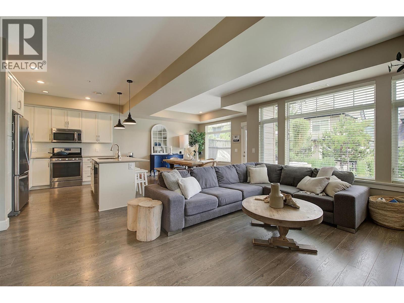 Stunning 3-bedroom townhome at Crystal Heights! Highly functional layout with all bedrooms on the top floor and all living spaces on the main entry level. The bright and airy living and dining areas showcase high-end finishes, large windows throughout and a tasteful accent fireplace with ample room above for a wall-mounted TV. Beautiful open-concept kitchen featuring stainless steel appliances, a stand-alone island, granite countertops and easy access to the backyard, allowing for indoor–outdoor entertaining! Step out to the sun-soaked patio (equipped with a gas hookup) and a generously sized fenced yard. The home's main level also features a powder room, and forced-air heating and central air conditioning keep every season comfortable and enjoyable. Upstairs, the primary bedroom boasts a walk-in closet and a luxurious four-piece ensuite, and the upper floor also hosts two additional bedrooms plus another full bathroom. Additional features include a double garage and a great location near beaches, parks, restaurants, Kelowna International Airport and more! (id:6769)