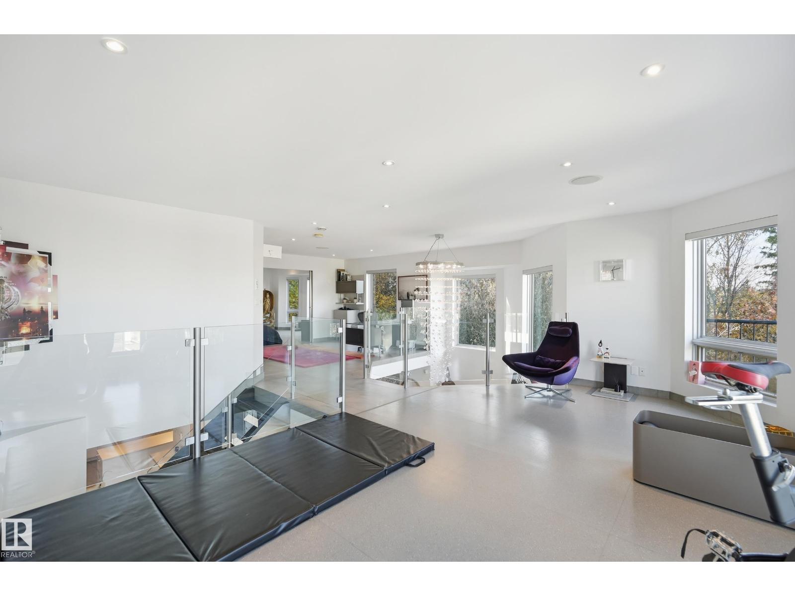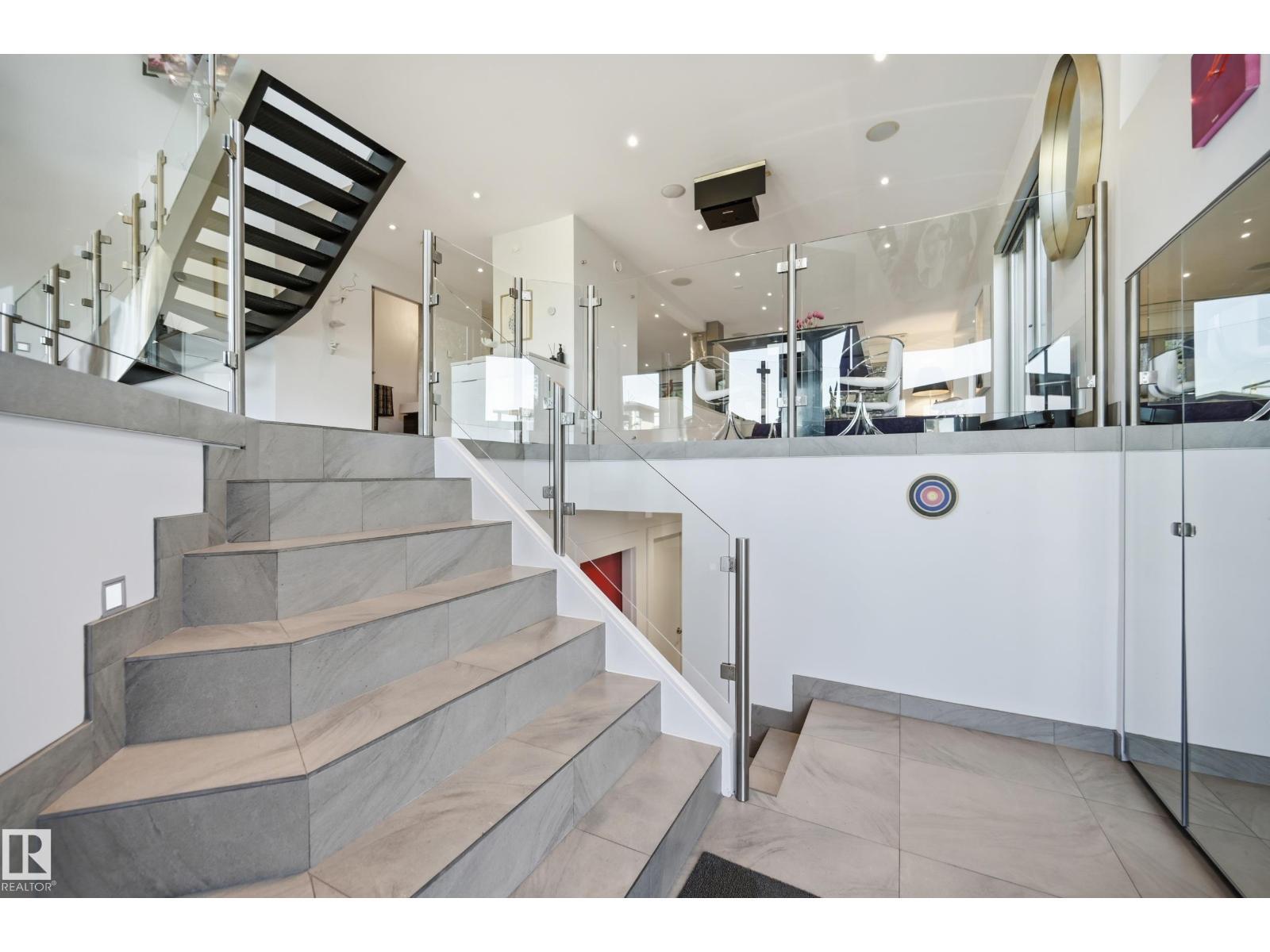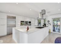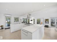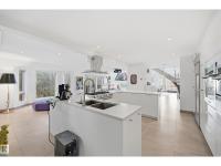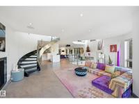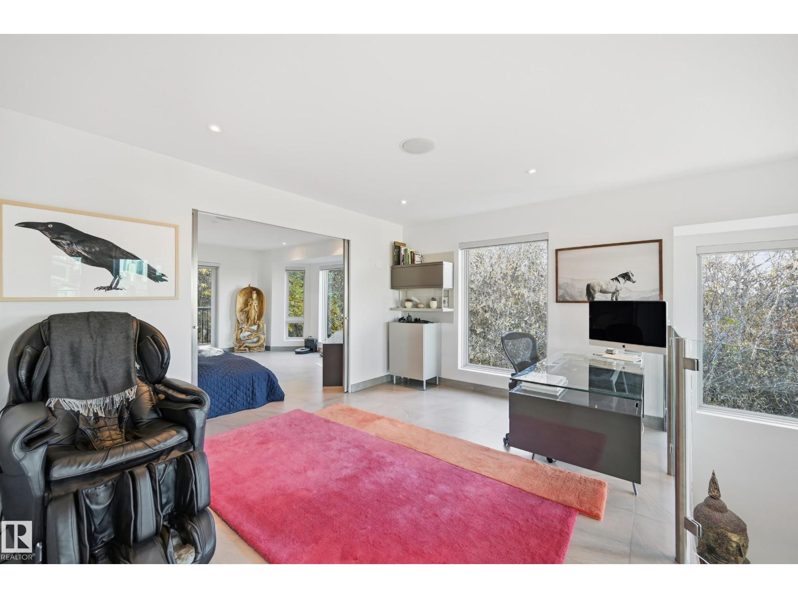 ARCHITECTURAL GEM IN EDMONTON’S RIVER VALLEY! Tucked into the quiet enclave of Skunk Hollow, this modern home blends thoughtful design with rare privacy. Rebuilt from the frame up in 2007, it offers clean lines, warm natural light, and a calm connection to its ravine setting. Large windows frame views of the trees by day and city lights by night. The open main floor features two inviting living areas and a chef’s kitchen with Sub-Zero and Miele appliances, perfect for cooking or entertaining. Upstairs, the owner’s retreat includes a private office, flex space, spa-inspired ensuite, and expansive walk-in closet with access to a peaceful patio. The reverse walkout lower level offers a heated epoxy garage, full bath, and guest/flex room (no window), with in-floor heating throughout. Opportunity exists to add additional bedrooms. NOTE: 3D renderings illustrate potential future layouts. Garage photo virtually staged. (id:6769)