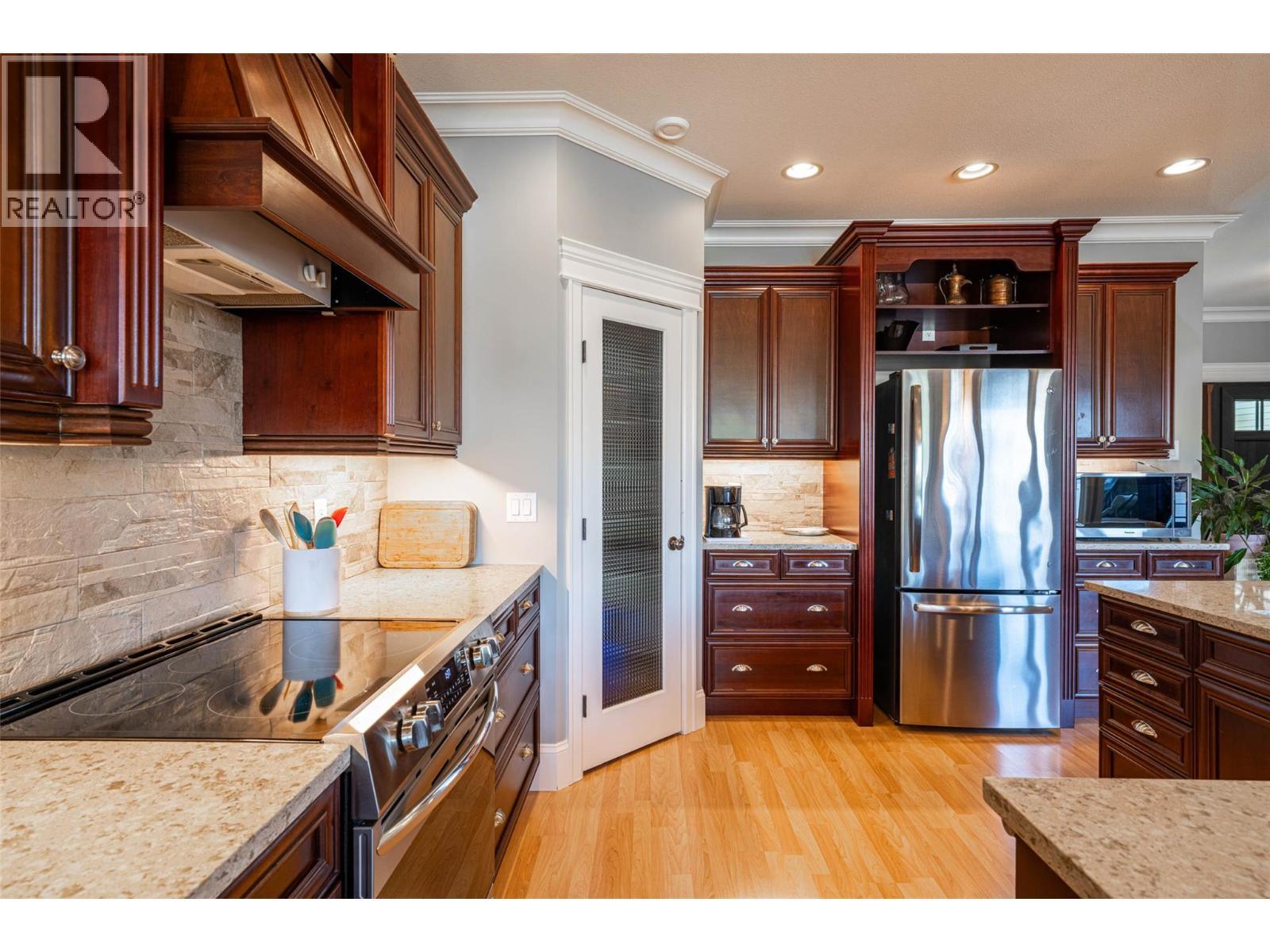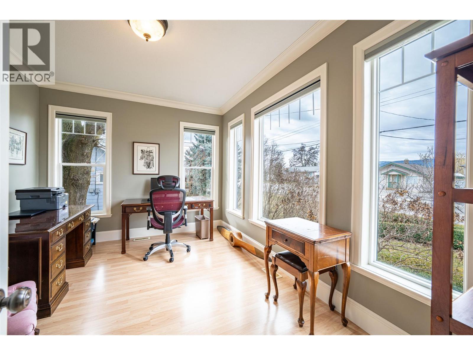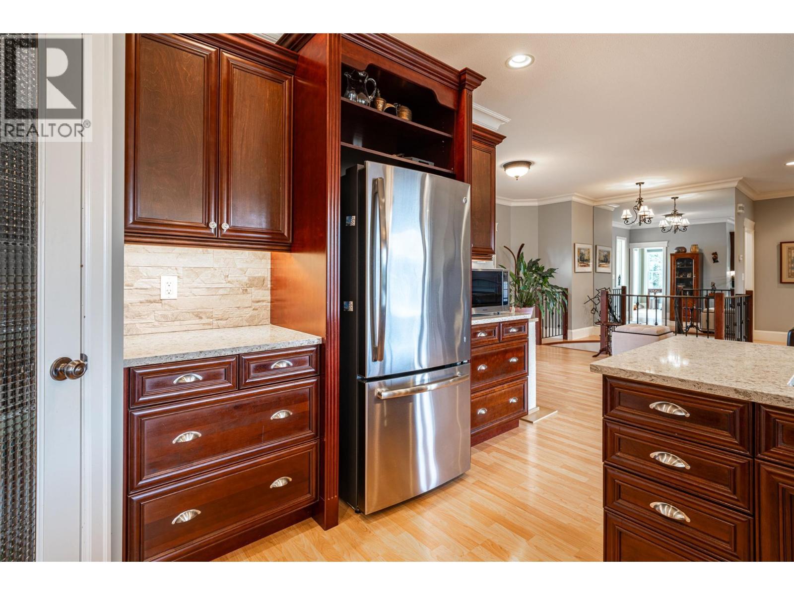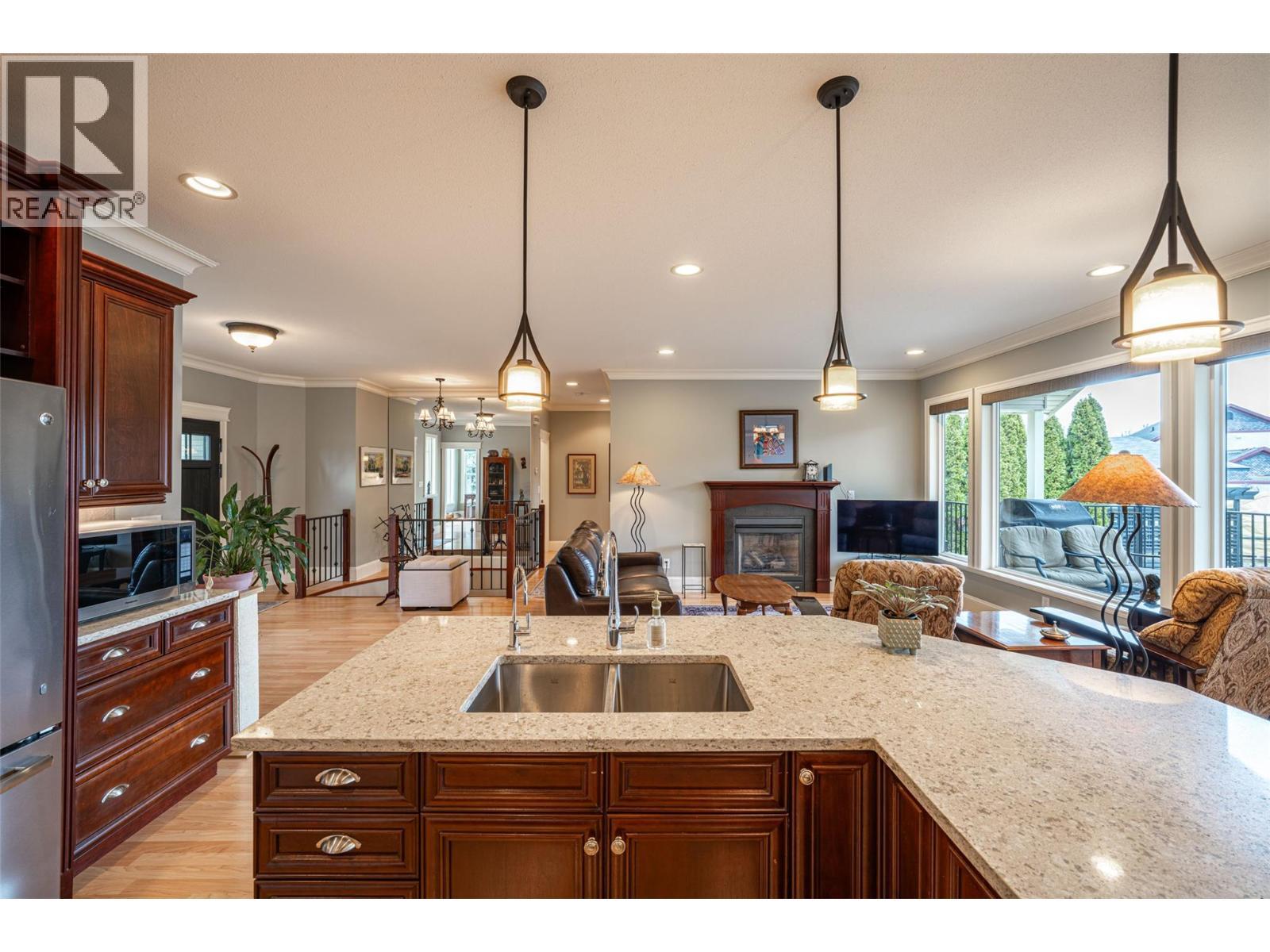 Remarkable, high quality built, former RLB Construction show home! Custom built in 2004 by the builder, offering 4 bed +1 den/ spare bedroom, 3 bath, open plan Rancher style home with high-end finishing thru-out. Nine foot ceilings, laminate flooring, a gorgeous kitchen w/ stainless steel appliances, and quartz countertops, a walk in pantry, an island, open plan to dining room & living room w/ a feature gas fireplace, overlooking a generous covered back deck that is perfect for entertaining. The gorgeous front porch opens to a welcoming foyer entrance, leading you to a classic spiral staircase, that takes you down to the spacious walkout basement level, with three bedrooms down, 1 full bath down, and a spacious family room , and exercise area, which has roughed in plumbing potentially for an in-law suite or wet/bar. The back yard is fully fenced, enclosing a refreshing & luxurious in-ground salt water pool. Situated on a .22 acre flat lot, with an attached oversize single garage in the front, and a driveway that goes up the side of the house to the backyard where a bonus fully insulated detached workshop w/10' ceilings, and 200 amp service, make it the perfect man cave or she shed. Flat parking for an RV or boat. You will love the quiet tree lined street, in desirable Armstrong, walking distance to downtown, and schools, only 15 minutes north of Vernon BC, and 38 minutes from world renowned skiing at Silver Star Mountain Resort. Don't miss out on this unique home . (id:6769)