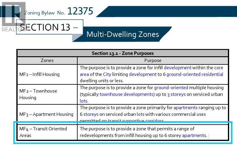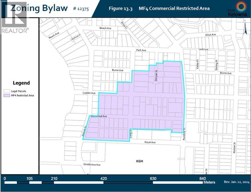 Prime Transit-oriented Multi-family Development Site just 300 meters from Kelowna General Hospital. This rare 0.45-acre site is ideally located within the Hospital Transit Oriented Area, the property is zoned MF4 – Transit Oriented Areas with future land use designation Core Area – Health District (C-HTH). Zoning supports multi-unit residential development up to approximately 6 storeys with a base FAR of 2.5 and potential for bonus density, and is exempt from minimum parking requirements under the Zoning Bylaw, offering valuable flexibility for developers. Walking distance to beaches, City Park, Downtown, schools, and the Abbott Street Active Transportation Corridor, and only minutes to the South Pandosy Urban Centre, Okanagan College, major shopping centres, future UBCO Downtown Campus. This is a rare opportunity in a high-demand location with strong fundamentals and outstanding long-term growth potential! Measurements are approximate and should be independently verified. Buyers are responsible for confirming all information and conducting their own due diligence. (id:6769)