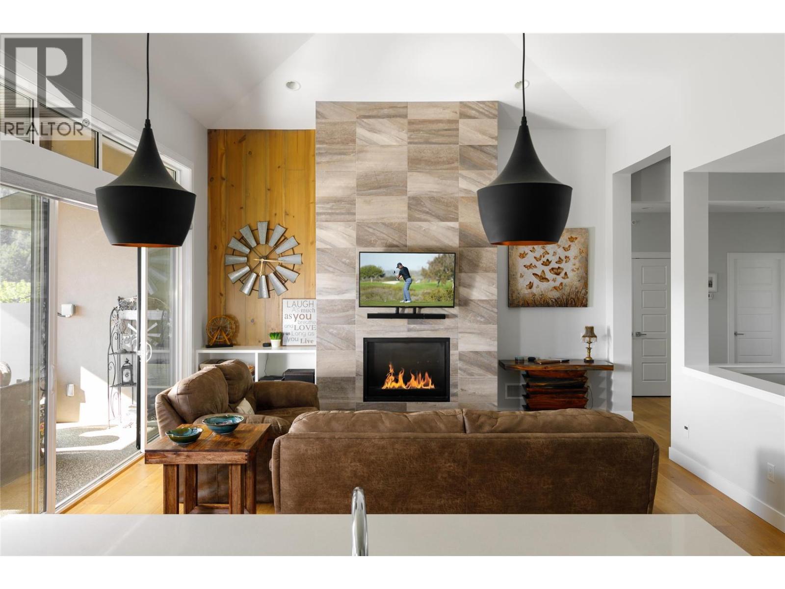 Discover modern luxury and thoughtful design in this exquisite four bedroom, three bathroom home that captivates with its soaring vaulted ceilings and abundant natural light streaming through grand windows, complemented by an expansive screened outdoor deck with lovely views overlooking treetops to the south. The main level seamlessly integrates a stunning open-concept layout featuring a floor to ceiling tiled gas fireplace in the living room, a well appointed kitchen with a chic coffee bar and pantry and an inviting dining area, offering direct access to a large covered deck equipped with heaters for year-round enjoyment. A generous sized primary bedroom, with a five piece ensuite, an additional bedroom and full four piece bathroom as well as a double car garage conveniently located off the laundry and mud room. The lower level thoughtfully provides a dedicated workout room, a four piece bathroom, a comfortable family room, two additional bedrooms, and a finished and versatile flex room ideal for a home theatre. Ownership at Predator Ridge unlocks a truly fabulous lifestyle, boasting extensive hiking and biking trails, a fitness centre, two championship golf courses, tennis and pickleball facilities, restaurants, and a delightful cafe/store. Nestled within 1,200 acres, this vibrant resort community offers a lively year-round atmosphere, with beautiful beaches, wineries and orchards nearby, and the city of Vernon just a twelve minute drive away. Predator Ridge is exempt from the BC Speculation and Vacancy Tax. (id:6769)
