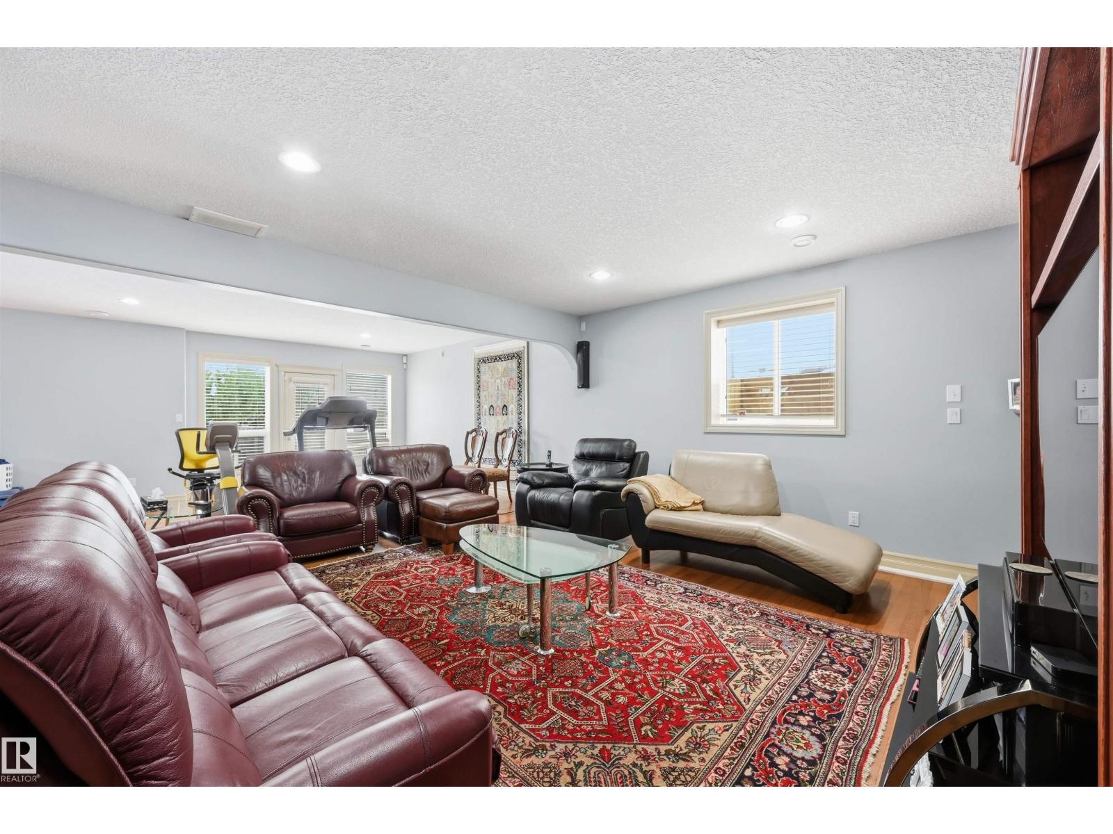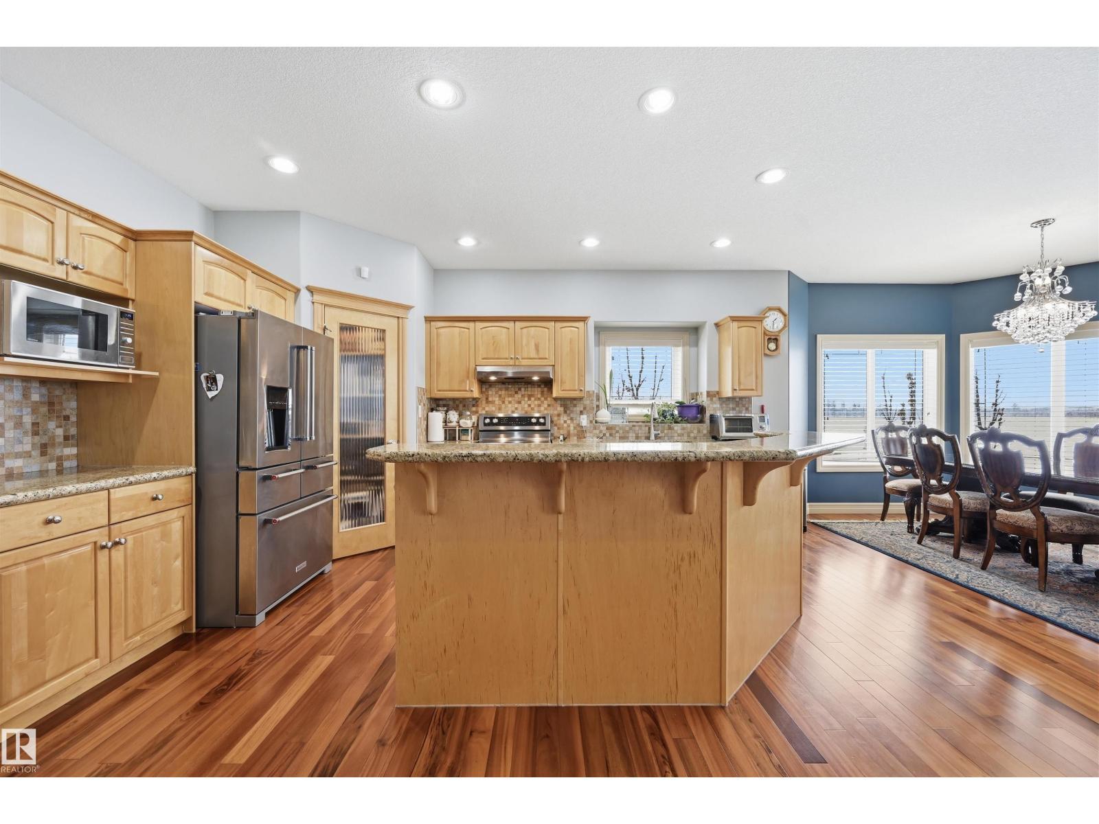 EXCEPTIONAL WALK OUT LUXURY 4 bedrm bungalow. Backing to a DRY POND & treed green space nestled in a cul de sac in the popular neighborhood of Riverside. Approx 3500 sf of luxury living space (1811 sf above grade). Open sunny plan is perfect for entertaining & family gatherings. Soaring 11/9 ft ceilings add to the airiness of this cheery home. Gourmet Chef’s kitchen w/granite counters, NEWER S/S appliances & large W/I pantry. Brazilian hardwood & tile flooring adorns much of the main. Main floor features a FLEX (dining/den) rm w/French drs, laundry & RARE second bedroom/ full bathrm. Spacious primary bedrm w/luxurious ensuite. Lower level has newer flooring, IN FLOOR heating, 2 large bedrms, games area w/wetbar, B/I entertainment centre, 2nd FP & a 3rd full bathrm (upg w/quartz). 9 ft ceilings, upgraded humidifier, BBQ gas line, A/C 2024, U/G sprinklers, newer H20 tank, $20K gazebo, HEATED O/S garage w/epoxy floors. West facing 7500 sf pie yard w/fruit trees. Access to Rec Centre & multiple schools & EIA (id:6769)