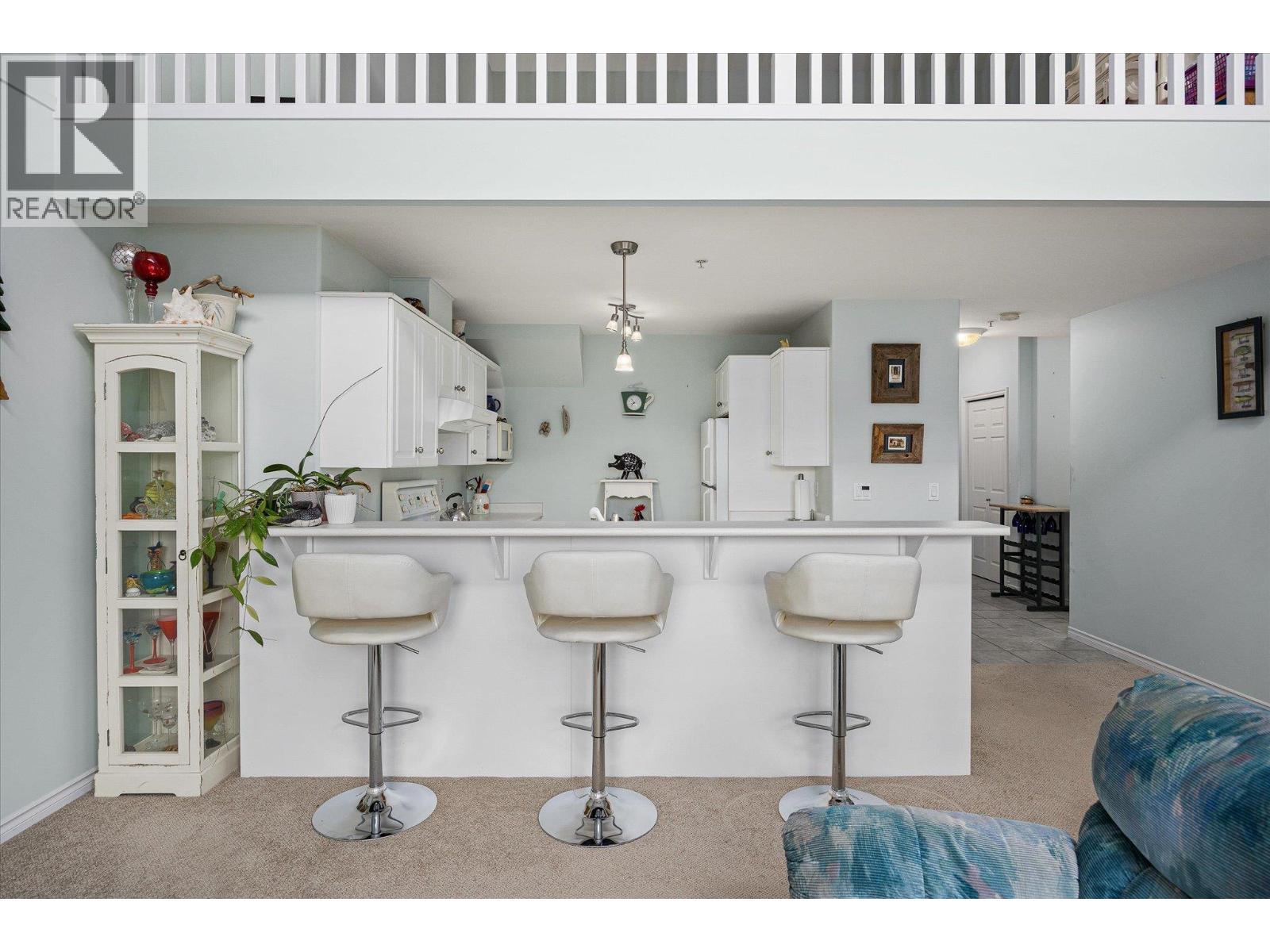 Bright and spacious top-floor 2-bedroom condo featuring vaulted ceilings and an open-concept layout filled with natural light. The main living area is warm and inviting, complete with a cozy gas fireplace and large windows. The kitchen provides ample counter space and a convenient breakfast bar, perfect for everyday living and entertaining. Step out onto the 14 x 6 east-facing deck overlooking the quiet side of the building, ideal for morning coffee and relaxed evenings. This well-maintained building offers desirable amenities, including a fitness centre, rooftop area, and guest suite for visiting family and friends. Located in an exceptionally central area, steps to Orchard Park Mall, Costco, Superstore, Mission Park Greenway, restaurants, and public transit, walk to everything you need. Top-floor living, vaulted ceilings, and unbeatable convenience make this a fantastic opportunity. (id:6769)