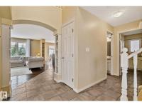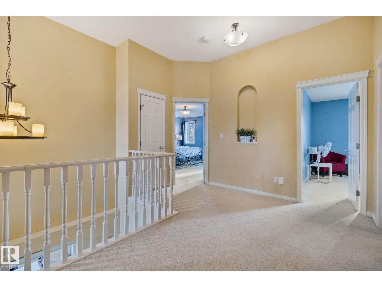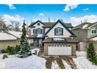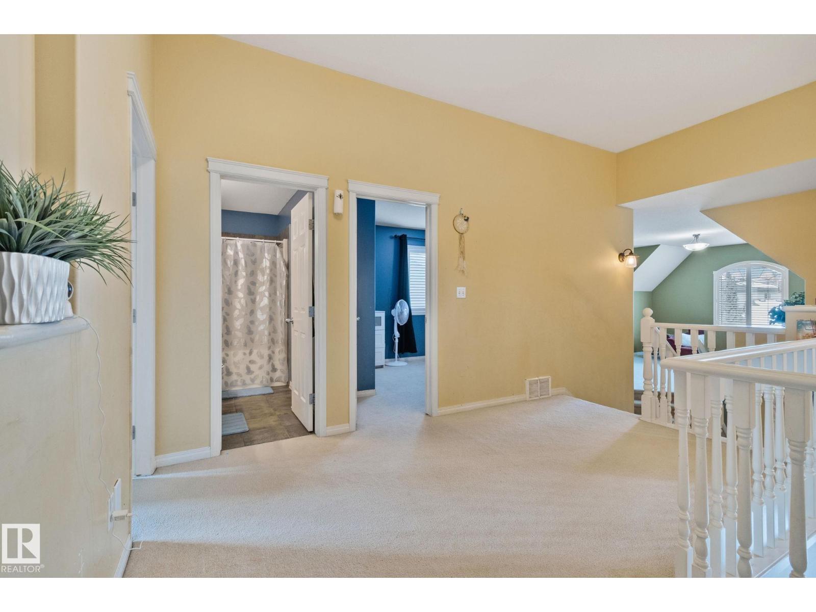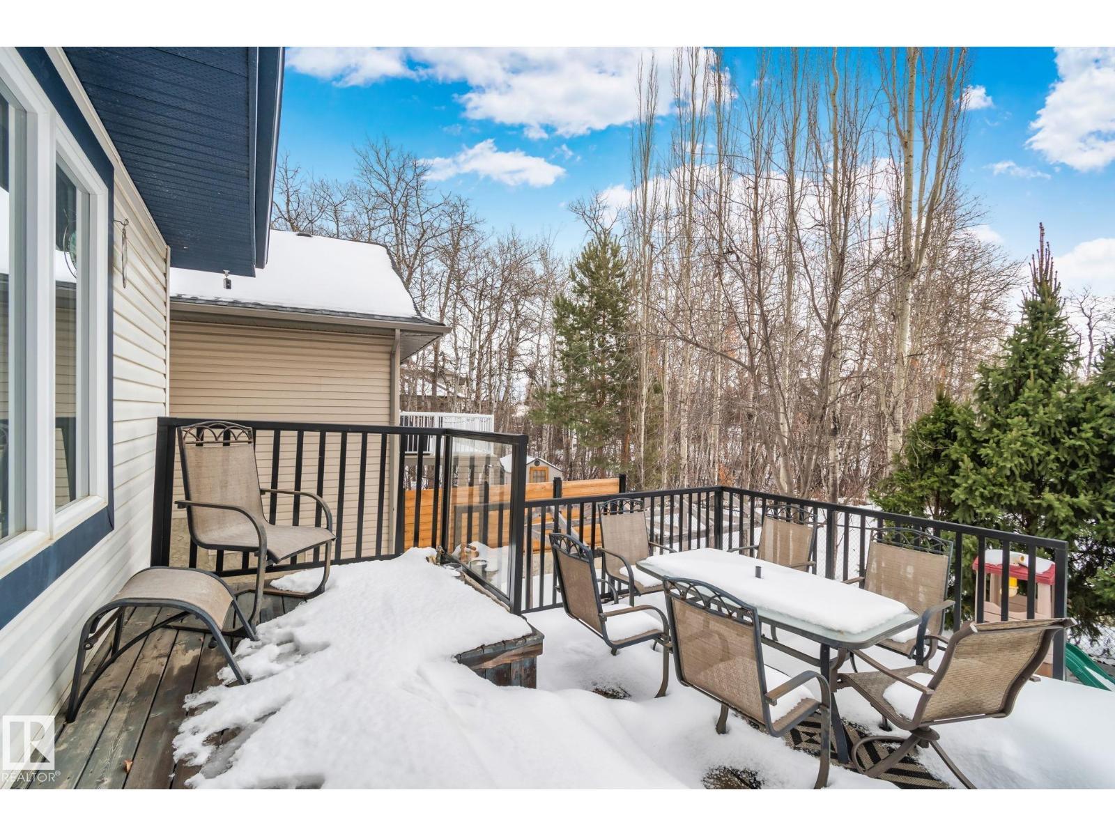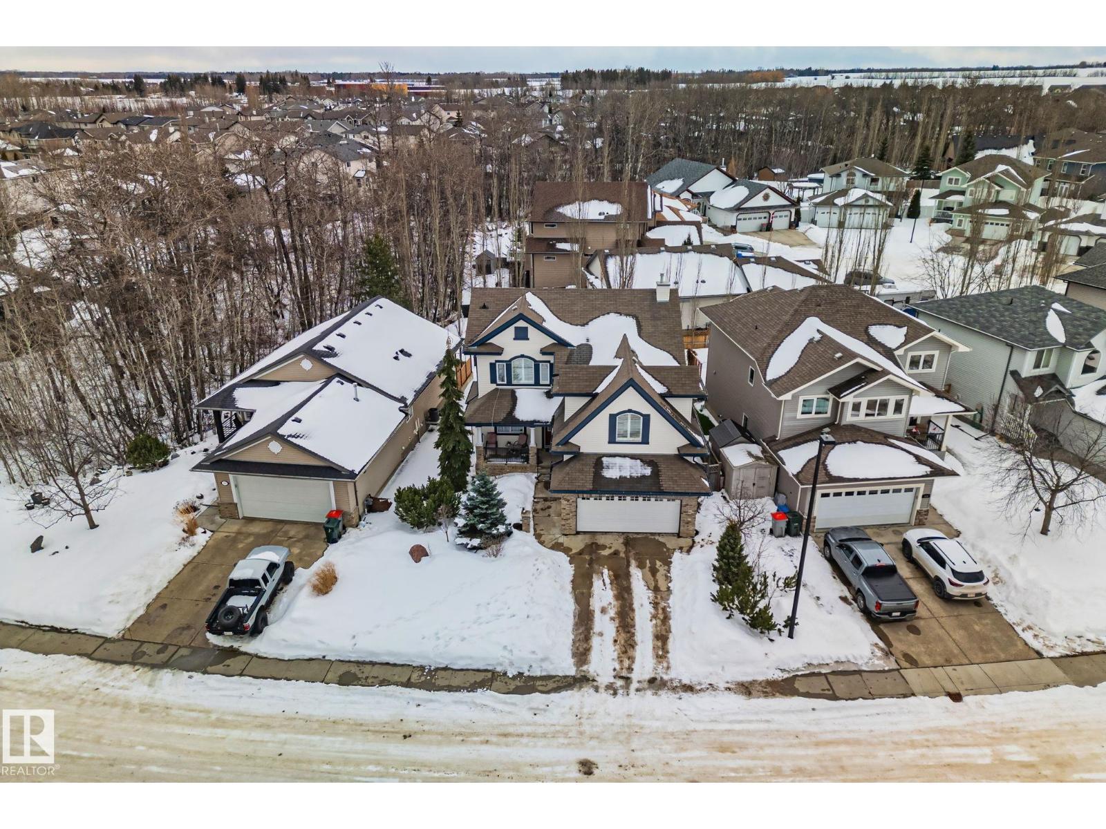 Welcome to this beautifully designed 2-storey home in the sought-after community of Westerra, surrounded by environmental reserve with mature trees and walking trails! Offering 3+1 bedrooms, a main floor den, 3.5 bathrooms and a finished basement, this home delivers exceptional space and flexibility. The open-concept main floor features dark hardwood and ceramic tile, a gas fireplace with custom built-ins, and a bright white kitchen with ceiling-height cabinetry, oversized island, farmhouse sink, gas stove, stainless steel appliances, and walk-through pantry. Upstairs you'll find a spacious bonus room, a primary retreat with 5-pc ensuite including soaker tub, double sinks, separate shower, and water closet plus two secondary bedrooms. The basement includes a large rec room, fourth bedroom, 3-pc bath, and flex space with second laundry hookups. Enjoy the 2-tier deck, open-to-above foyer, double attached garage, A/C, tankless hot water, and central vac. Close to schools, parks, and easy access to Edmonton. (id:6769)