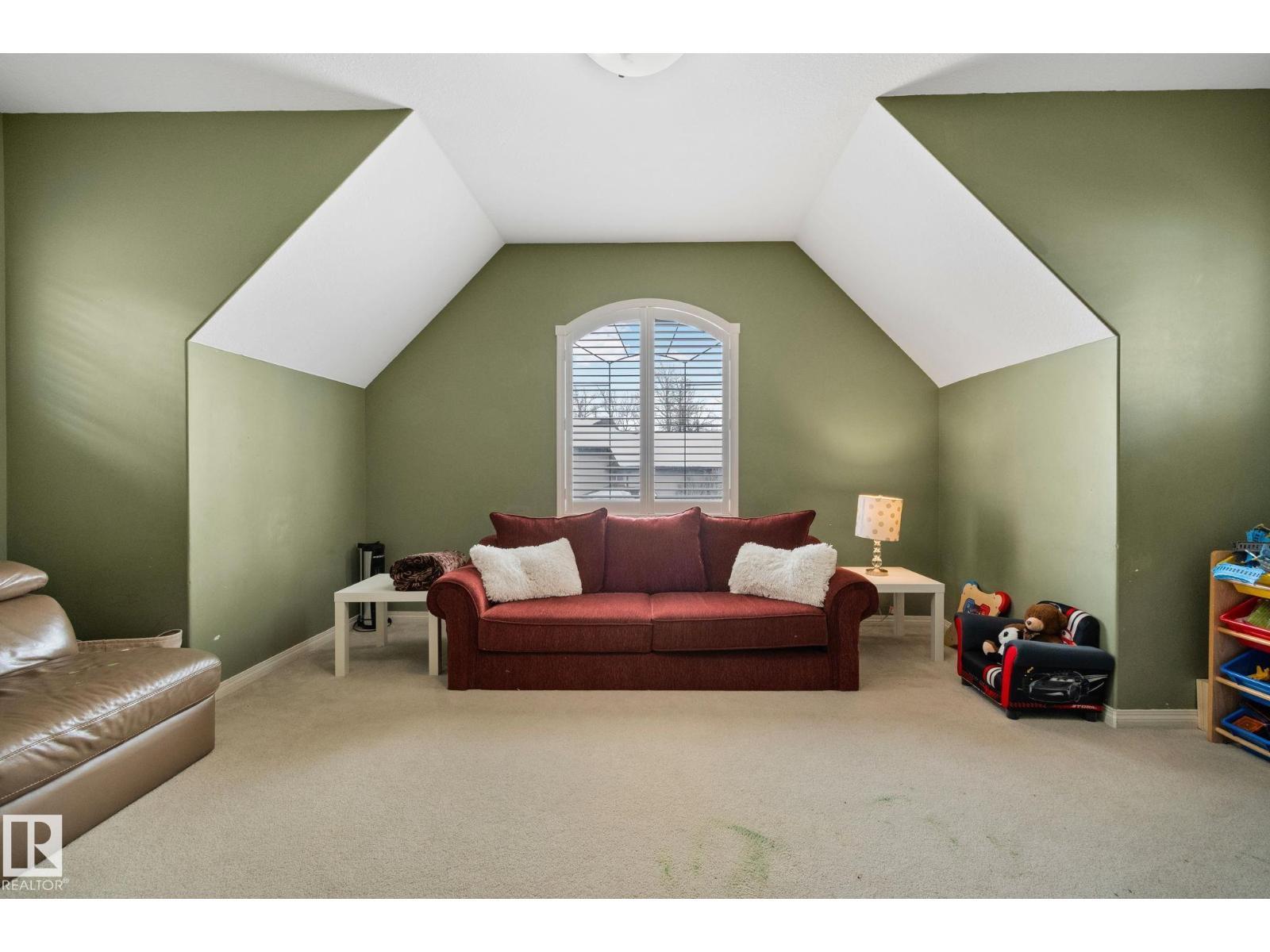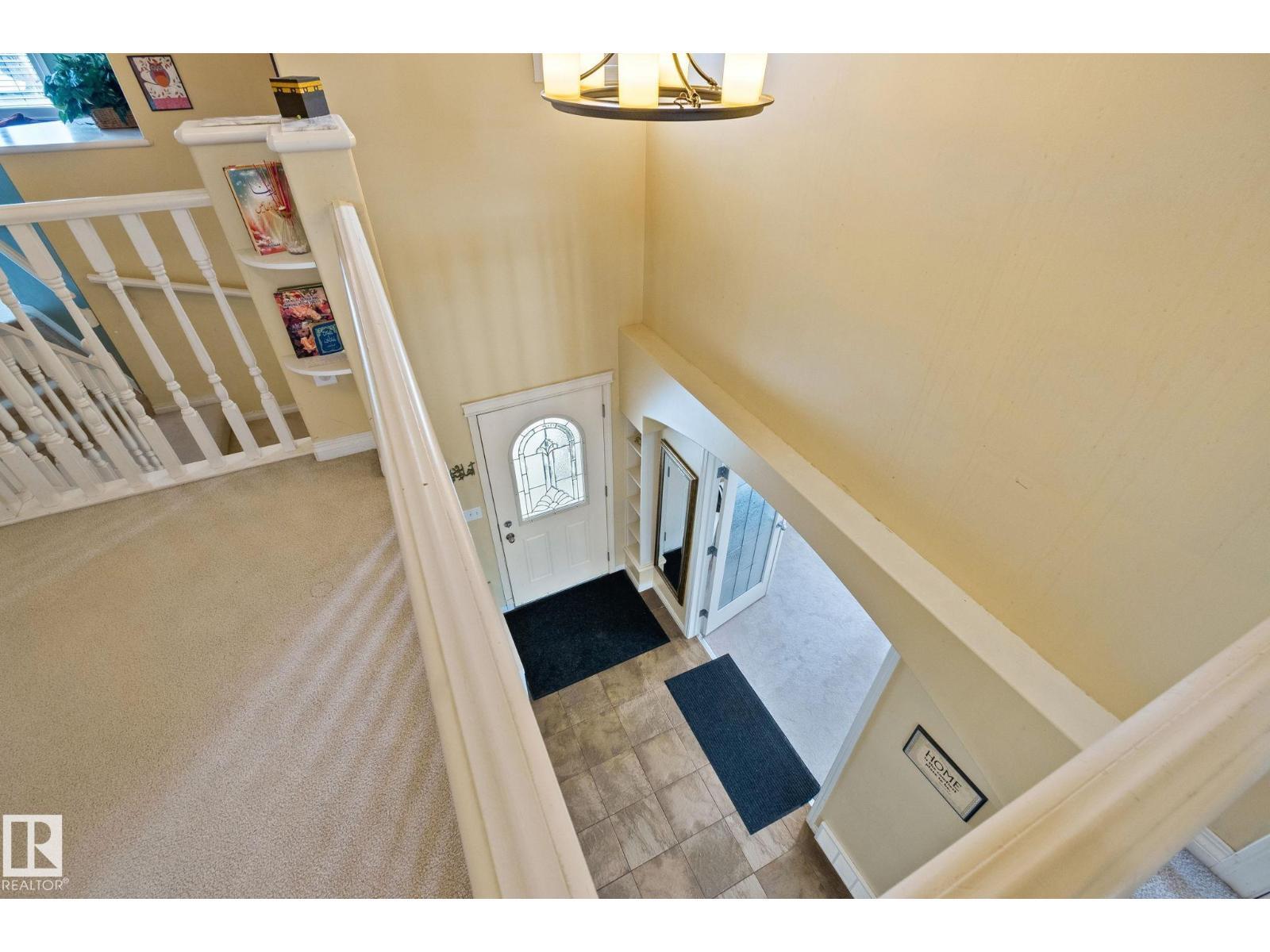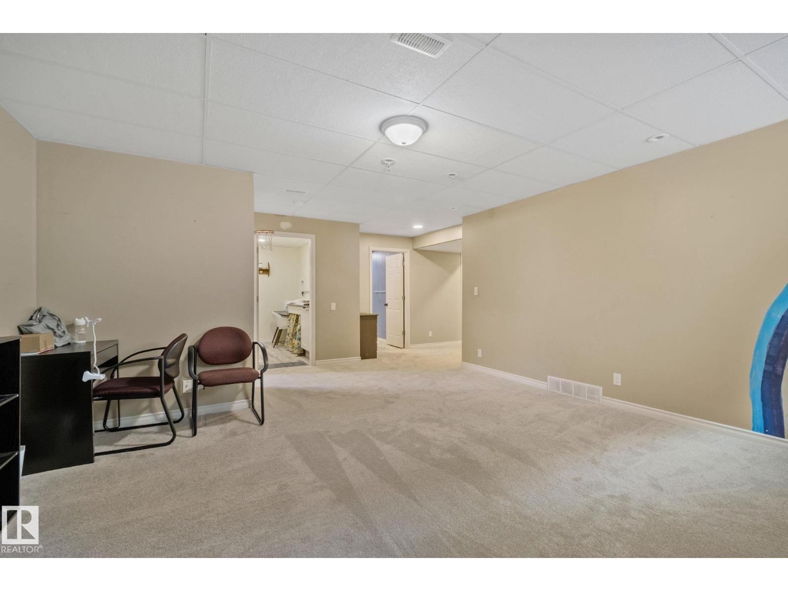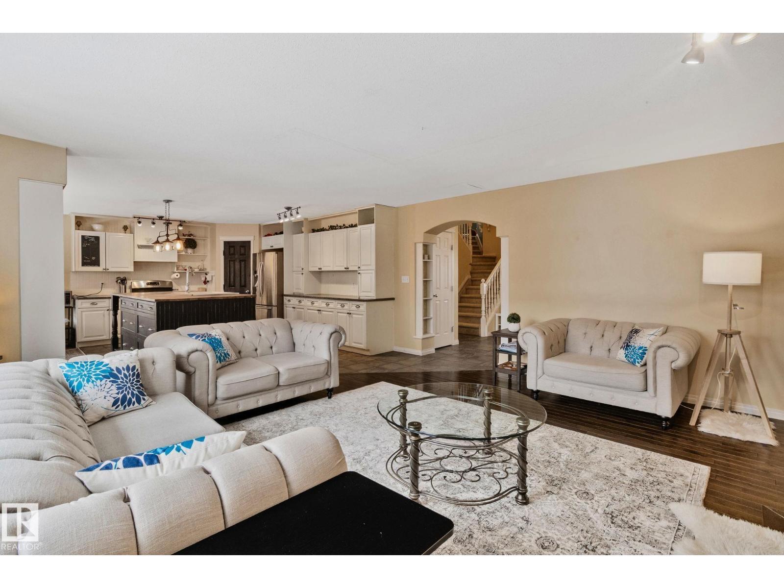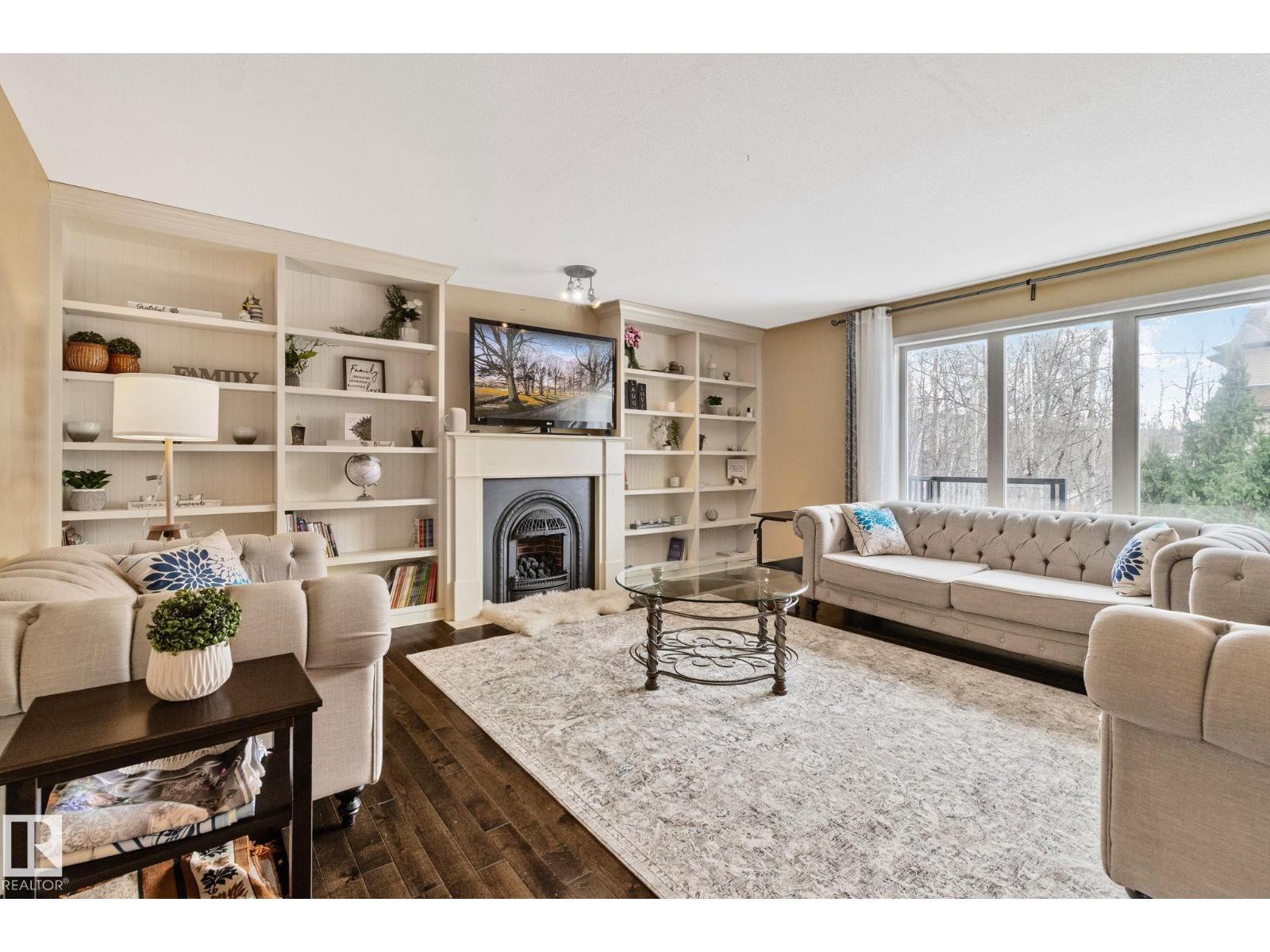 Welcome to this beautifully designed 2-storey home in the sought-after community of Westerra, surrounded by environmental reserve with mature trees and walking trails! Offering 3+1 bedrooms, a main floor den, 3.5 bathrooms and a finished basement, this home delivers exceptional space and flexibility. The open-concept main floor features dark hardwood and ceramic tile, a gas fireplace with custom built-ins, and a bright white kitchen with ceiling-height cabinetry, oversized island, farmhouse sink, gas stove, stainless steel appliances, and walk-through pantry. Upstairs you'll find a spacious bonus room, a primary retreat with 5-pc ensuite including soaker tub, double sinks, separate shower, and water closet plus two secondary bedrooms. The basement includes a large rec room, fourth bedroom, 3-pc bath, and flex space with second laundry hookups. Enjoy the 2-tier deck, open-to-above foyer, double attached garage, A/C, tankless hot water, and central vac. Close to schools, parks, and easy access to Edmonton. (id:6769)
