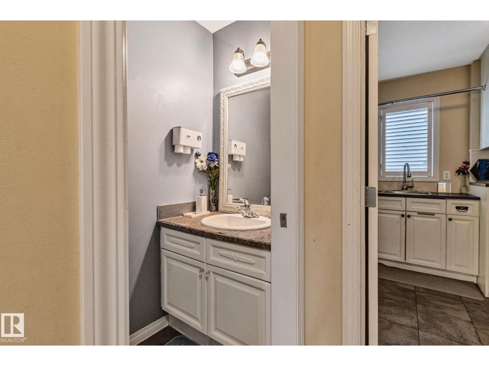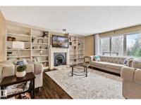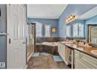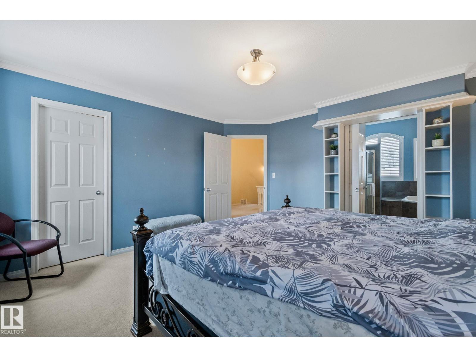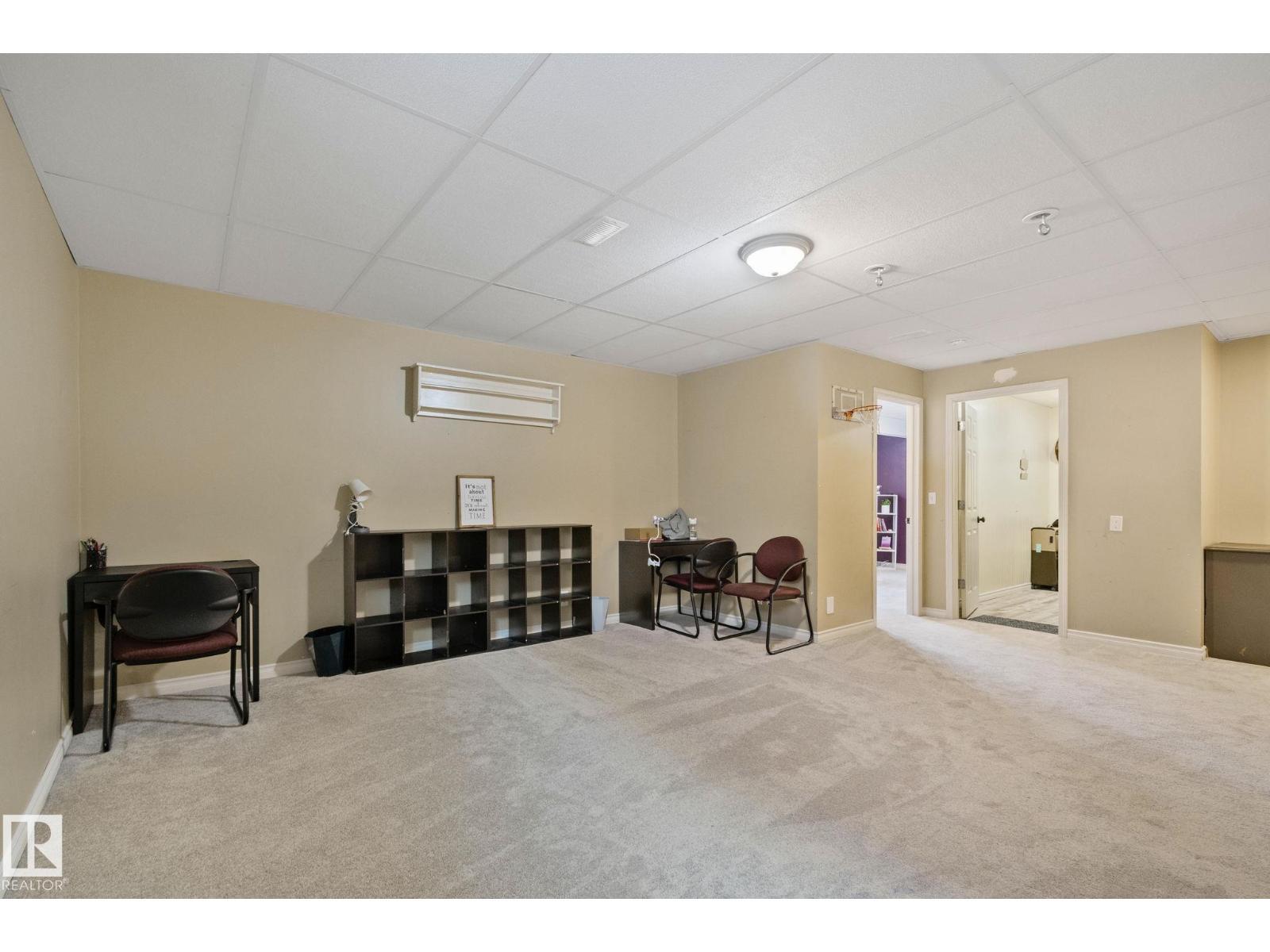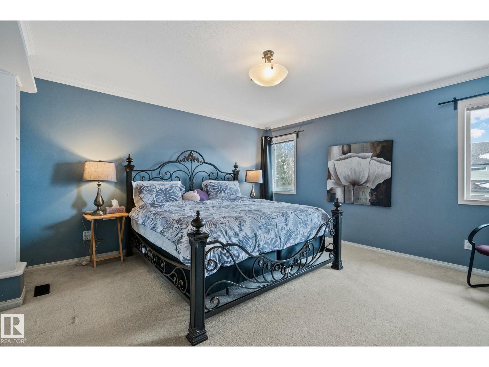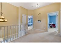 Welcome to this beautifully designed 2-storey home in the sought-after community of Westerra, surrounded by environmental reserve with mature trees and walking trails! Offering 3+1 bedrooms, a main floor den, 3.5 bathrooms and a finished basement, this home delivers exceptional space and flexibility. The open-concept main floor features dark hardwood and ceramic tile, a gas fireplace with custom built-ins, and a bright white kitchen with ceiling-height cabinetry, oversized island, farmhouse sink, gas stove, stainless steel appliances, and walk-through pantry. Upstairs you'll find a spacious bonus room, a primary retreat with 5-pc ensuite including soaker tub, double sinks, separate shower, and water closet plus two secondary bedrooms. The basement includes a large rec room, fourth bedroom, 3-pc bath, and flex space with second laundry hookups. Enjoy the 2-tier deck, open-to-above foyer, double attached garage, A/C, tankless hot water, and central vac. Close to schools, parks, and easy access to Edmonton. (id:6769)
