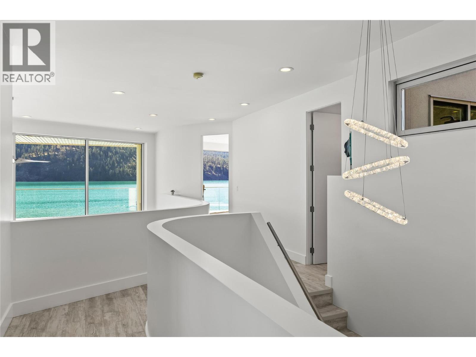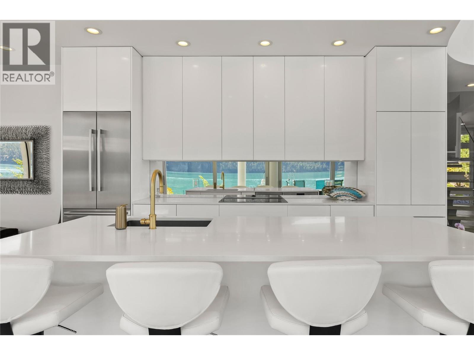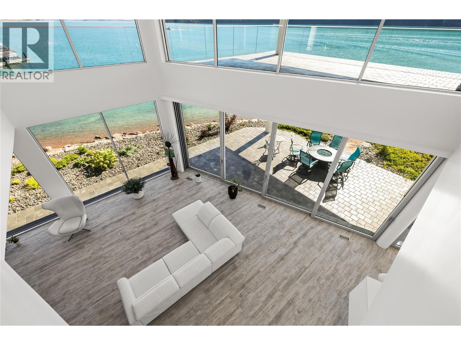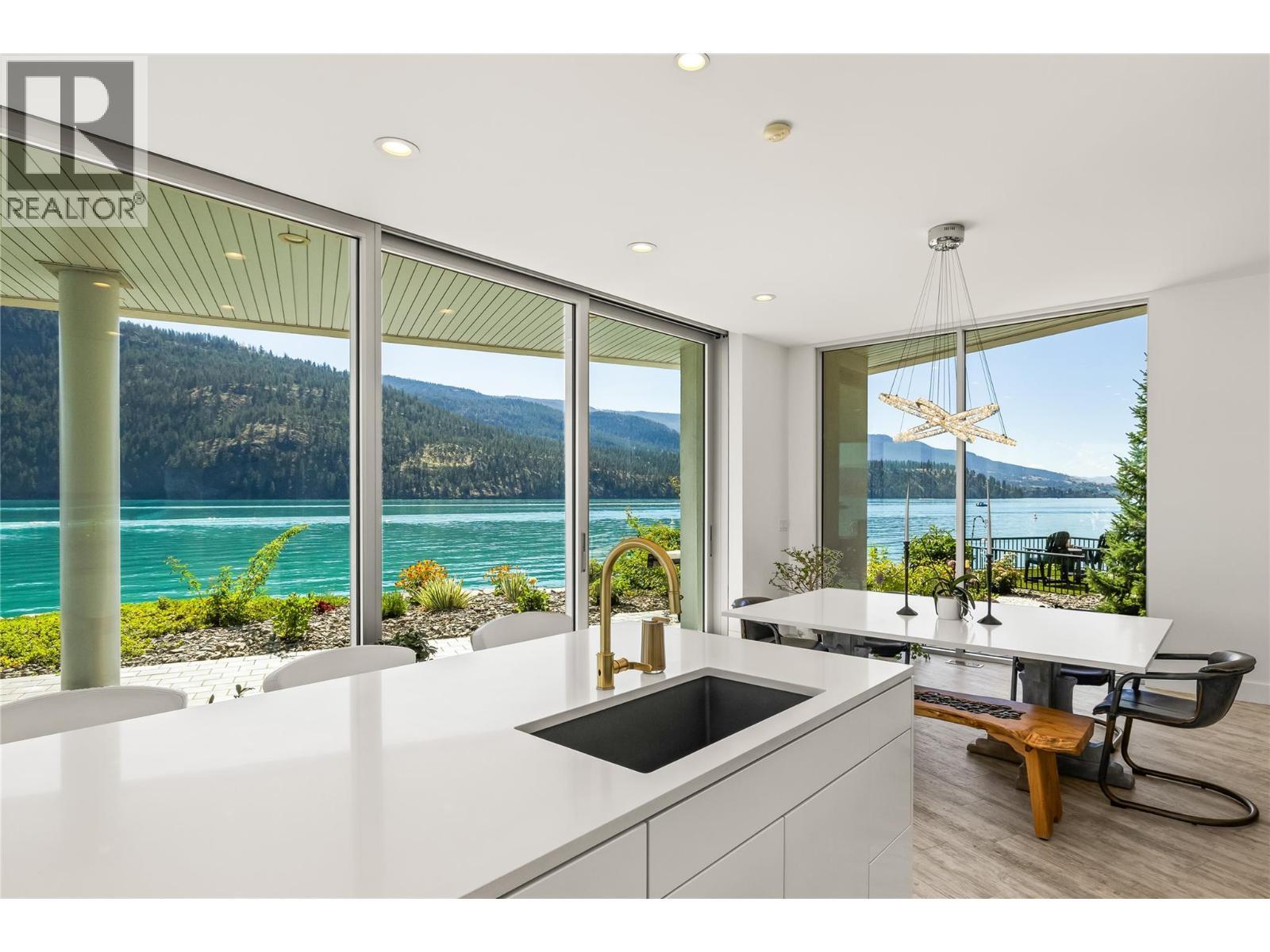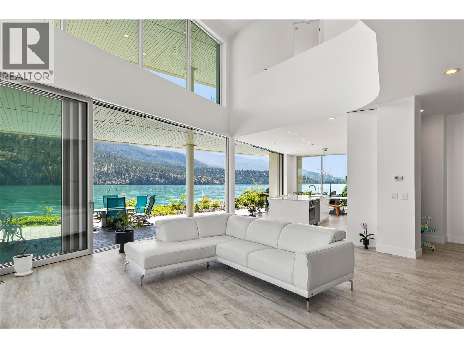 Welcome to 18541 Crystal Waters Rd—an exceptional opportunity in this gated, bare land strata community on Kalamalka Lake. This flat corner lot is the largest in the development, with 130' of lakefront, direct beach access, and a boat lift—offering the ultimate lakeside lifestyle. The Okanagan Rail Trail is in your backyard, providing over 50 km of scenic trails for cycling, walking, and exploring the valley. Inside, massive 10' tall Lift and Slide doors span the front wall and fold away, blending indoor and outdoor living. The spacious kitchen features a large island, mirrored backsplash reflecting lake hues, a walk-in pantry, and premium finishes. Soaring 19' ceilings define the open living area with a gas fireplace, and ceramic tile floors make maintenance easy. A beach bathroom with outside access simplifies water rinsing after lake days. Floating stairs with a glass railing lead upstairs to the primary suite with Nano doors opening to a private deck overlooking the lake. The ensuite includes a standalone tub, frameless shower, dual sinks, and walk-in closet. Two more bedrooms connect to a wraparound deck with lake views. Additional features include solar panels, hot water on demand, built-in vacuum, oversized double garage (or 3 car tandem) with mezzanine storage, 240V EV charger, crawl space, fruit trees (2 apple/plum/nectarine/cherry), and a raised garden bed. The strata fee is $600/month, and two pets of any size are permitted. (id:6769)
