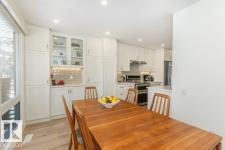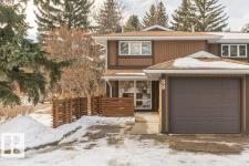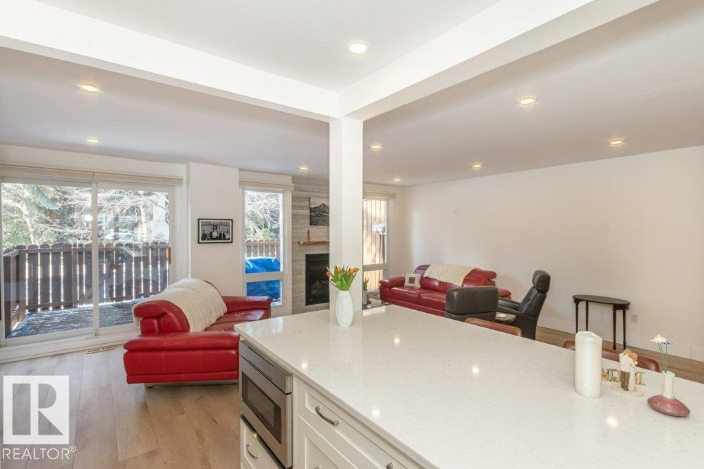 Welcome to HEARTHSTONE, a quality well managed condo with beautiful mature landscaping. The towering evergreens create a serene setting by the river valley with walking & biking trails. Schools, shopping, medical, dental facilities & bus service are nearby. The complex has had all the windows, garage doors & shingles replaced. This A/C END unit has been superbly renovated with an open floor plan, LED pot lighting, gorgeous kitchen with Delton cabinets, extensive quartz counters, glass tile backsplash & stainless steel appliances. Large dining room, gas fireplace in the spacious living room with patio doors opening onto the west facing FENCED deck area. Attractive vinyl plank flooring throughout main floor plus renovated bathrooms. Three bedrooms upstairs with laminate flooring, a two piece ensuite off the primary bedroom which has a walk-in closet, as well as a three piece family bath. The basement has a two piece bath & is ready for future development. Enjoy summer BBQs on the sunny deck! It's a WINNER! (id:6769)