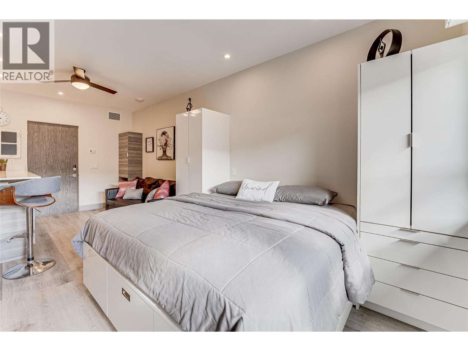 Welcome to Vita Resort Residences, where comfort, convenience, and the Okanagan lifestyle come together. This fully furnished studio is just steps from the shores of Okanagan Lake, making it an ideal vacation getaway, full-time residence, or investment property. Thoughtfully designed to maximize space, the unit features a king-size bed, modern kitchen with stainless-steel appliances, and a convenient washer/dryer combo. The home has been well maintained and is completely move-in ready. Step onto your covered balcony and enjoy peaceful mountain views—perfect for morning coffee or relaxing evenings. Residents of Vita enjoy resort-style amenities including a fitness center, outdoor pool, pickleball court, BBQ area, guest parking, and EV charging on-site. The unit also includes air conditioning, one full-size parking stall, a secure storage locker, and access to communal laundry on the same floor. Located near Marshall Field Park with its dog park, disc golf, and green space, and directly across from Lakeshore Park and local beaches, this property offers easy access to outdoor recreation and lakefront living. Rentals are permitted and pets are allowed with restrictions, making this a flexible option for owners and investors alike. Experience the best of the Okanagan lifestyle at Vita Resort Residences. (id:6769)