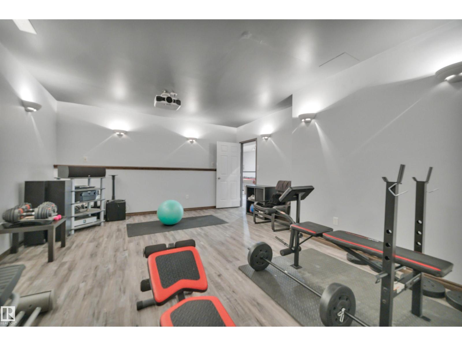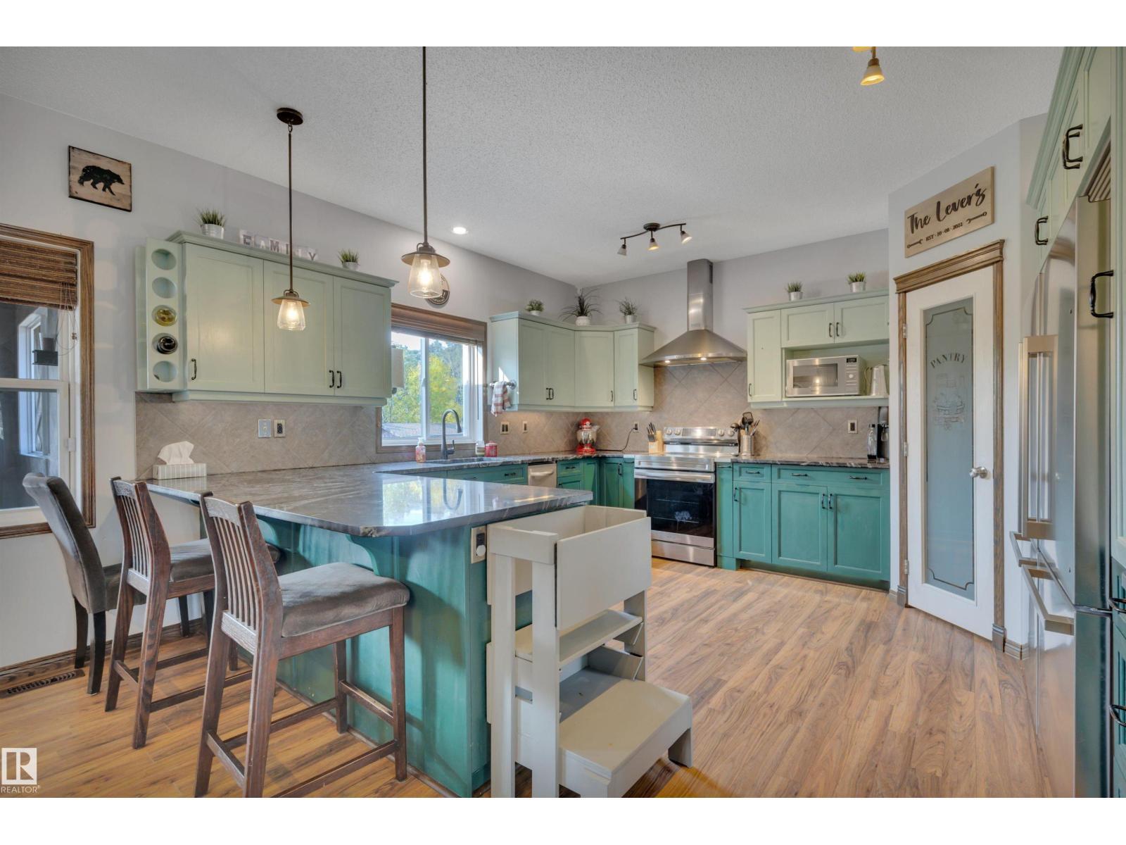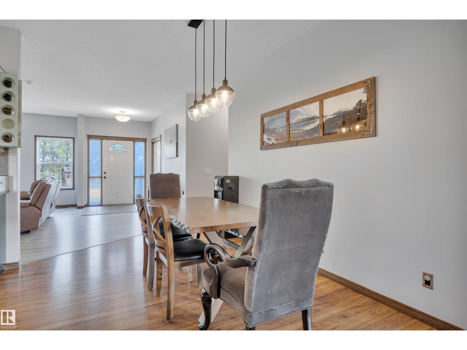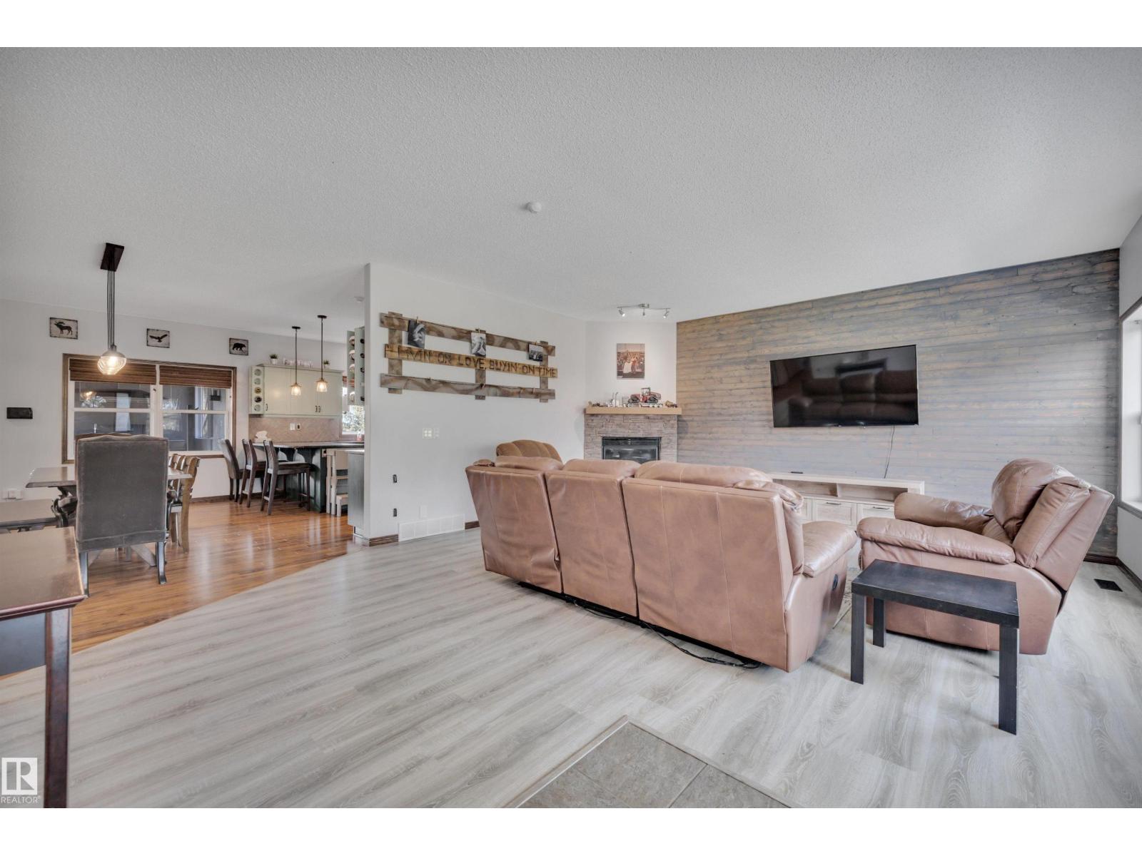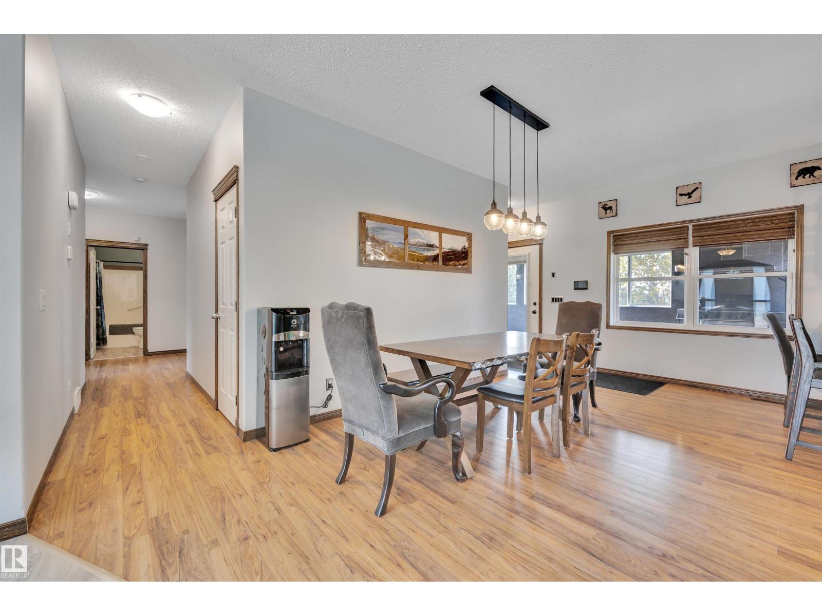 BEAUTIFULLY PRESENTED! 50' x 60' SHOP! TREED & PRIVATE! This 1773 sq ft 5 bed + 2 den, 3 bathroom raised bungalow on 4.13 acres out of subdivision is turnkey & only minutes to town! Feat: new shop w/ 14'x14' doors & solar panels, A/C, in floor basement heating, 9' ceilings, covered sunroom / deck, powered shed, custom grain bin bar & firepit space, & more! Your entryway leads into the large living room w/ chic woodgrain feature wall & gas fireplace; perfect spot for family visiting. Massive farmhouse kitchen w/ granite countertops, massive fridge / freezer combo, new oven, & spacious eat in dining. 3 bedrooms up, including the primary bed w/ walk in closet & 4 pce bath. Main floor laundry & 4 pce bath. The basement is fully finished, w/ rec room w/ pool table & wet bar, theatre room for movie night, 2 massive bedrooms, 3 pce bath w/ infared sauna. 2 dens, & tons of storage room! The yard is incredible! Fully treed perimeter, landscaped; pride of ownership is evident. A must see property! (id:6769)
