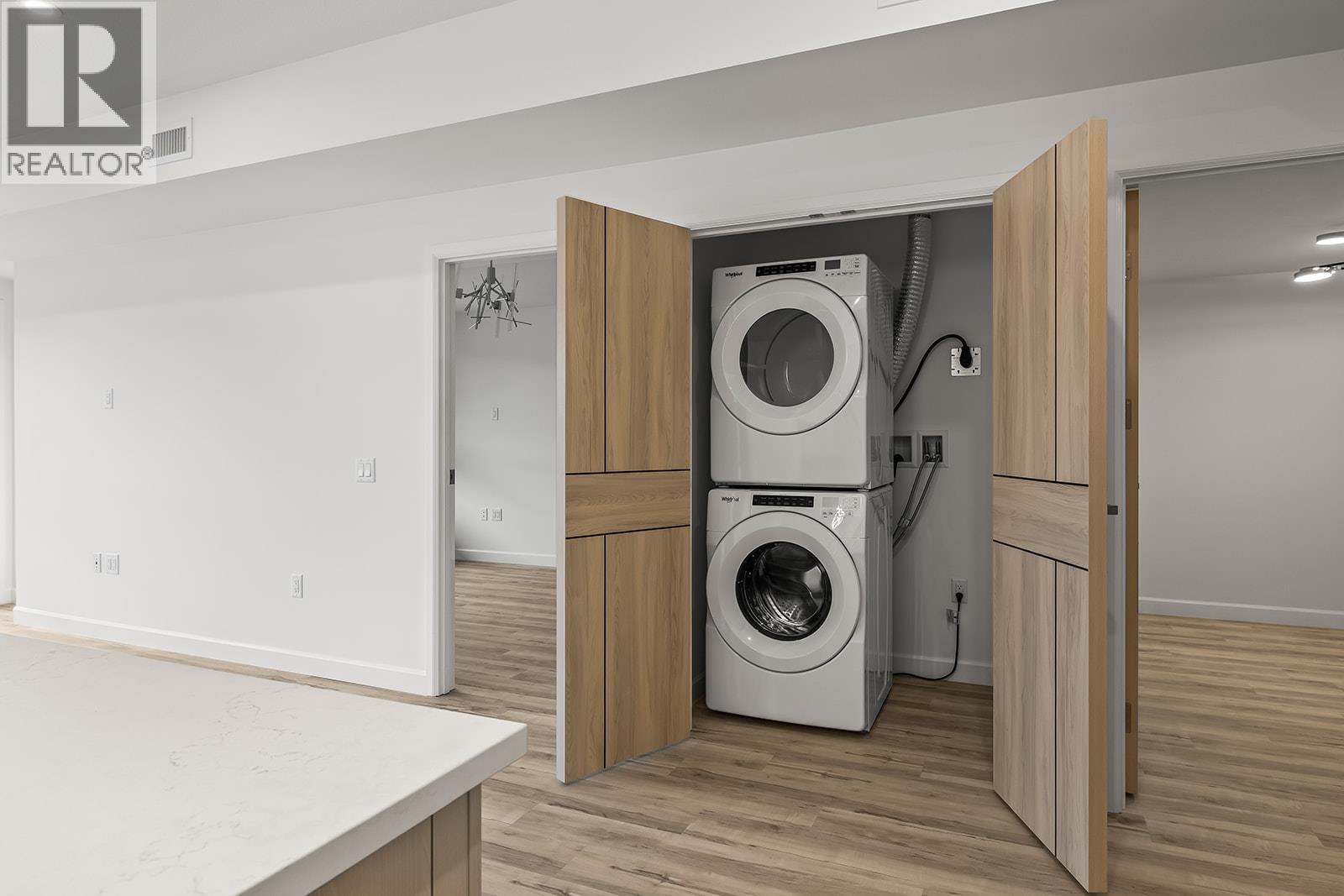 Brand New. Move-In Ready. And anything but ordinary. Welcome to Eminence at Knox Mountain. This 2-bed, 2-bath home offers approx. 949 sqft of smart, sophisticated living designed for people who appreciate clean lines & thoughtful details. Inside, 9-ft ceilings and expansive windows create a bright, open feel. The Sky colour palette interior blends light wood tones, striking black accents & glass balcony features. The kitchen is a standout with premium 2-tone cabinetry, quartz countertops, stainless steel appliances, a gas range & a unique wine storage feature. An in-suite laundry room adds convenience, while designer LED lighting, a statement entry door, solid-core interior doors, & custom shelving & closet solutions complete the polished finish. You’ll also enjoy underground parking with your own private bike cage. The building’s common rooftop viewing terrace gives all new meaning to Kelowna’s Patio Season. Pet-friendly & Nature at your doorstep with direct access to Knox Mountain’s hiking & biking trails. Downtown Kelowna and Glenmore are minutes away. Buy new & save. Eligible buyers may qualify for the Property Transfer Tax exemption & the upcoming 1st time home buyer GST exemption & remaining homes include up to $100k in built-in savings from original pricing. If you want a designer condo you’ll genuinely love coming home to, this one checks all the boxes. Move-In Ready 1-Bed to 2-Bed + Den homes available. Sales Centre open Sat & Sun 12-4pm or by appointment. (id:6769)