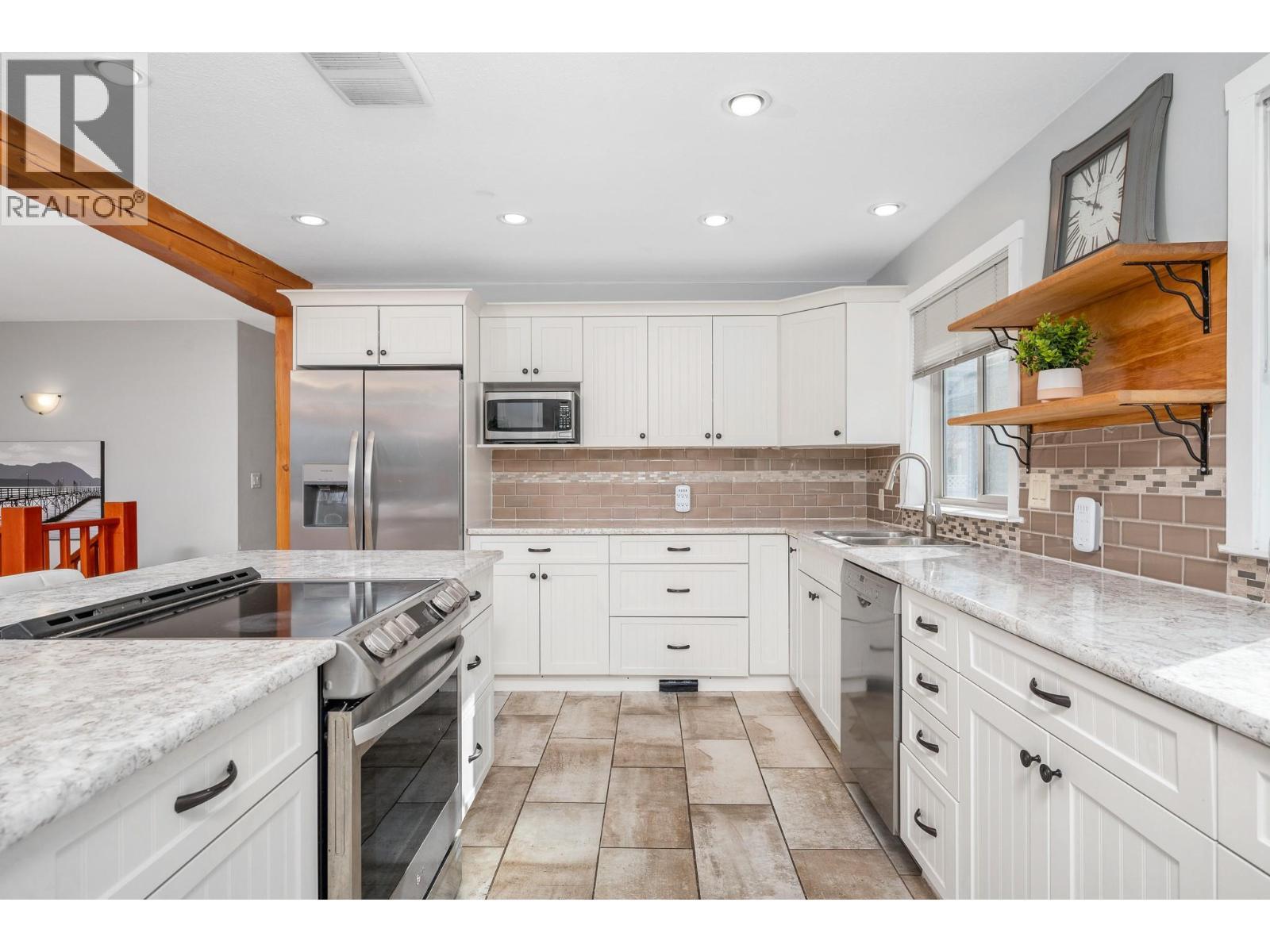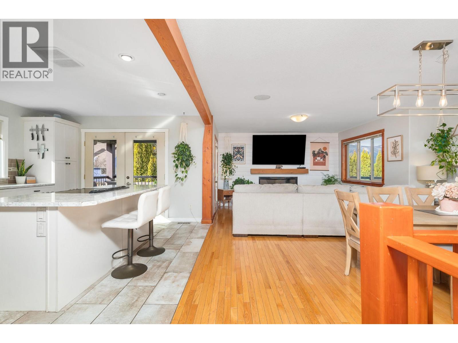 FAMILY HOME WITH SUITE IN A DESIRABLE NEIGHBOURHOOD! Set on a private corner lot in a sought-after area, this inviting property is the kind of place where kids ride bikes after dinner and lifelong memories are made.The bright open-concept kitchen, living, and dining area is designed for gathering and connection. Warm hardwood floors, tile in key spaces, and soft carpet add comfort throughout. The spacious kitchen offers abundant cabinetry, a charming post-and-beam accent, and direct access to a side balcony with BBQ hookup - perfect for easy summer dinners and entertaining. The cozy living room is anchored by an electric fireplace, creating the perfect place to unwind at the end of the day. French doors off the dining area lead to a concrete balcony where you can enjoy peaceful views of Shuswap Lake while sipping morning coffee or watching the sunset. With 4 bedrooms & 2 bathrooms in the main home, there is room for growing families. The primary suite provides a relaxing retreat w/ a generous 5-piece ensuite & deep soaker tub. Downstairs, a lovely 1-bed, 1-bath Suite w/ separate laundry & own entrance offers excellent potential for extended family, guests, or valuable mortgage helper income. Outside, the partially fenced yard is ready for summer fun w/ an above-ground pool, gazebo, and space for kids & pets to play. Extra parking & a double attached garage provide plenty of room for vehicles, storage, & all the family toys. A warm & welcoming home in a location families love! (id:6769)