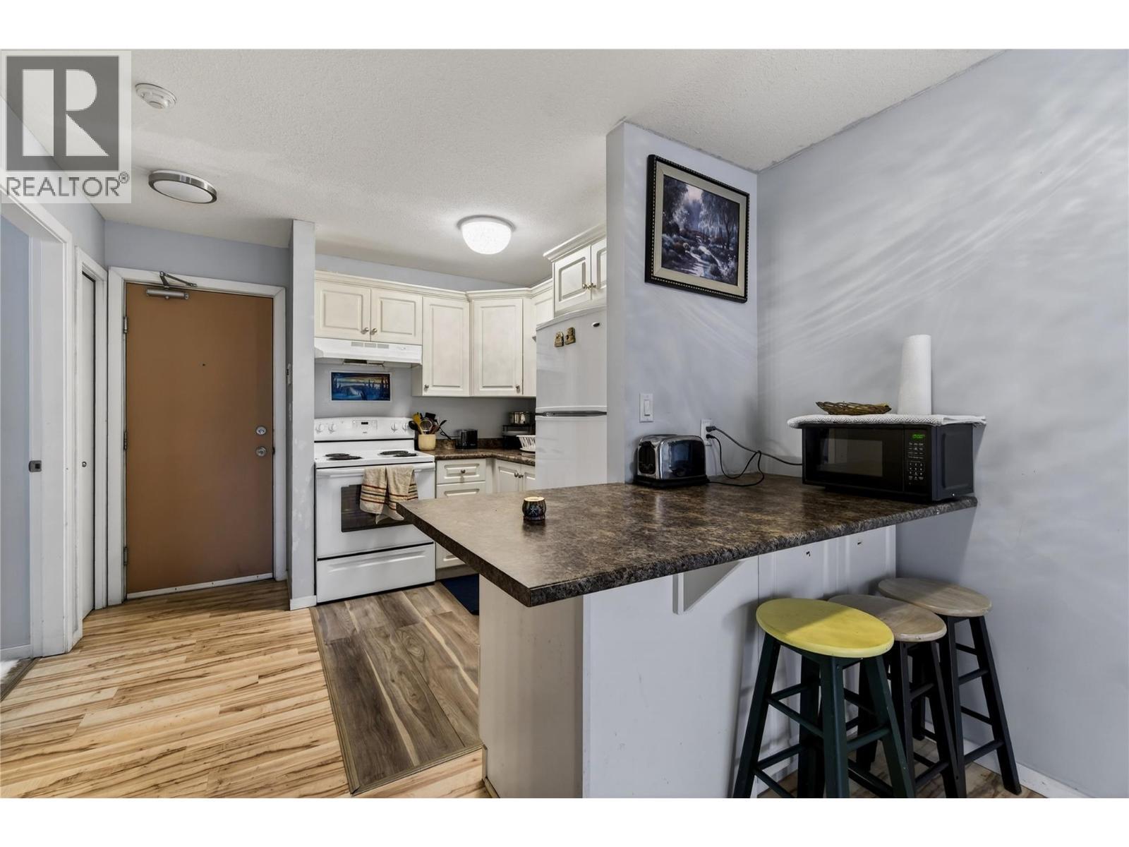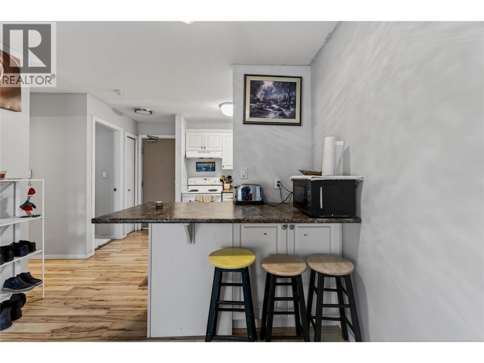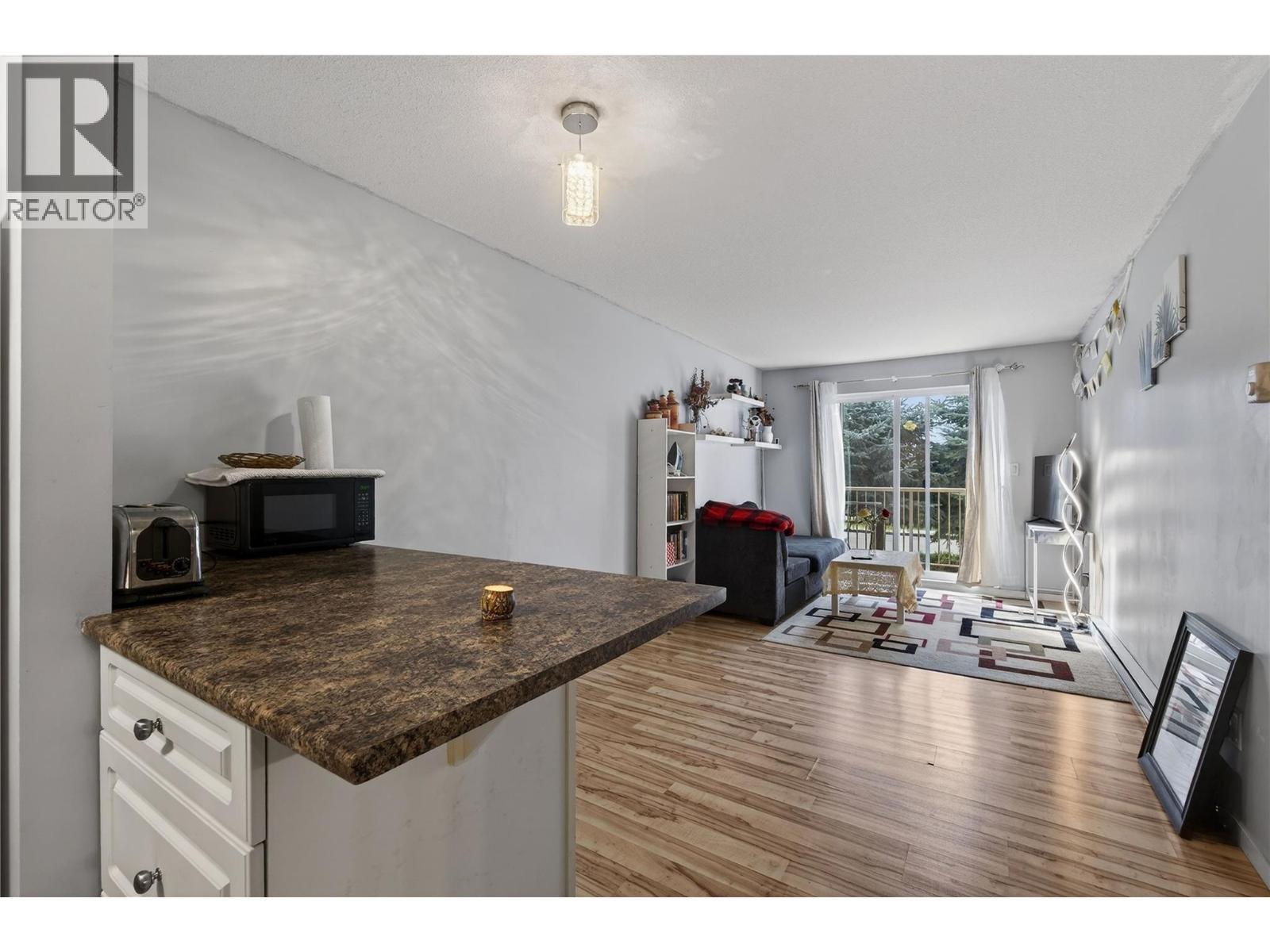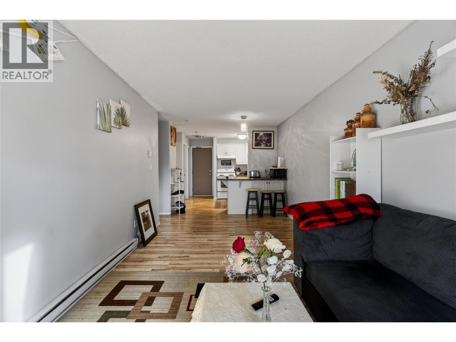 Step into downtown Vernon living with this bright, south-facing second-floor 1-bedroom condo at 3304 – 35th Avenue, where everything you need is just a short walk away. The open-concept unit features updated flooring, a private balcony, a bedroom with a wall-mounted A/C unit, practical storage, and a recently updated hot water tank, making it ideal for first-time buyers, downsizers, or investors. The complex has upgraded the elevator and plans to refresh the hallways with new carpet and paint. Enjoy easy access to the Vernon Recreation Centre, Community Arts Centre, parks, and trails, all within walking distance. One cat is allowed, no dogs. With a mortgage that could be cheaper than rent, where can you find that these days?! Affordable, convenient, and ready for your personal touch, this condo is a rare opportunity to live or invest in one of Vernon’s most central and walkable locations. (id:6769)