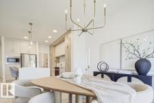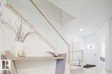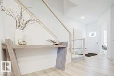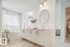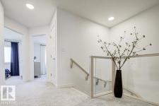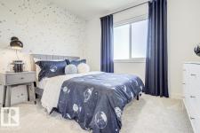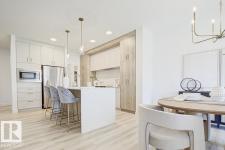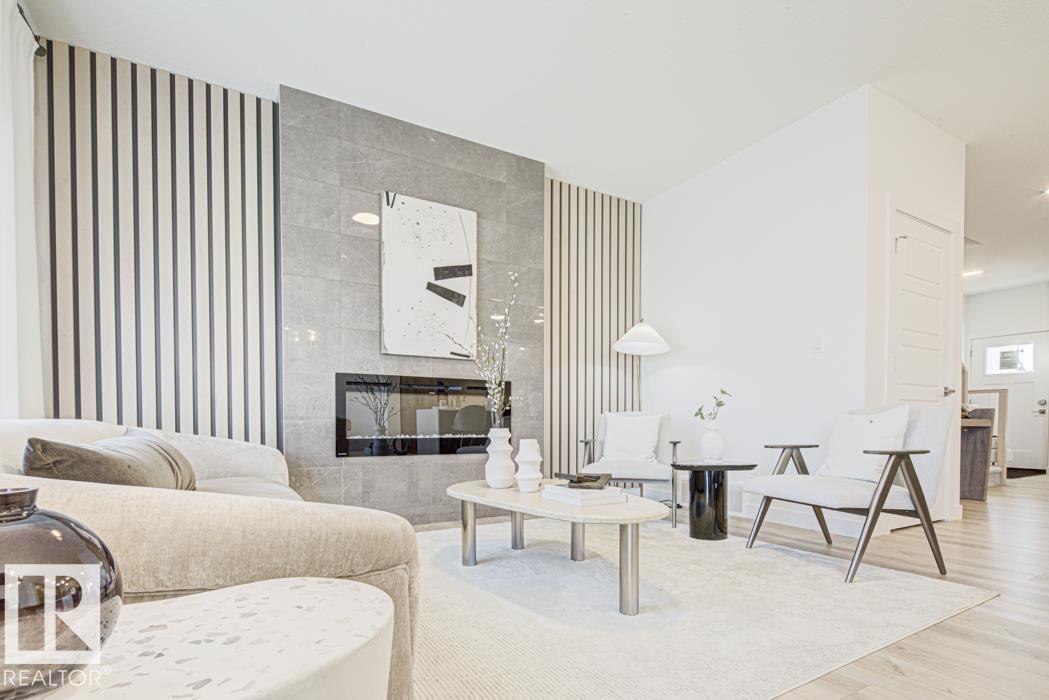 Built by Sterling Homes, this front-attached home in Forest Ridge offers bright, modern living in a quiet, family-focused Fort Saskatchewan community. Triple pane windows and 9’ ceilings enhance the airy main floor, where a welcoming foyer leads past a convenient half bath to a stylish kitchen featuring quartz countertops, a large island, ceiling-height cabinetry, full-height tile backsplash, chimney hood fan, built-in microwave, and a walk-through pantry connecting to the mudroom. The great room showcases an electric fireplace and large windows, while patio doors off the dining nook open to the backyard. Upstairs includes a spacious primary suite with walk-in closet and 4-piece ensuite with double sinks, plus a bonus room, upper laundry with sink, full bath, and two bedrooms. Luxury vinyl plank flooring, upgraded railings, side entrance, garage floor drain, and basement rough-ins complete this well-appointed home. (id:6769)