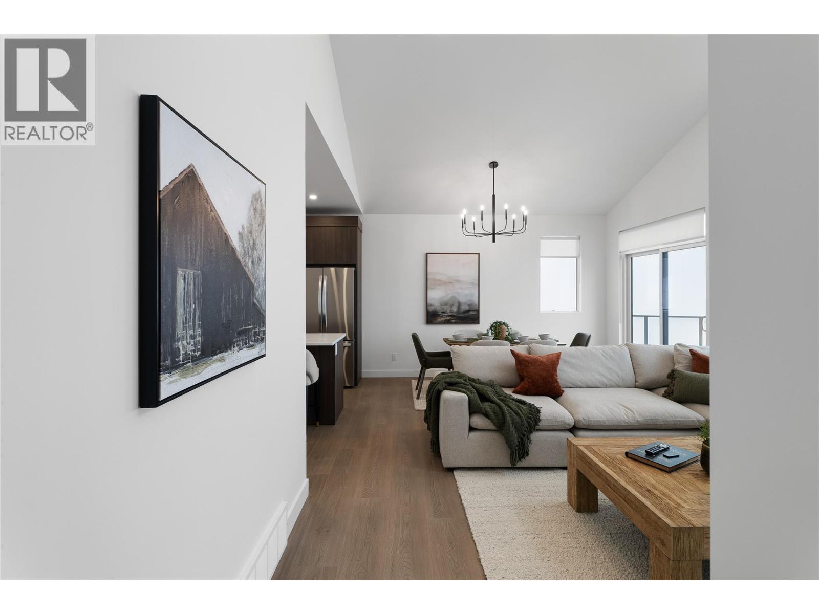 Welcome to Phase 3 at The Landing in Juniper West, a sought-after neighbourhood surrounded by parkland, scenic trails, and beautiful views of the river and mountains. This basement-entry duplex offers a quiet and peaceful setting with a functional layout. The main entry level features a den, a family/living room, one bedroom, and a full bathroom, providing flexible space for guests, a home office, or additional living area. Upstairs you’ll find bright open-concept living with vaulted ceilings, a spacious kitchen with island and Samsung appliances. The dining area has access to the deck, perfect for enjoying the surrounding views. This upper level includes two bedrooms, one of which is the primary suite featuring a walk-in closet and a private ensuite, as well as convenient laundry. The fully fenced backyard backs onto green space, offering privacy and a natural setting. Built to Step Code 4; this home is near net-zero-energy and considered high performance for energy efficiency in new construction. With a dark interior colour scheme, window coverings included, and low bareland strata fees, this home is move-in ready. *Please note, listing photos and video are from Unit 101, previous show suite. (id:6769)