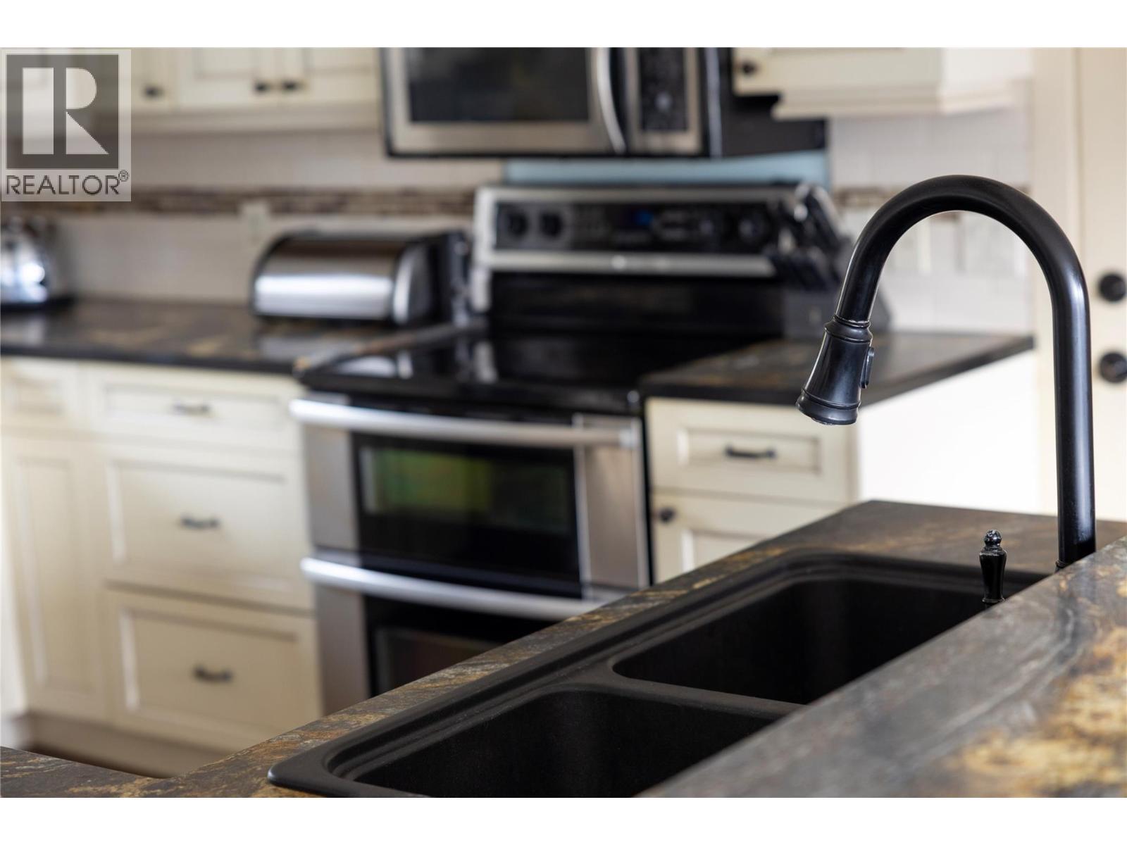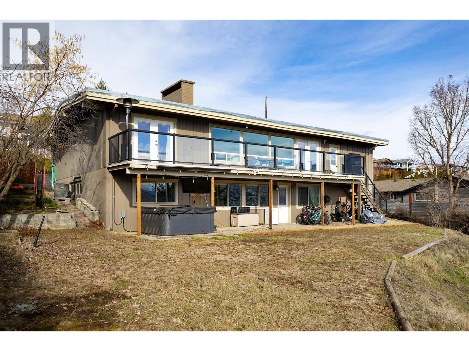 This renovated 5 bed, 3 bath rancher with mid-century lines has one of the nicest Kal Lake views stretching down the Coldstream valley toward the Monashee mountains. The 2,500+ ft2 home's layout with 3 bedrooms up is generous enough for the growing family while still allowing for consideration of a rental or in-law suite downstairs. Bright and open, the view of Kal Lake is front and center whether one is cooking in the kitchen, lounging in the open concept great room or relaxing on the sundeck. The primary bedroom features a 4 piece ensuite and the remaining upper bedrooms share the adjacent main bath. Downstairs offers 2 large entertainment spaces one of which has served as a media room. A full bath, office, 2 bedrooms and a storage room finish out the lower level. Note that the home features recent HVAC updates and an EV charger in the garage. With generous parking out front and access to the lot from Fitzmaurice Lane, there is plenty of room for vehicles and toys alike...and perhaps a pool, still!! This is a home nestled in a highly sought-after Coldstream neighbourhood. Check it out soon!! (id:6769)