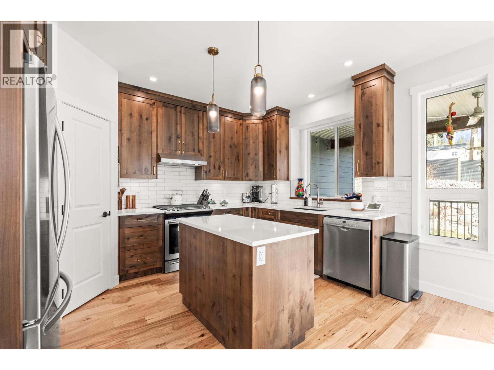 Imagine coming home to space, comfort, and lifestyle in one of Salmon Arm’s most sought-after neighbourhoods. This stunning custom-designed 0.60-acre home sits among elegant estate properties, just minutes from the sparkling waters of Shuswap Lake. Inside, warm Hickory hardwood floors, 9-foot ceilings, and abundant natural light create an open, inviting atmosphere. The kitchen, featuring Alder cabinetry, quartz countertops, and thoughtful design, flows seamlessly into dining and living areas—perfect for entertaining friends, gathering with family, or enjoying a quiet evening. Step outside to the covered upper deck and take in the peaceful surroundings, watch the sunset, or savor your morning coffee. The primary suite is a private retreat with a walk-in closet and luxurious five-piece ensuite, complete with freestanding soaker tub and glass shower. Two additional bedrooms, a full bathroom, and laundry complete the upper level. Downstairs offers flexibility with a fourth bedroom or office with its own bathroom, plus a bright two-bedroom suite with separate laundry and covered patio—ideal for guests, extended family, or rental income. Over $50,000 has been invested in landscaping and fencing, creating a private backyard ready for kids, pets, summer gatherings, or simply relaxing outdoors. With zoning allowing a future carriage home, this property offers not just a home, but a rare opportunity to embrace the lifestyle you’ve been dreaming of—right here in beautiful Salmon Arm. (id:6769)