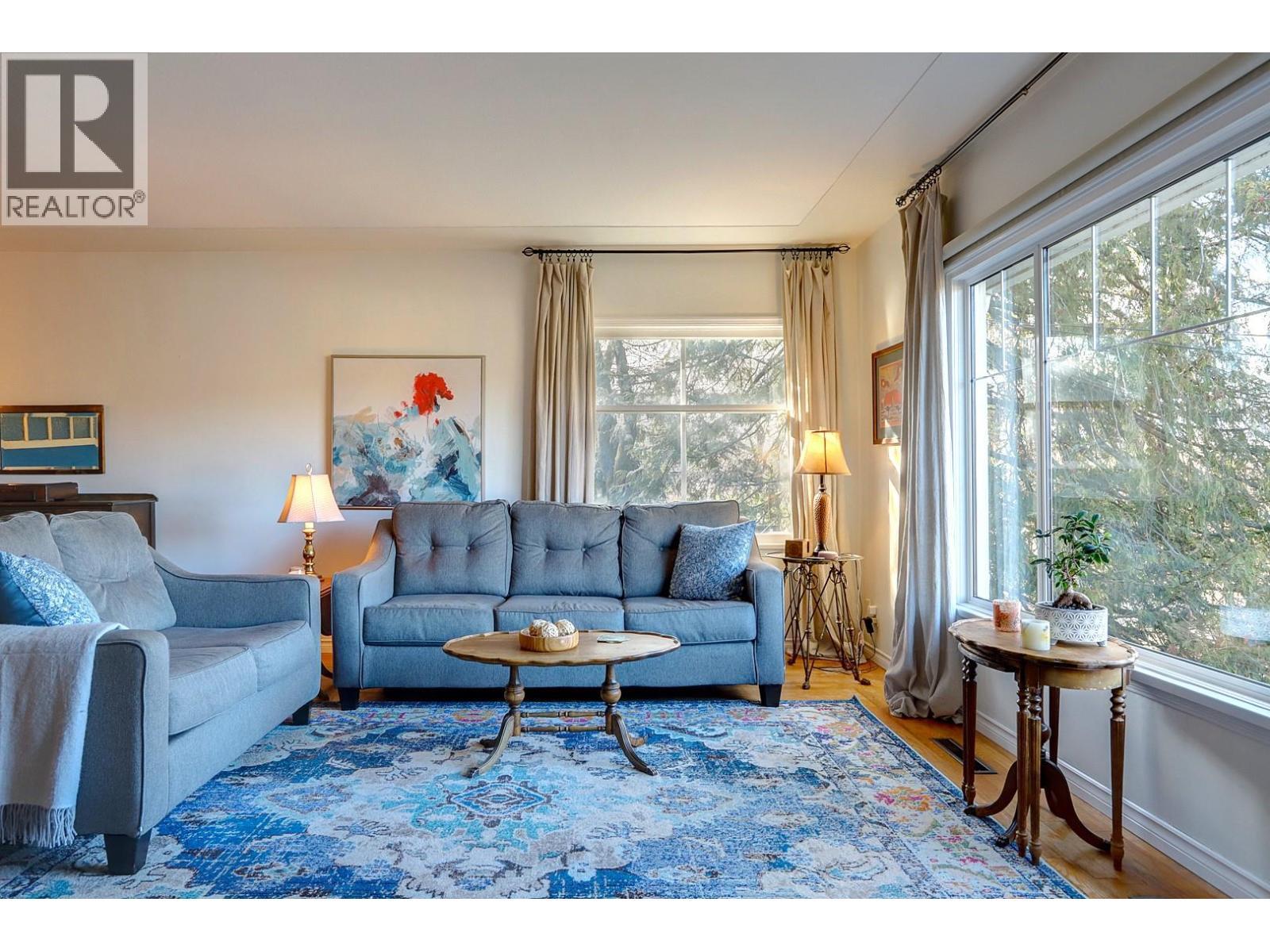 East Hill at it’s finest. A lovely 1950’s era 4-bed, 2-bath rancher with basement perched on the high side of a quiet, tree-lined street with a peek-a-boo view of Okanagan Lake. Maintenance and upgrades done with a mind to preserve its original character, this home offers a piece of historical East Hill living. The living room welcomes you with a cozy wood-burning fireplace & a large window that fills the space with light. The bright kitchen has a full-length window offering picturesque mountain & garden views as well as a breakfast bar, under-cabinet lighting and generous cabinetry. French doors open to a covered patio, making entertaining effortless. Main level features the primary bedroom along with 2 additional beds & a full bath. Downstairs, the finished basement offers great flexibility with a large recreation room, cozy wood fireplace, built-in cabinetry, mudroom area, laundry room, additional bedroom, & full bath. The outside areas offer a beautifully landscaped yard offering mature landscaping and a hot tub. The custom lattice & sliding gate creating privacy between the driveway & patio. Ample room for a carriage house or detached shop on this generous .27-acre lot. Lane access leads to an attached garage, a garden shed, & additional parking for an RV or boat. With schools & Lakeview Park nearby, & so much potential for your future plans, this home offers that sought-after East Hill charm with the versatility to explore any future plans. (id:6769)