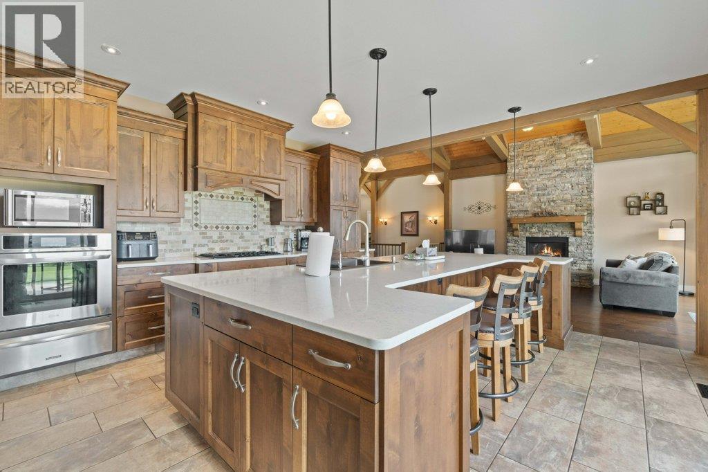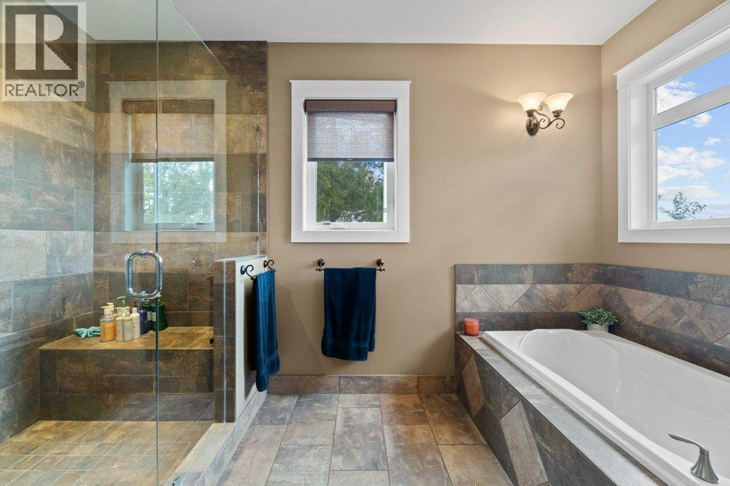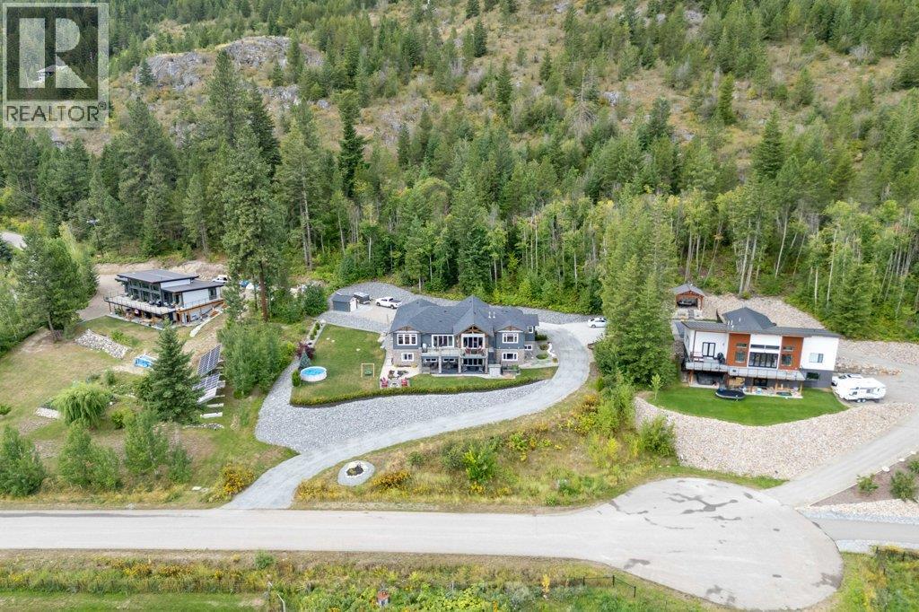 IMPRESSIVE CITY, MOUNTAIN & LAKE VIEW CUSTOM HOME on just over 5 acres minutes to downtown Salmon Arm in an area of fine homes. If you like attention to detail & quality construction, you'll love this one. Offering over 4000 sq ft of living space including 4 bedrooms, 3 bathrooms, office and main living areas, this property has something for everyone. As you walk through the front doors into the spacious entry, you'll notice the character of the stone fireplace & wood beam accents, along with the views through the large vaulted living room windows. Continue further and the large kitchen island will cause you to stop in your tracks and take in the incredible amount of counter space and abundance of cabinets making it a chef's dream. Quartz counter tops & knotty alder cabinetry create a warm & inviting feel perfect for entertaining. A large separate dining room is surrounded by windows for the best views. You also have access to the large east facing deck where you can enjoy your morning coffee. The primary bedroom is spacious and features a walk-in closet, ensuite with soaker tub, double vanity and large walk-in shower. In the basement you'll find more bedrooms, a games/family room area, hobby or wine room and walkout to the lower covered patio. Lots of storage with a 3 car garage and outside shed. Too many extras to mention including surge protection in the electrical panel, 2 zone heating system with HRV, and so much more. Call for details and book your showing today. (id:6769)