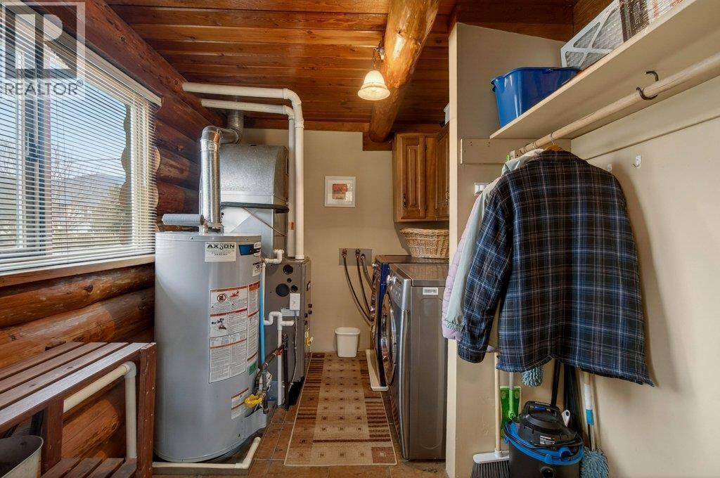 BEAUTIFUL LOG HOME ON A LARGE FENCED LOT. This home has been incredibly well maintained and shows very well. The warm and cosy feel of this home is like being on vacation every day. Offering 3 bedrooms & 2 bathrooms, an open eat-in kitchen with island and stainless steel appliances, and a large living room with a floor to ceiling brick fireplace. The vaulted ceiling makes it feel spacious and open. The .36 acre yard is level and fully fenced with a storage shed, a wonderful garden area, back deck where you can enjoy the views of Mount Ida and Fly Hills and a newer drive through shop/garage. Hi-efficiency furnace with A/C. Walking distance to Piccadilly Mall, walking paths & parks and the Salmon Arm Fair Grounds (Roots & Blues). Room to park your RV. (id:6769)