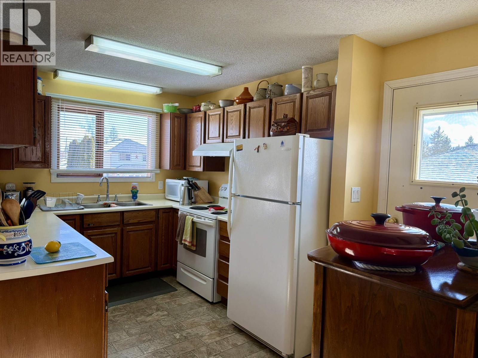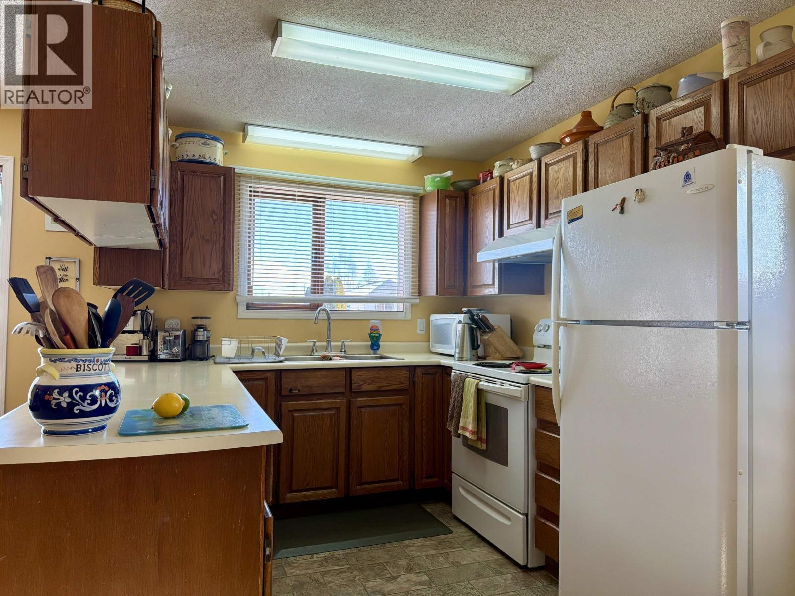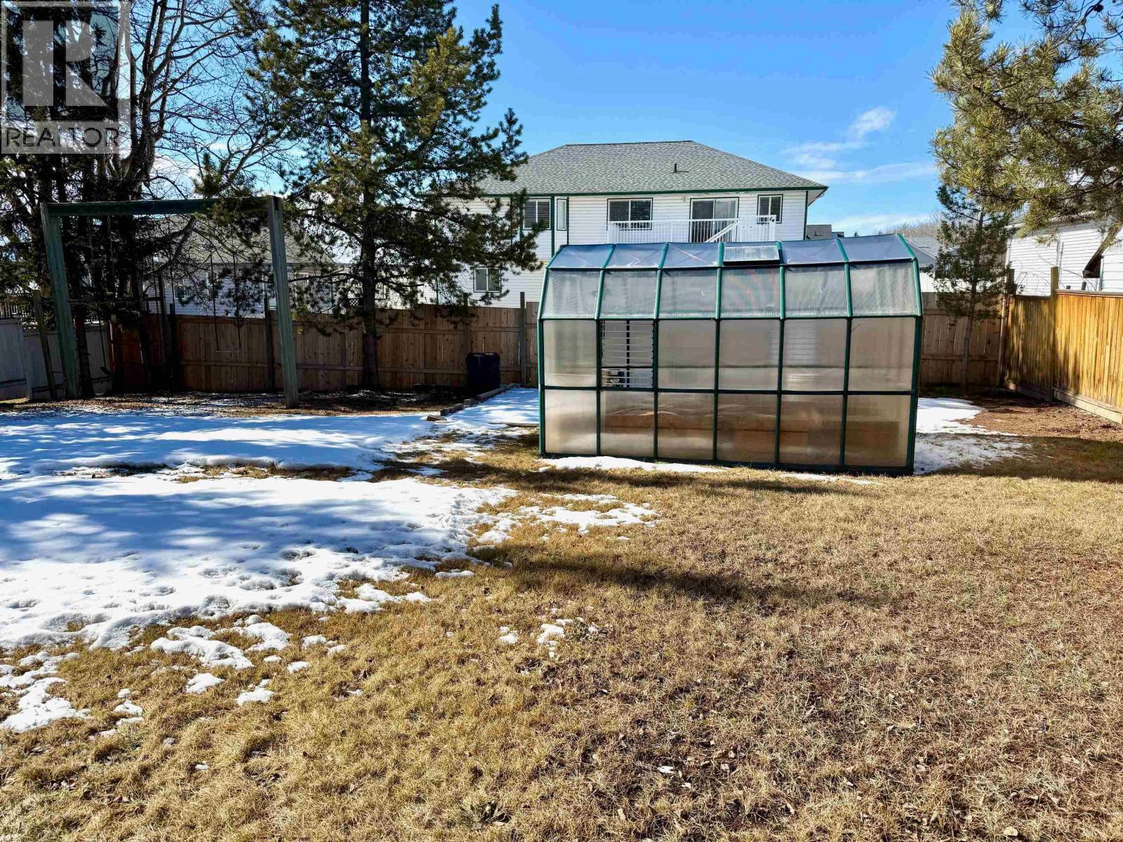Warm family home in great location! Well-cared-for 4 bedroom home in a friendly, desirable neighbourhood close to the clinic, hospital, and neighbourhood park. Excellent layout with a bright open floor plan with plenty of natural light. The basement features a spacious rec room, roughed-in plumbing for a second bathroom, and potential for 2 additional bedrooms. Enjoy the fenced backyard with a swing set and monkey bars, garden area, greenhouse, and mature evergreen trees offering extra privacy. Relax on the sunny 14' x 22' sundeck with durable vinyl covering above the carport—ideal for entertaining. 200A service, new high-efficiency gas furnace (2023), and fiber optic internet available. A great family home with plenty of parking, established landscaping, and room to grow! (id:6769)