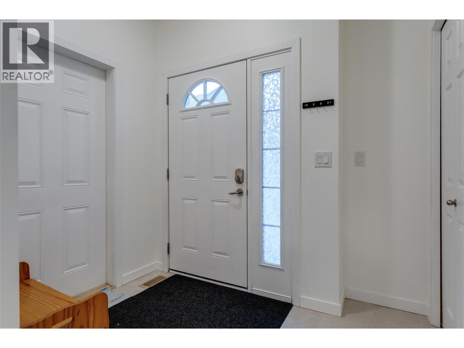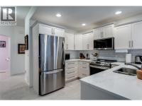 Beautifully updated 3-bedroom, 3-bath townhouse in Summerwind Estates in Okanagan Landing. Freshly painted and move-in ready, this home features a bright open floor plan and numerous recent upgrades. The updated kitchen is the standout feature, offering custom-made cabinet doors with soft-close hardware, stone countertops, a new sink, and newer appliances with induction stove, creating a stylish and functional space for everyday living. The main living area flows seamlessly from the kitchen into the dining and living spaces, with large windows bringing in natural light and a sliding glass door leading to a private hedged patio and grassy yard area—ideal for relaxing or summer BBQs. Additional improvements include tile flooring in the kitchen, foyer and bathrooms, adding durability and a modern touch. Upstairs, the spacious primary bedroom features vaulted ceilings, a walk-in closet and full ensuite. Two additional bedrooms and another full bathroom complete the upper level. The entry level offers a welcoming foyer and direct access to the attached double garage with additional parking available. Located in a well-maintained strata community with a playground directly across the lane, and close to schools, parks, recreation and shopping. (id:6769)