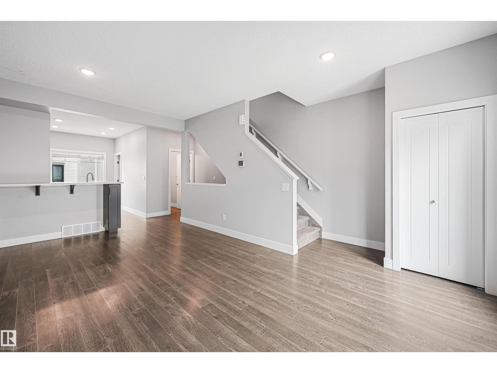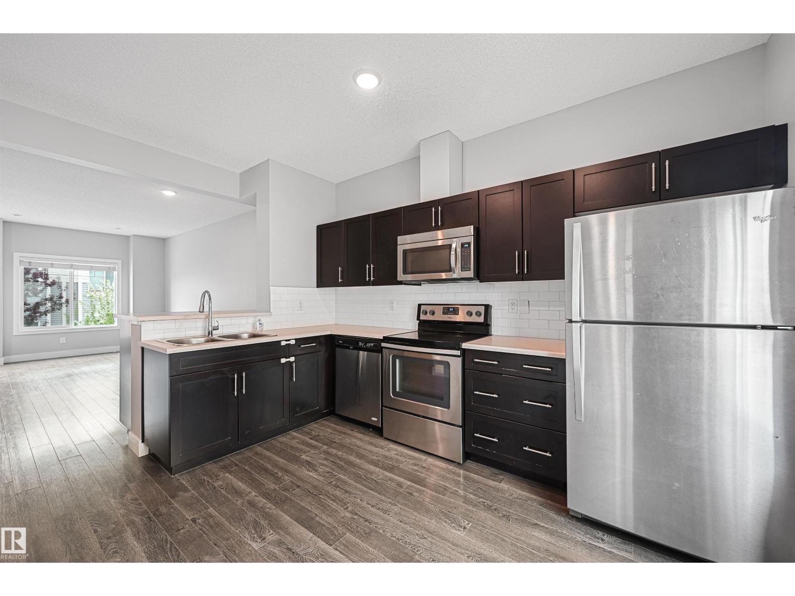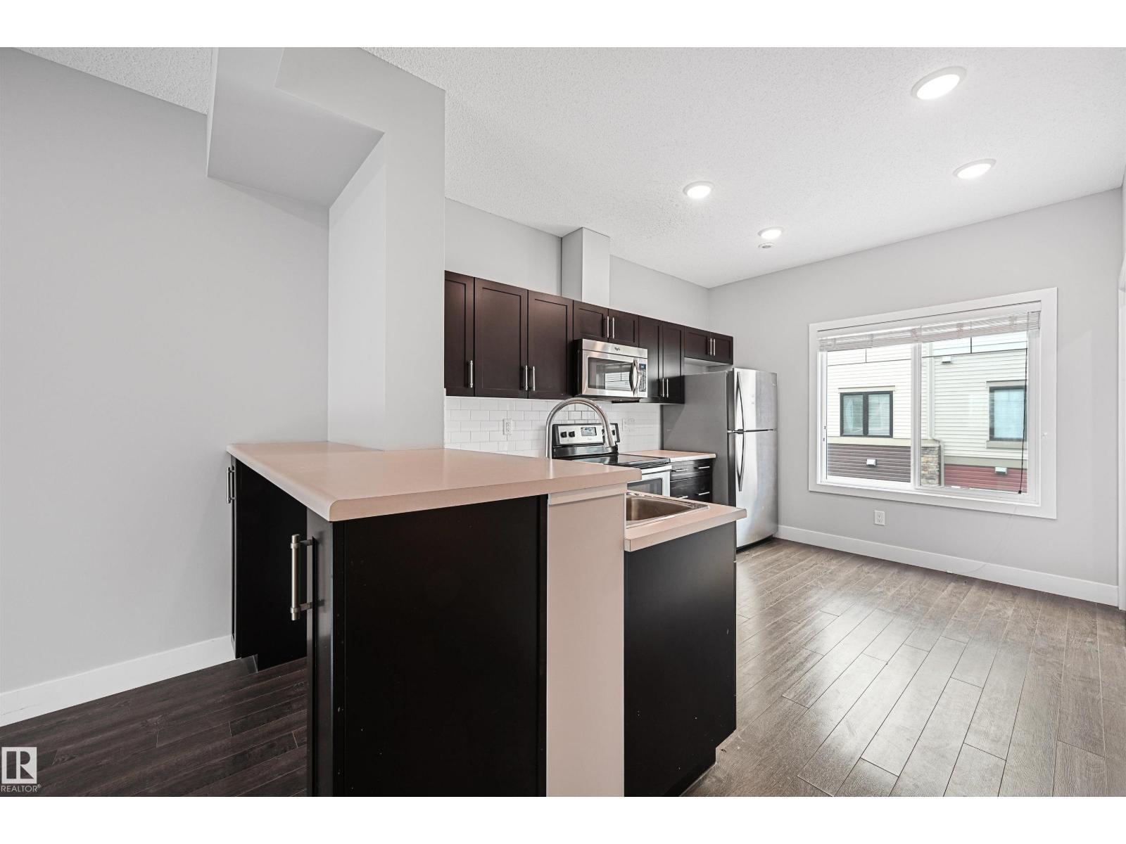 Well maintained and spacious 2 bedroom/2.5 bath townhome in desirable Walker. Main floor boasts 9' ceilings & quality finishings. The gorgeous kitchen has SS appliances, walk-in pantry & eating bar. Living room features an attached balcony to enjoy the fresh air & green space. The main level is equipped with a 2.5 bath & vinyl flooring. Upper level boasts 2 well-sized bedrooms. Primary bedroom has 3pc ensuite & walk in closet. Plus 2nd 4pc bathroom upstairs & laundry. Other features include a single attached garage, a flex room for office or play room, plenty of storage, energy-efficient mechanical including tankless hot water for a lower utility bill. This well maintained complex offers visitor parking & is conveniently located close to shopping, walking trails & lake. Quick proximity to Anthony Henday, South Common, schools & public transportation. A must see! (id:6769)