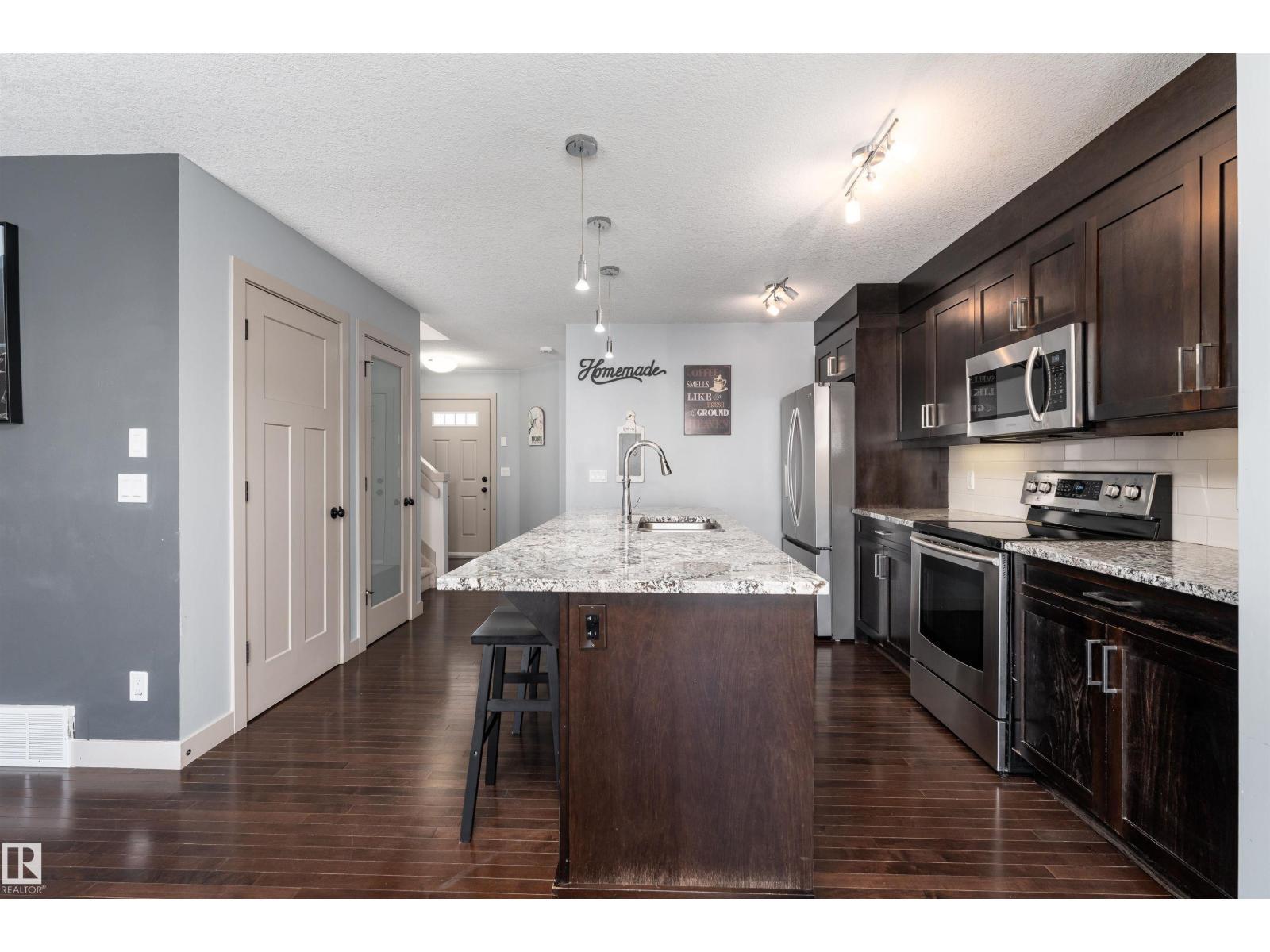 Beautifully upgraded half duplex on a fully landscaped and fenced lot, available for immediate possession! The main floor offers a bright open-concept layout featuring a stylish kitchen with abundant upgraded cabinetry, gorgeous granite countertops, a generous island with sink and dishwasher, and upgraded stainless steel Samsung appliances. The inviting living room showcases a cozy gas fireplace and rich hardwood flooring, while the dining area features upgraded lighting and patio doors leading to the fully fenced and landscaped backyard with a convenient gas line for the deck. A 2-piece powder room completes the main level. Upstairs you’ll find a spacious primary suite with a walk-in closet with organizers and a 4-piece ensuite, along with two additional bedrooms, a 4-piece main bath, and convenient upper-floor laundry with storage and counter space. The basement is finished including a rec room, a 2-piece bath, and a versatile flex room. This property is a must see! (id:6769)