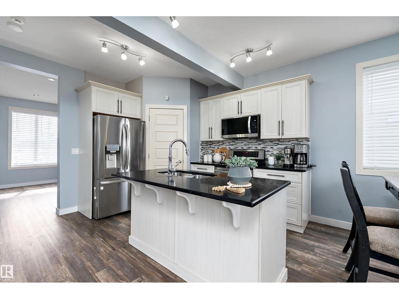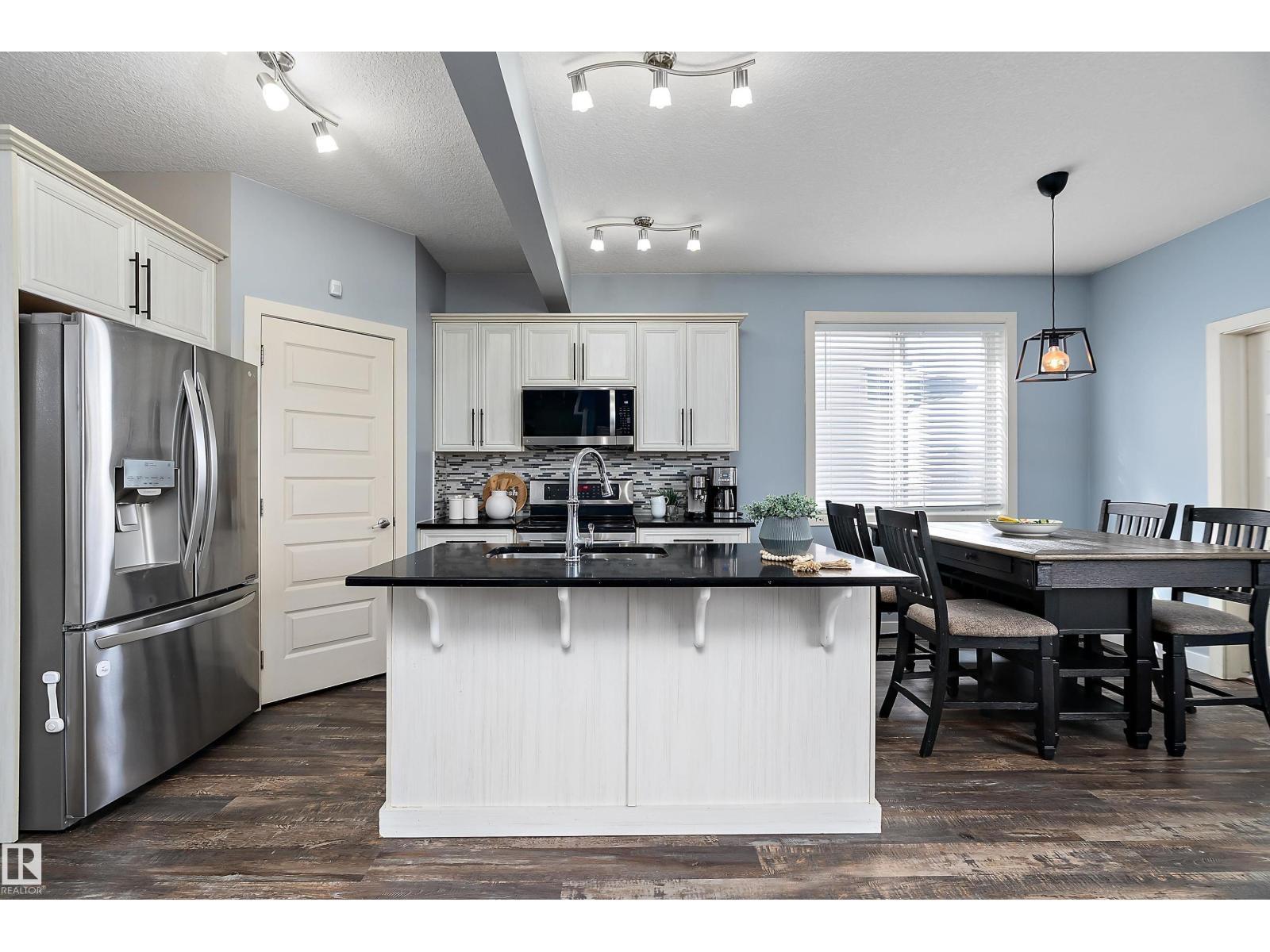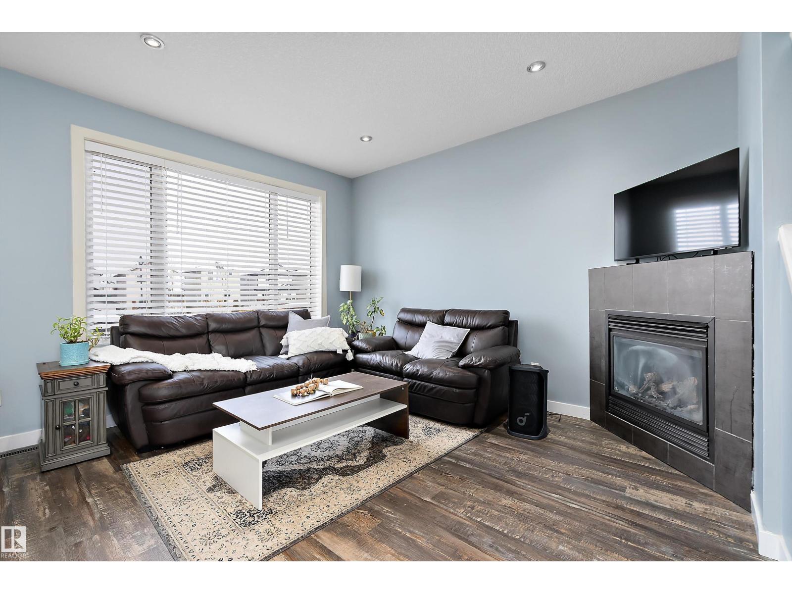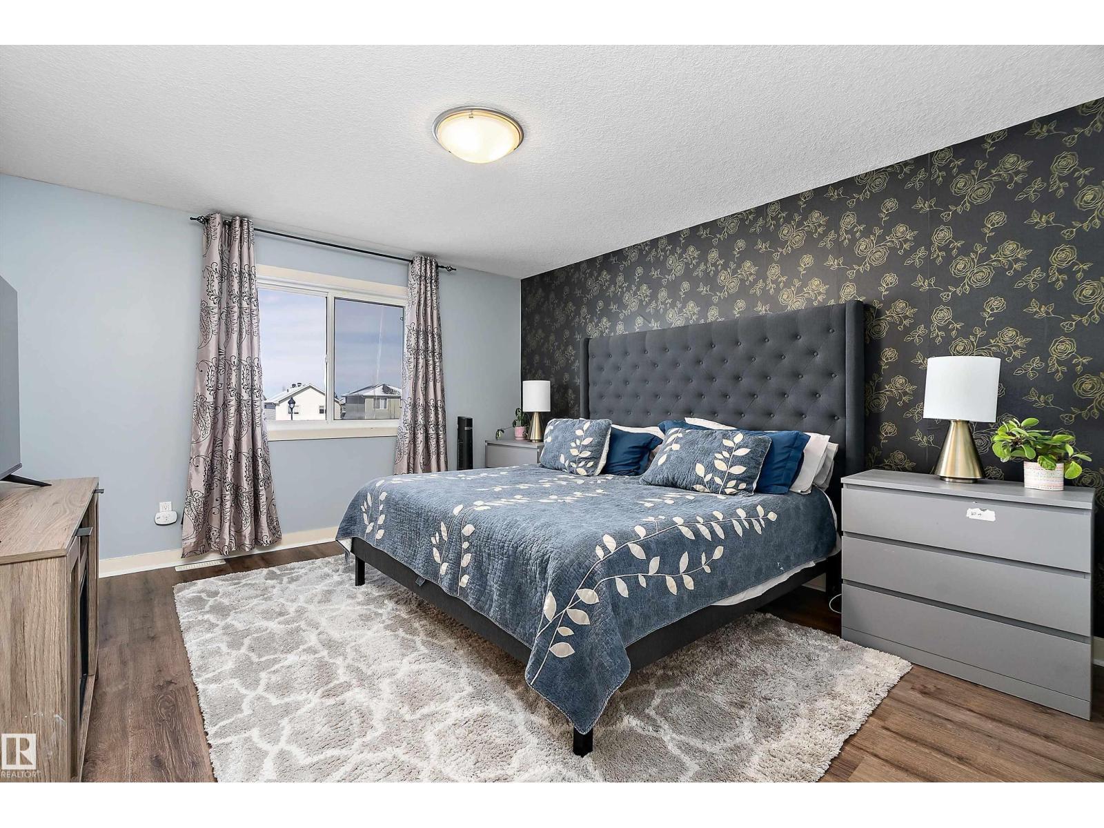 Fully finished 5 bedroom, 3.5 bath home across from greenspace. Bright & spacious home that offers everything a growing family could need. The main floor features 9 ft ceilings, & a welcoming entry that opens to a versatile flex room. The kitchen is well designed w/ quartz countertops, a large island, corner pantry, & overlooks the living room with a cozy gas fireplace. A generous dining nook provides plenty of space for family meals or entertaining. The main floor is completed w/ separate laundry room with door for added privacy. Upstairs you will find 3 large bedrooms including the primary suite w/a full ensuite & spacious closet. 2 additional bedrooms & another full bathroom complete the upper level. The fully finished basement offers 2 more large bedrooms, a flex room, & additional bathroom. Top it all off with A/C! Outside you will find a large backyard, double detached heated garage.Close to shopping, schools, playgrounds, and walking paths w/ easy access to all the amenities Leduc has to offer. (id:6769)