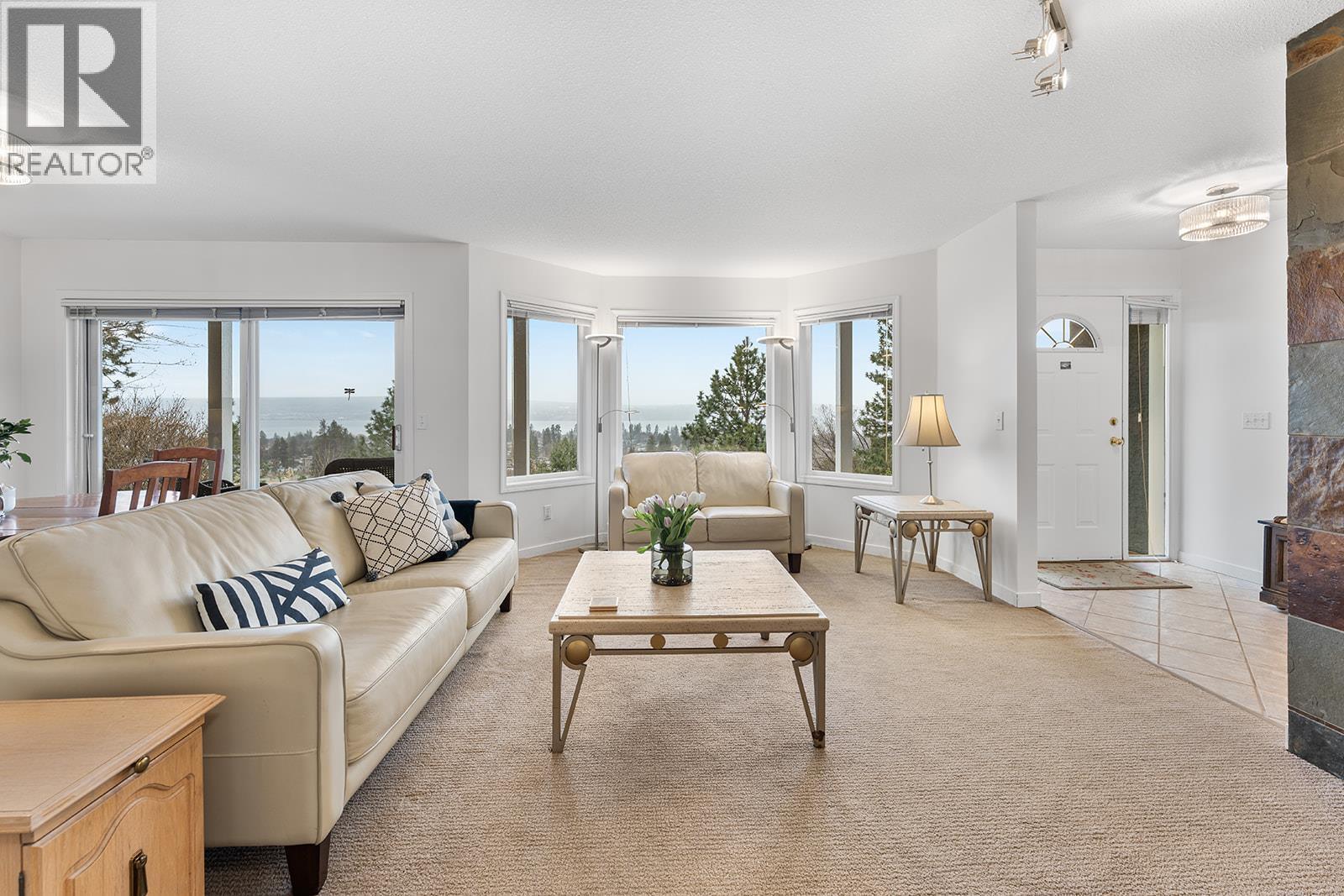 Panoramic Okanagan Lake views highlight this spacious 4-bedroom Lower Mission home on a private lane, set on a rare 0.35 acre lot on Westpoint Drive. This well-maintained two-storey home offers approx. 2,400 sq.ft. with four spacious bedrooms upstairs, each enjoying lake views - a rare feature capturing the Okanagan lifestyle. The primary suite features a private balcony overlooking the lake, large walk-in closet, ensuite, and a unique 8.5’ x 10’ office or nursery with full window - ideal for a home office, dressing room, or nursery. The main level includes a versatile flex room perfect for an office, den, or playroom. Set on a generous 0.35 acre lot, the fully fenced backyard offers space for outdoor living, gardening, or a future pool. Mature apricot and peach trees add charm to the yard. Recent updates include fresh interior paint, new lighting fixtures, and a roof approx. 5 years old. With strong bones, a functional layout, and breathtaking lake views, this home offers an excellent opportunity to update the kitchen and bathrooms and create a spectacular Lower Mission residence. Located minutes from top schools, beaches, parks, wineries, and amenities, this is a rare chance to secure a view property in one of Kelowna’s most desirable neighbourhoods. (id:6769)