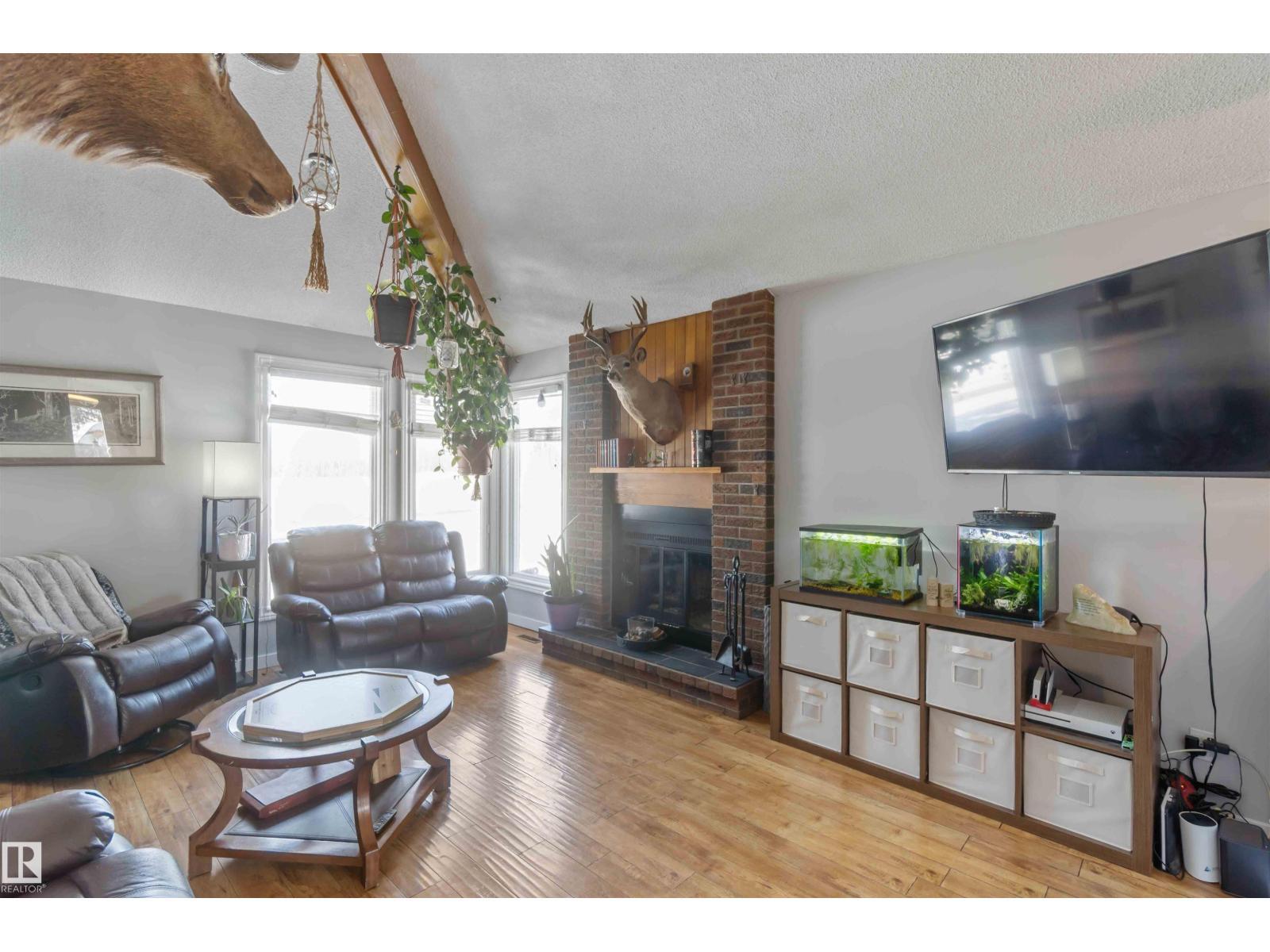 This affordable home is a standout opportunity, featuring a unique corner location with an oversized double detached (220V) garage with RV parking. Significant upgrades provide, including a new furnace (2025), roof (2021), and windows (2019). The interior feels bright and spacious thanks to open-beam vaulted ceilings in the living room, which is anchored by a cozy brick wood-burning fireplace. The functional layout includes a kitchen with a decent size eating area, four total bedrooms across two levels, and two full bathrooms. For extra versatility, the finished fourth level serves as a family or games room, offering massive crawlspace storage to keep everything organized. This property offers a fully landscaped backyard and quick access and walking distance to several parks in town and schools. With its great price and convenient location, it is an ideal choice for anyone seeking a short commute to the nearby military base. Some picture are virtually stages (id:6769)