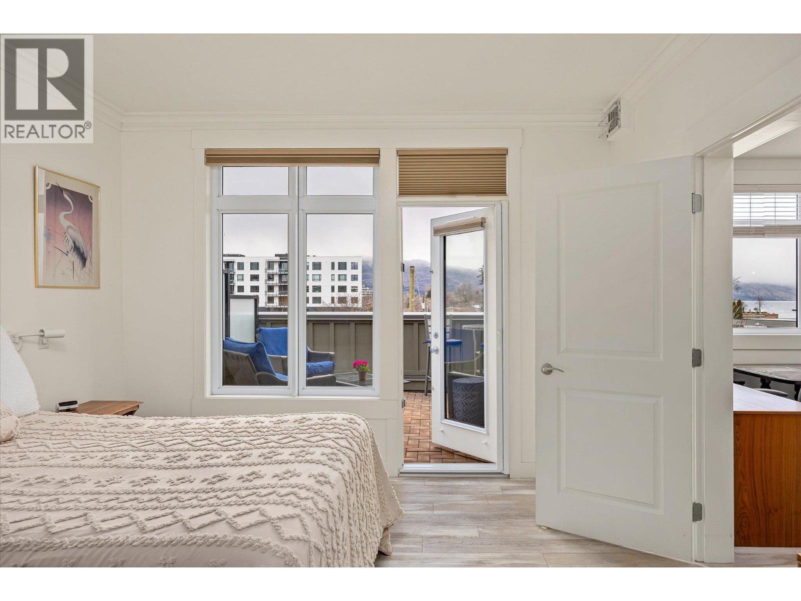 South-Facing Condo at The Abbott House with Partial Lake Views! Located in the highly desirable Abbott Street corridor, this beautifully maintained condo offers exceptional walkability to nearby beaches, the Lake, boutique shops, professional services and restaurants. This bright and spacious 2-bedroom + den, 2-bathroom residence is enhanced by abundant natural light with partial lake and mountain views. The open-concept kitchen, dining/living area features updated stainless- steel appliances (dishwasher, stove, above range microwave), a kitchen island with additional under-storage, a walk-in pantry and a cozy fireplace plus recent custom built-in cabinetry. Additional highlights include wide-plank laminate flooring and new custom window coverings throughout. The open den provides flexible space, perfect for a home office, a creative space or study area. The split-bedroom floor plan offers comfort and privacy, with both primary bedrooms featuring attached ensuites and located on opposite sides of the home—ideal for guests or family. Enjoy outdoor living with two large private patios—one accessed from a primary bedroom and the other from the living and dining area. An additional feature includes one secured underground parking stall, conveniently located near a designated storage room. Welcome to #304 at the Abbott House-where comfort, style and an unbeatable location come together. (id:6769)