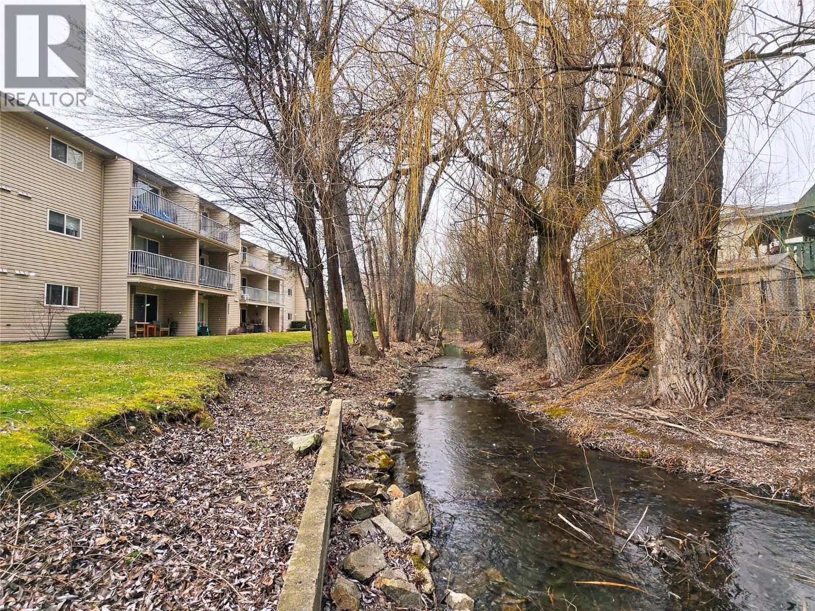 Spacious and bright ground-level 2-bedroom, 2-bathroom condo located in a family-oriented neighbourhood just minutes from Kal Beach! This well-maintained unit offers a functional and comfortable layout, featuring a large living room that opens onto a private deck overlooking Coldstream Creek, creating a peaceful setting to relax and enjoy the natural surroundings. The main bedroom includes a walk-in closet and a private ensuite, while the second bedroom and full bathroom provide flexibility for guests, family, or a home office. The home also features the convenience of in-suite laundry and an oversized bathtub. Perfectly situated for an active Okanagan lifestyle, the condo is just a 10-minute walk to the beach at Kalamalka Lake and only a 6-minute drive to shopping and amenities at Polson Place Mall. It's literally steps away from the Alpine Center, which has a pizzeria, salon, massage, and a fitness gym. The property is also located on a public bike route and transit route, making it easy to get around the city. Whether you’re a first-time buyer, downsizer, or investor, this home offers comfort, convenience, and an unbeatable location close to one of the Okanagan’s most beautiful lakes. (id:6769)