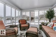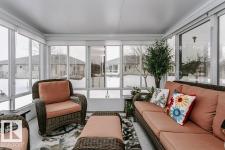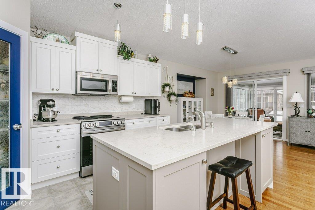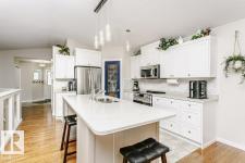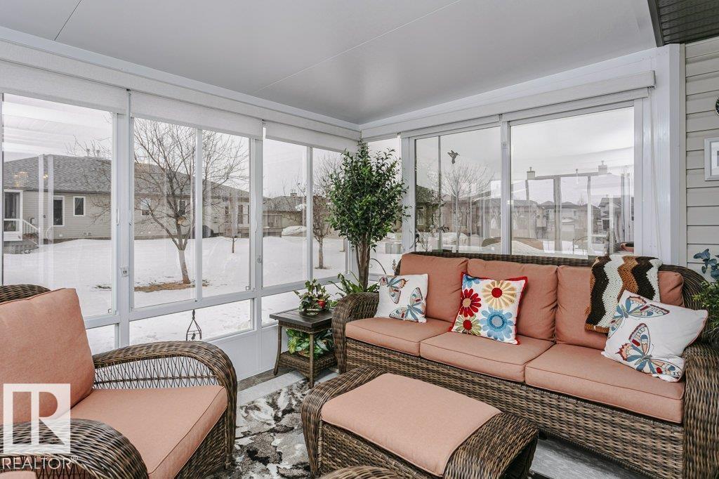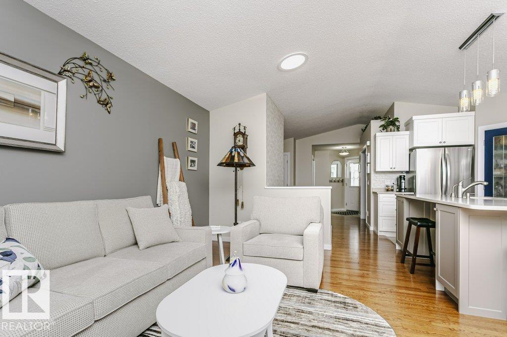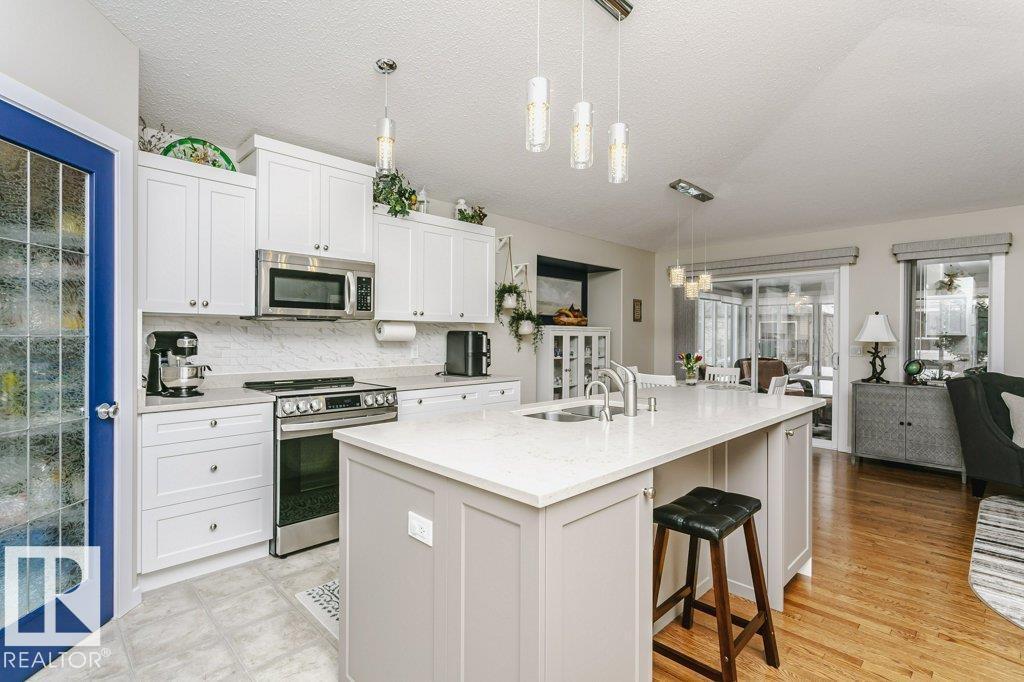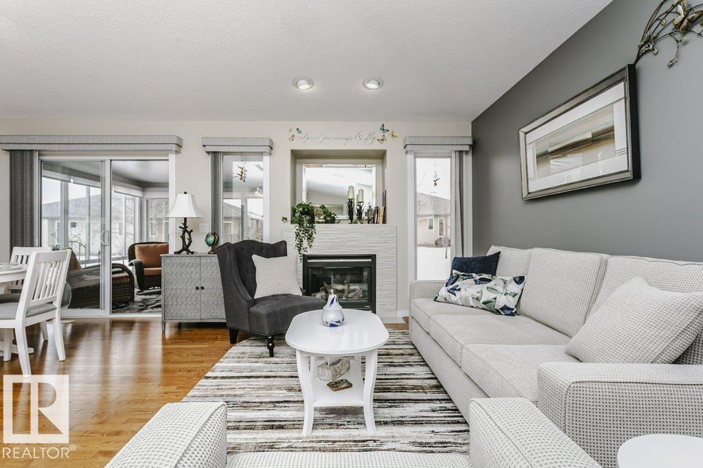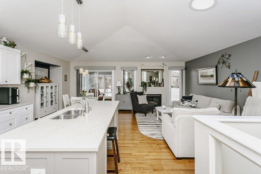 Welcome to this beautifully updated bungalow in a desirable adult living community, offering comfort, style, and convenience. This home features a spacious 20x24 attached garage and an extra-long driveway for ample parking. Inside, you’ll find an open-concept layout with a brand NEW kitchen, complete with an island and instant hot water tap—perfect for tea lovers. The inviting new sunroom adds bright, relaxing living space. The main floor boasts a large primary bedroom with a walk-in closet, additional wardrobe storage, and a private ensuite, along with a second 4-piece bathroom and a versatile front den. Enjoy the ease of main floor laundry and a beautifully updated fireplace with thermostat control. The fully finished basement offers high ceilings, two LARGE bedrooms, a 3-piece bathroom, generous storage, flex space, and a spacious family room. Additional upgrades include newer furnace, A/C, water softener, and UV-protective window film. A perfect blend of comfort and modern updates. (id:6769)