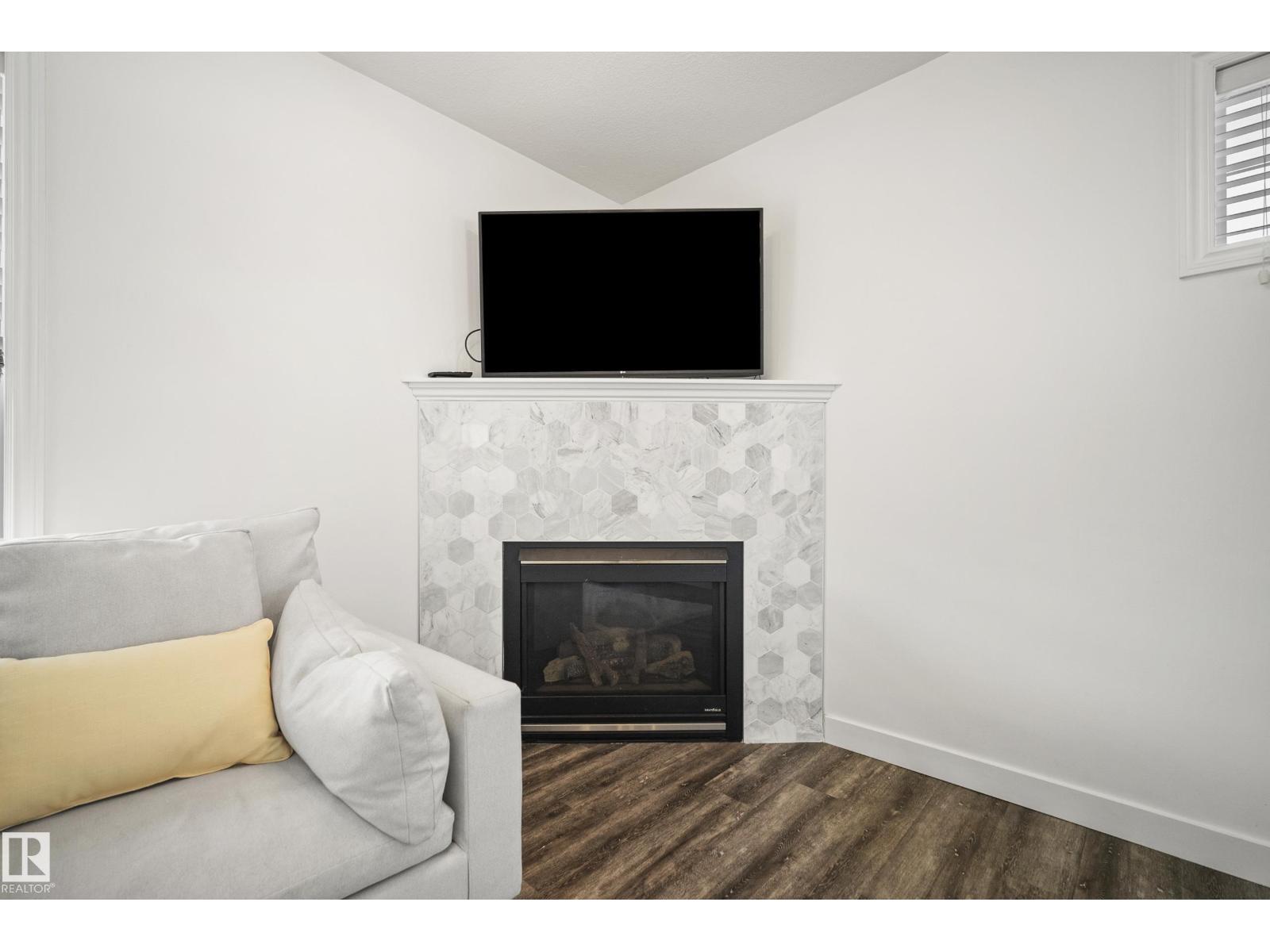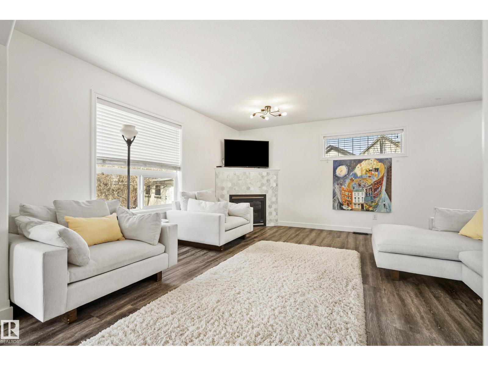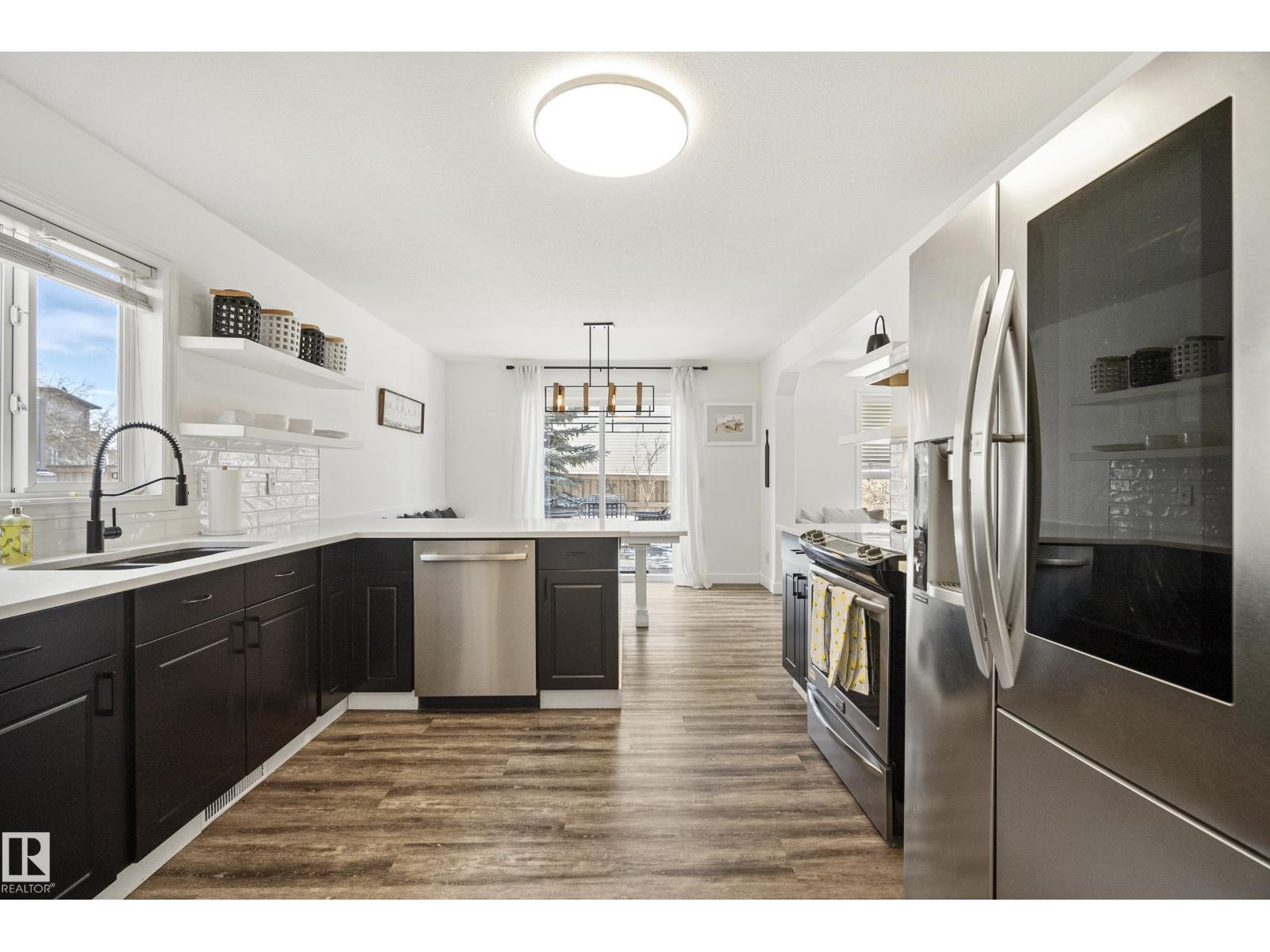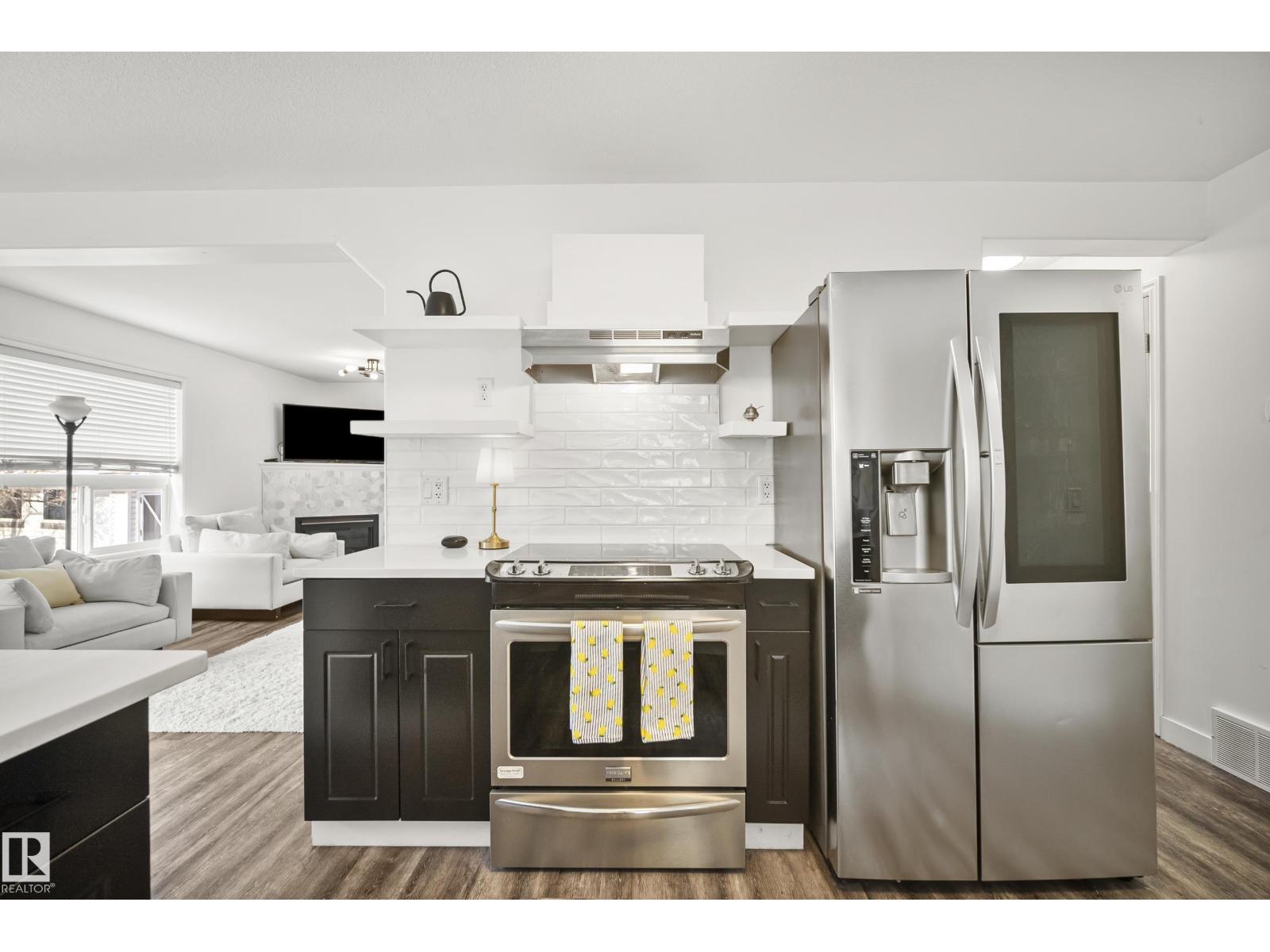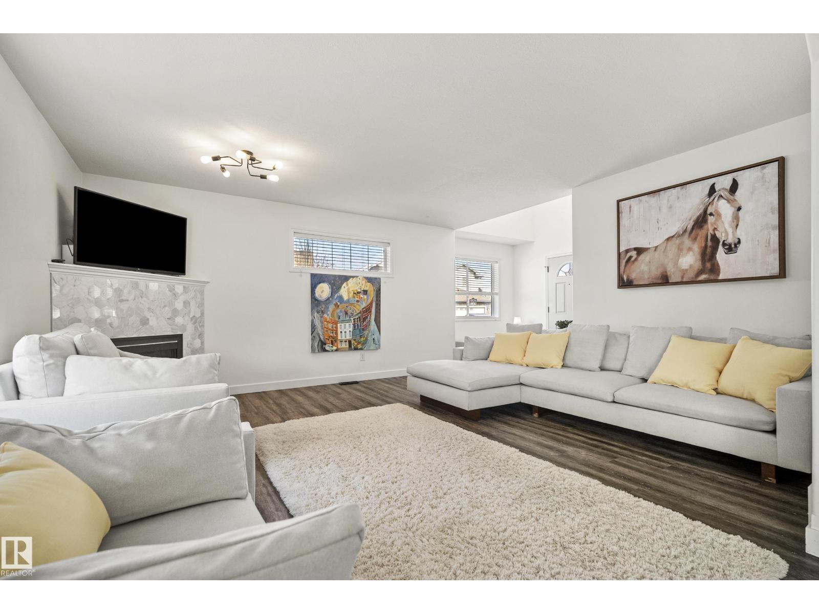 Beautifully renovated, fully finished 2 storey home on a large corner lot in the heart of South Terwillegar! Welcomed by an impressive grand foyer w/ 17' ceiling flowing into the bright & modern main floor flooded w/ natural light from the SW facing yard. The updated kitchen features white quartz countertops, white artisan tile backsplash & premium s/s appliances w/ an induction stove & french door fridge. LVP flooring & modern light fixtures throughout the main floor giving a clean, contemporary feel. Warm & inviting living room w/ gas fireplace & stunning marble tile surround. A convenient 2 pc powder room & laundry complete the main level. Upstairs offers a spacious bonus room w/ vaulted ceilings, the primary retreat w/ 4 pc ensuite & w/i closet, plus 2 additional bedrooms & a 4 pc bath. The fully finished basement features a large rec room w/ recessed lighting, plush carpet & barn door leading to the 4th bedroom. Enjoy A/C & the sunny SW yard w/ deck, exposed aggregate patio, u/g sprinklers & Shed (id:6769)