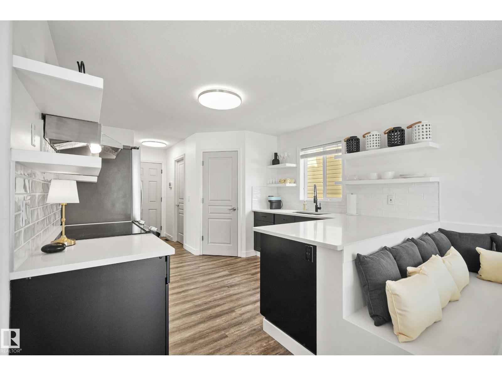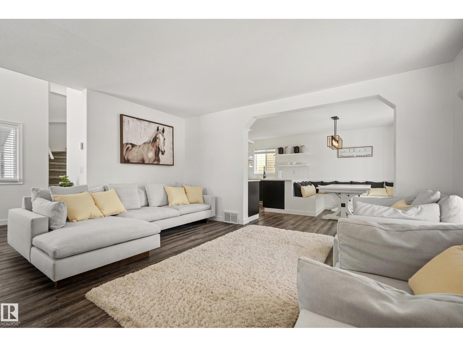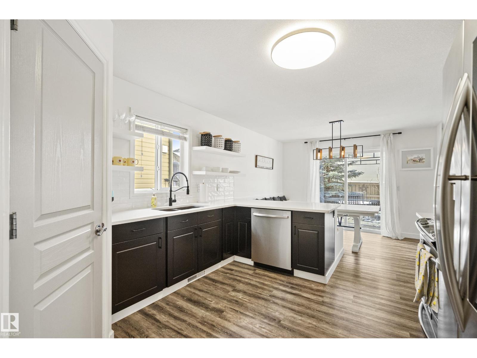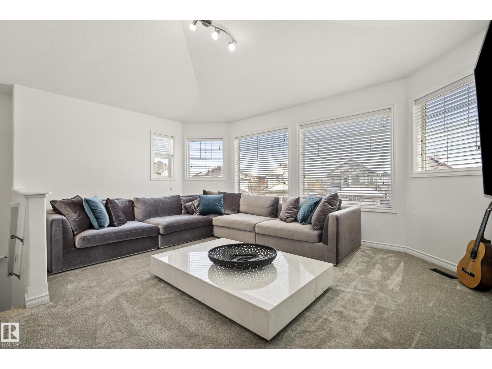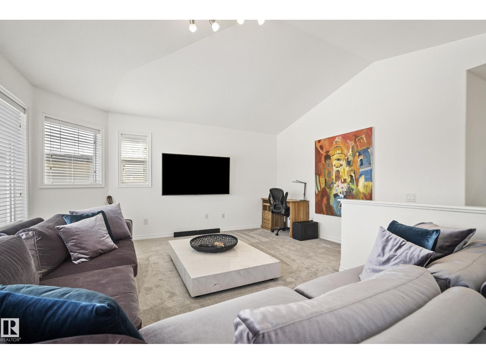 Beautifully renovated, fully finished 2 storey home on a large corner lot in the heart of South Terwillegar! Welcomed by an impressive grand foyer w/ 17' ceiling flowing into the bright & modern main floor flooded w/ natural light from the SW facing yard. The updated kitchen features white quartz countertops, white artisan tile backsplash & premium s/s appliances w/ an induction stove & french door fridge. LVP flooring & modern light fixtures throughout the main floor giving a clean, contemporary feel. Warm & inviting living room w/ gas fireplace & stunning marble tile surround. A convenient 2 pc powder room & laundry complete the main level. Upstairs offers a spacious bonus room w/ vaulted ceilings, the primary retreat w/ 4 pc ensuite & w/i closet, plus 2 additional bedrooms & a 4 pc bath. The fully finished basement features a large rec room w/ recessed lighting, plush carpet & barn door leading to the 4th bedroom. Enjoy A/C & the sunny SW yard w/ deck, exposed aggregate patio, u/g sprinklers & Shed (id:6769)